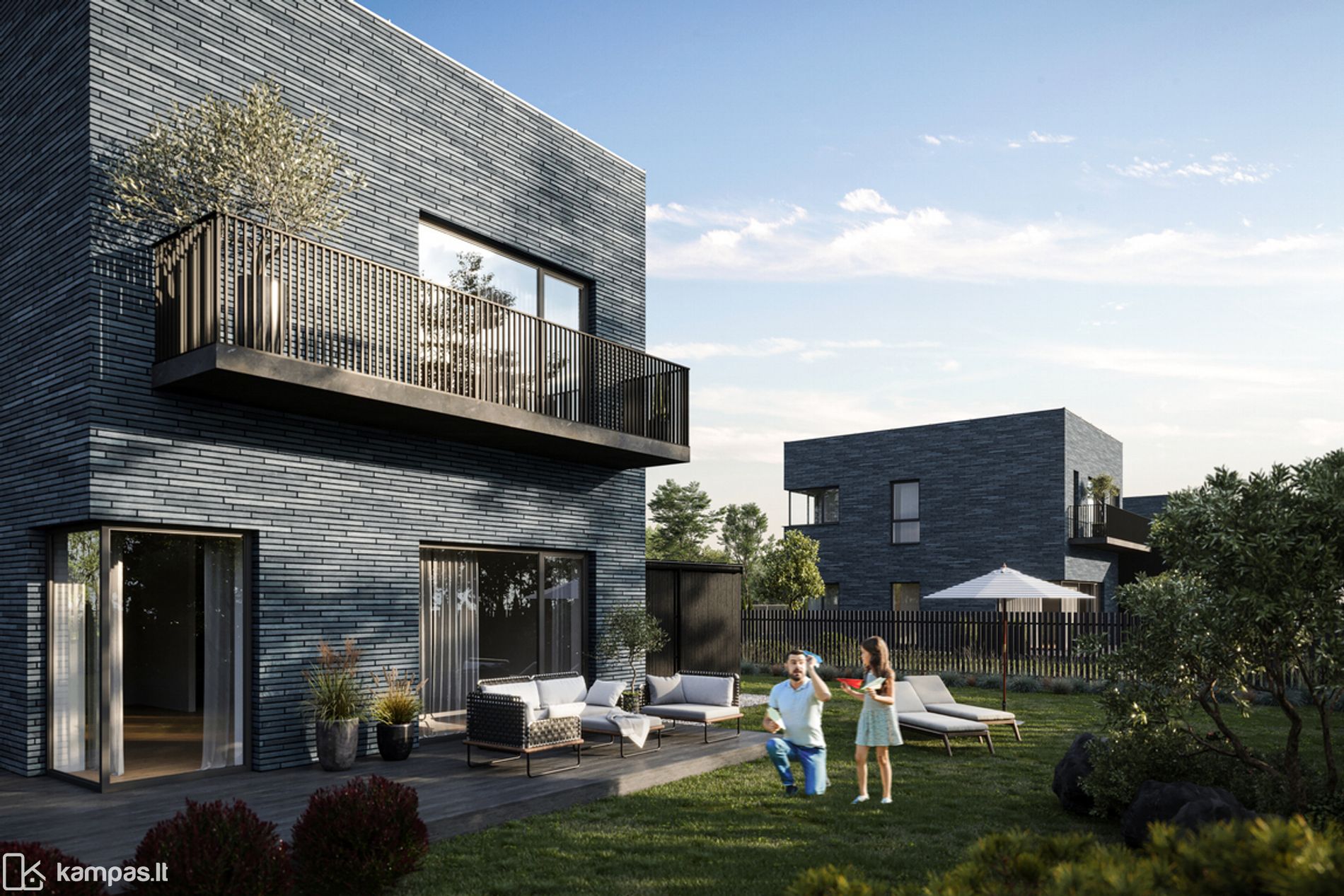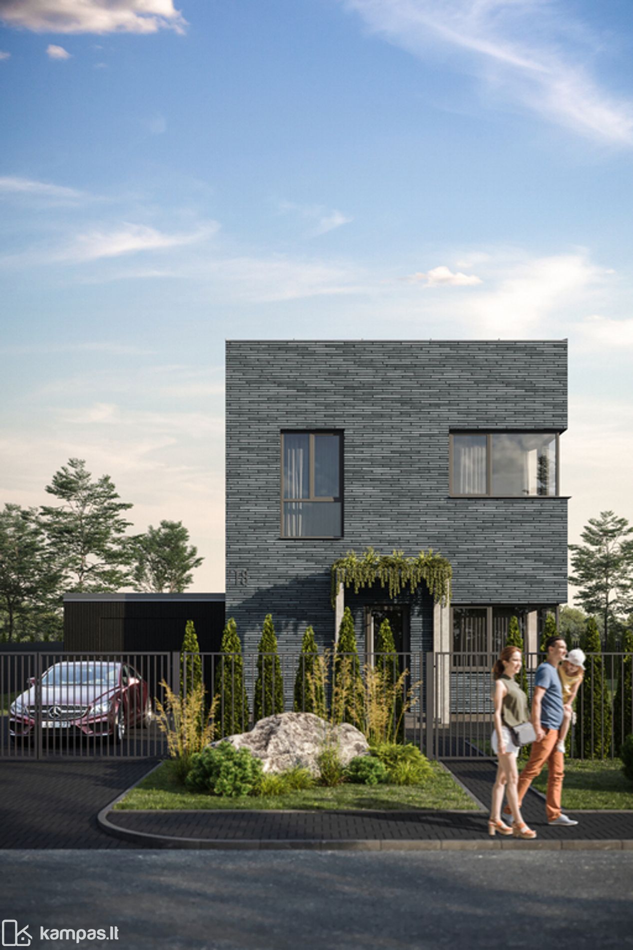 išvedžiota elektros instaliacija, signalizacija, išvestas laidas laistymo sistemai ir vartų kamerai/domofonui. Šio A varianto kaina - 254.000 eur.