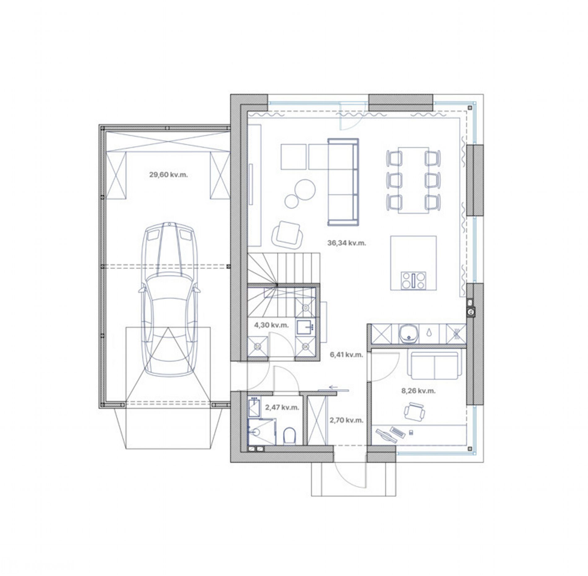 * 29,60 kv.m. garažas;