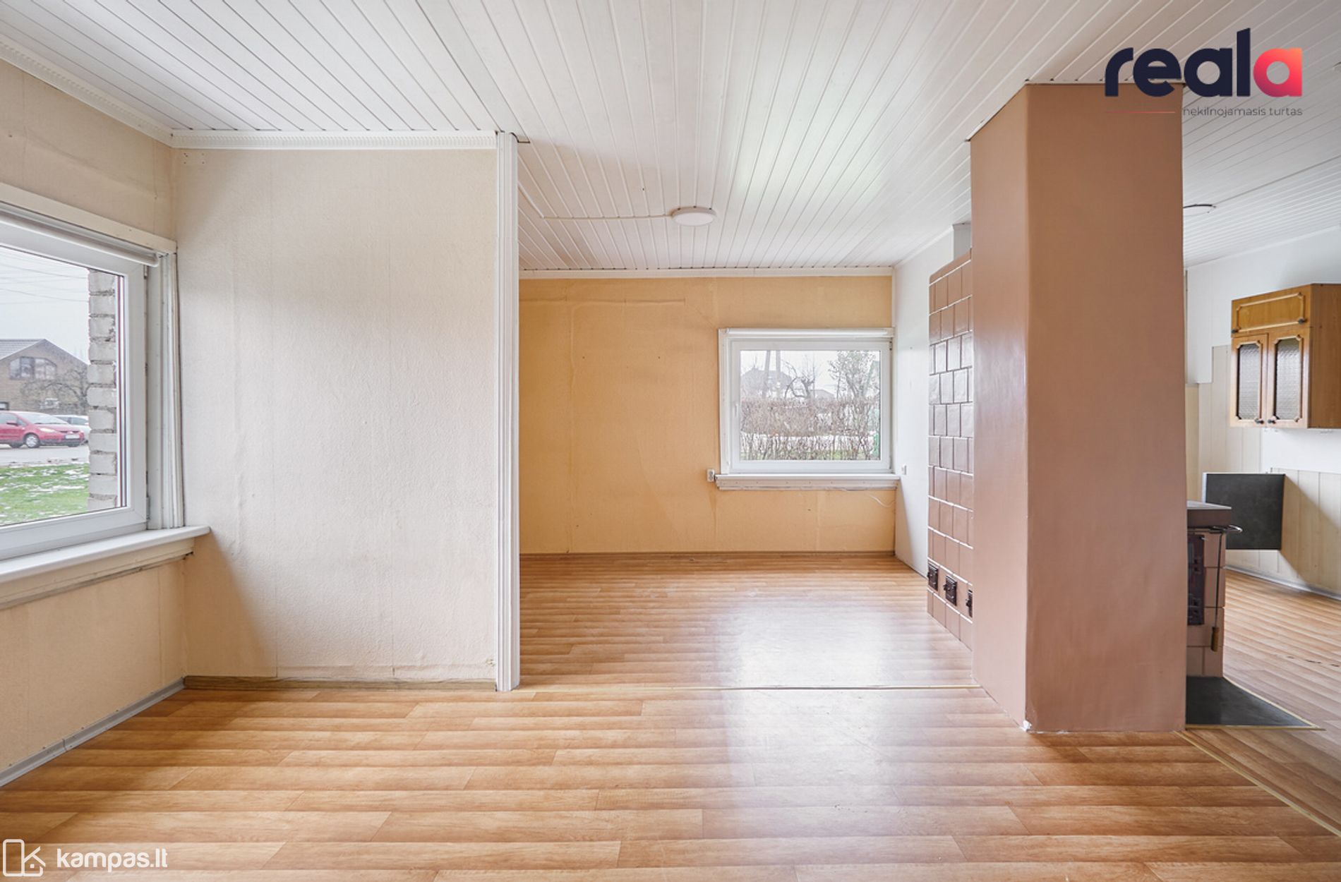 Parduodama dalis namo su 5,04 a sklypu Vaišvydavoje Dabintos g. Namas yra oficialiai padalintas į butus, parduodamas butas turi savo unikalų numerį. Langai – stiklo paketai plastikiniuose rėmuose, grindys - laminatas, stogas - šiferis. Šildymas kietu kuru. Karštas vanduo ruošiamas elektriniu boileriu. Vanduo, kanalizacija – miesto. Po koridoriumi yra įrengtas 4,68 m² rūsys.