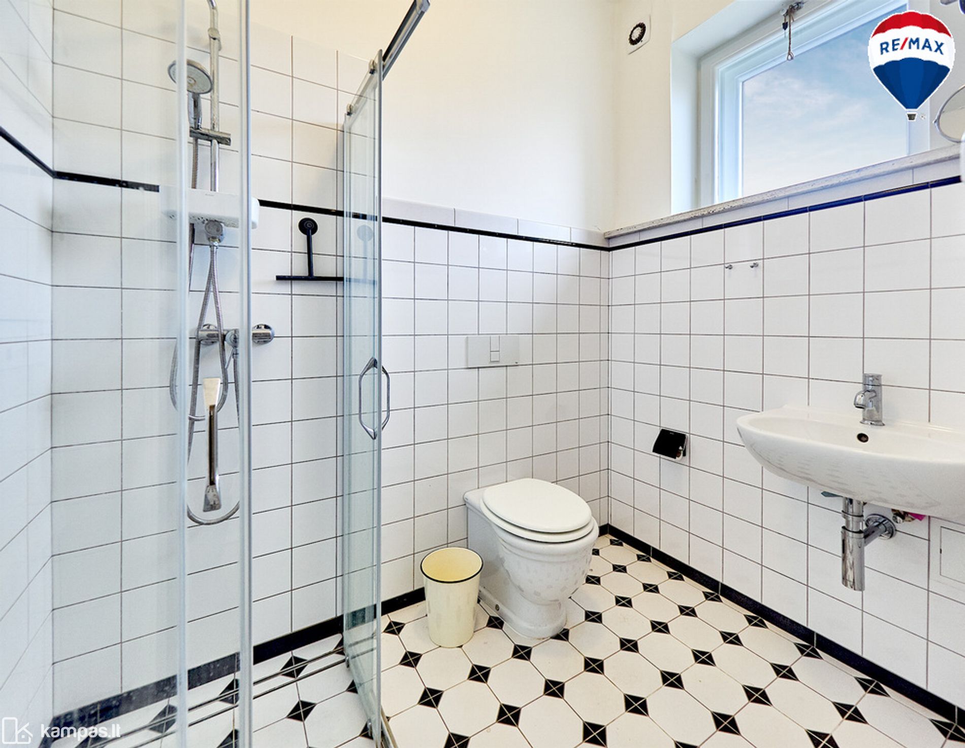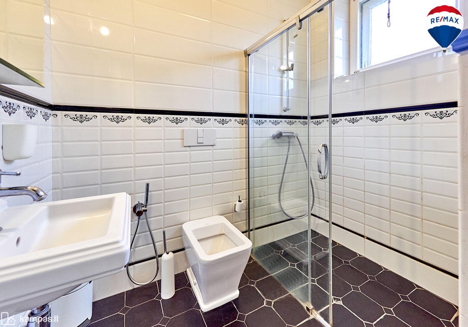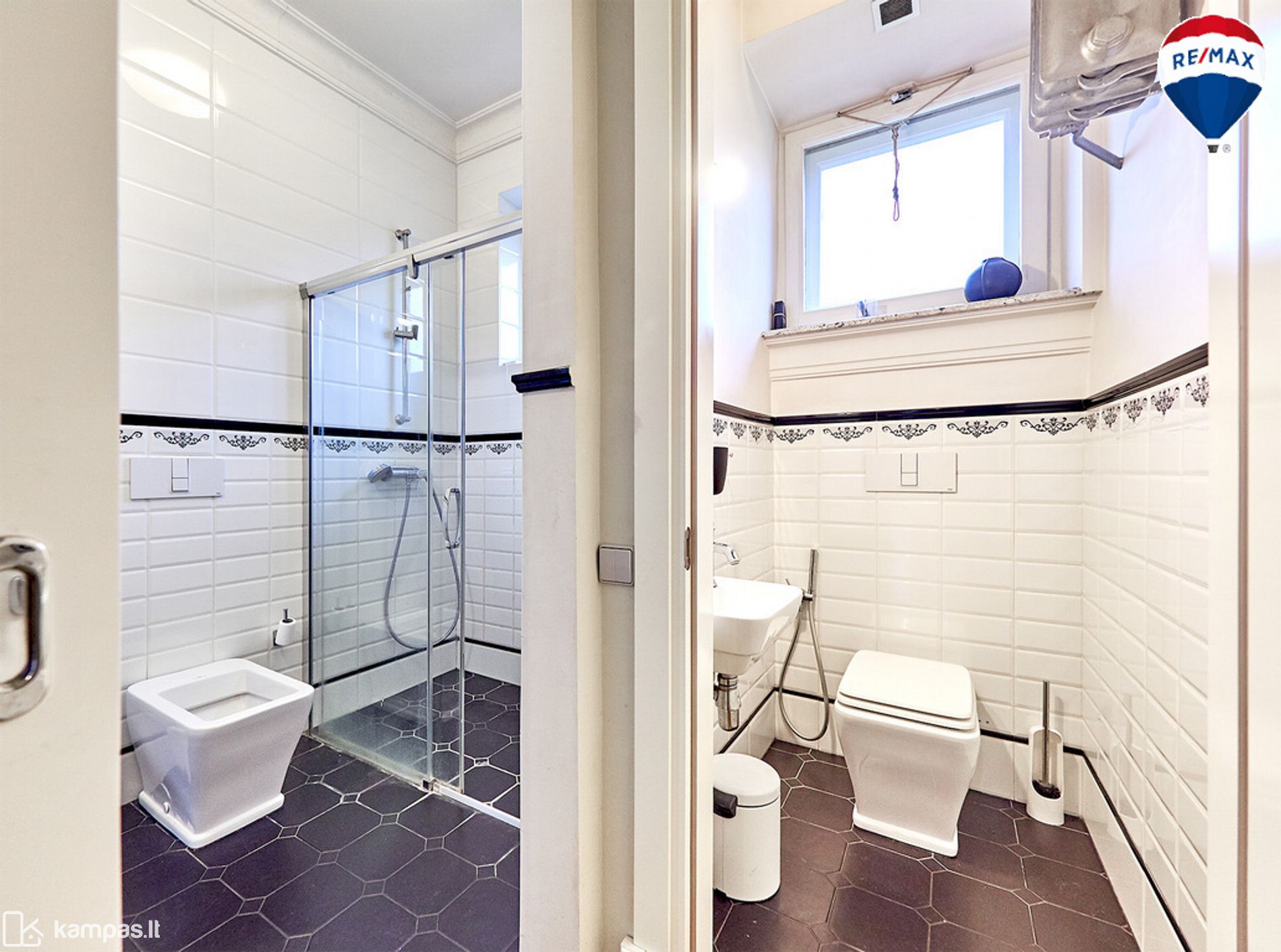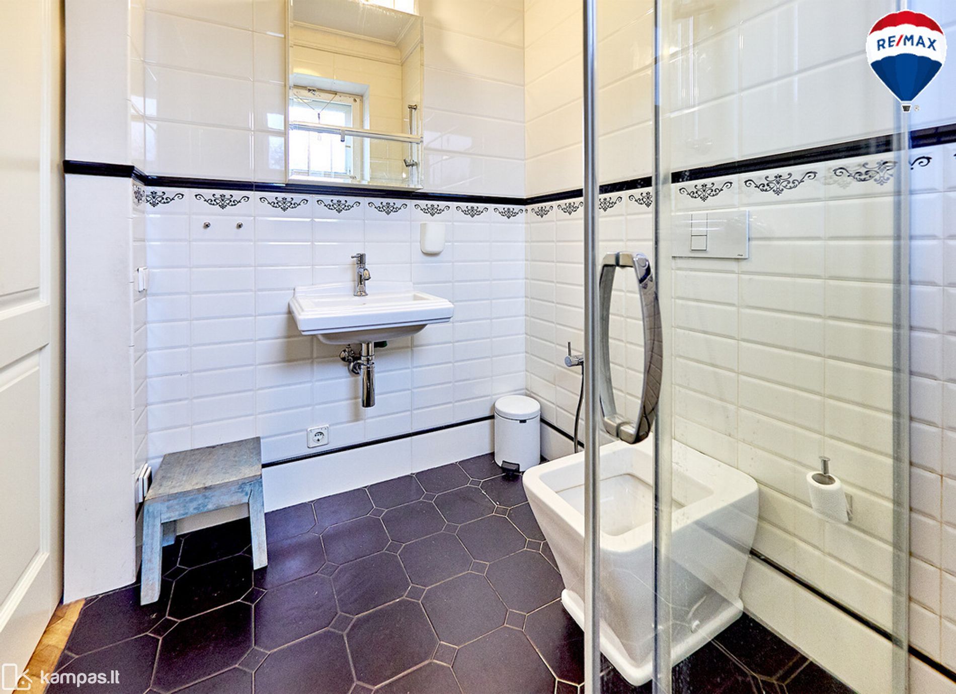 • Tarpukario dvasią atitinkantis sanmazgų interjeras, Villeroy&Boch santechnika, Huppe dušo kabina