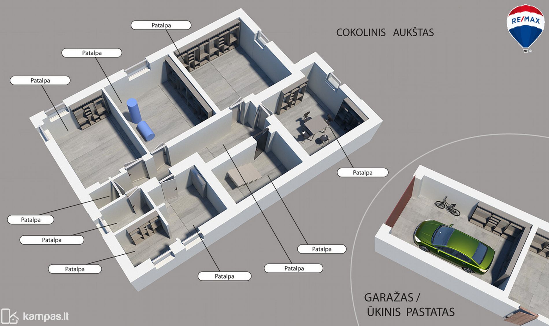 • Po namu – didelė rūsio erdvė, katilinė
