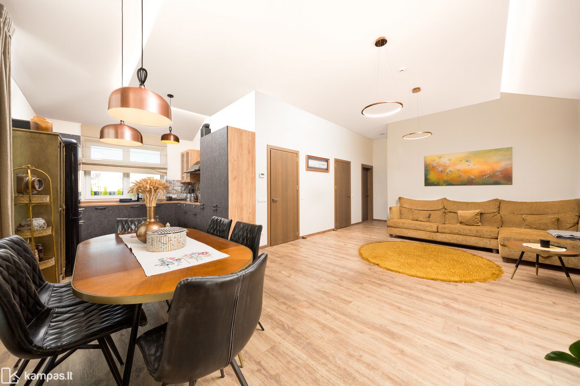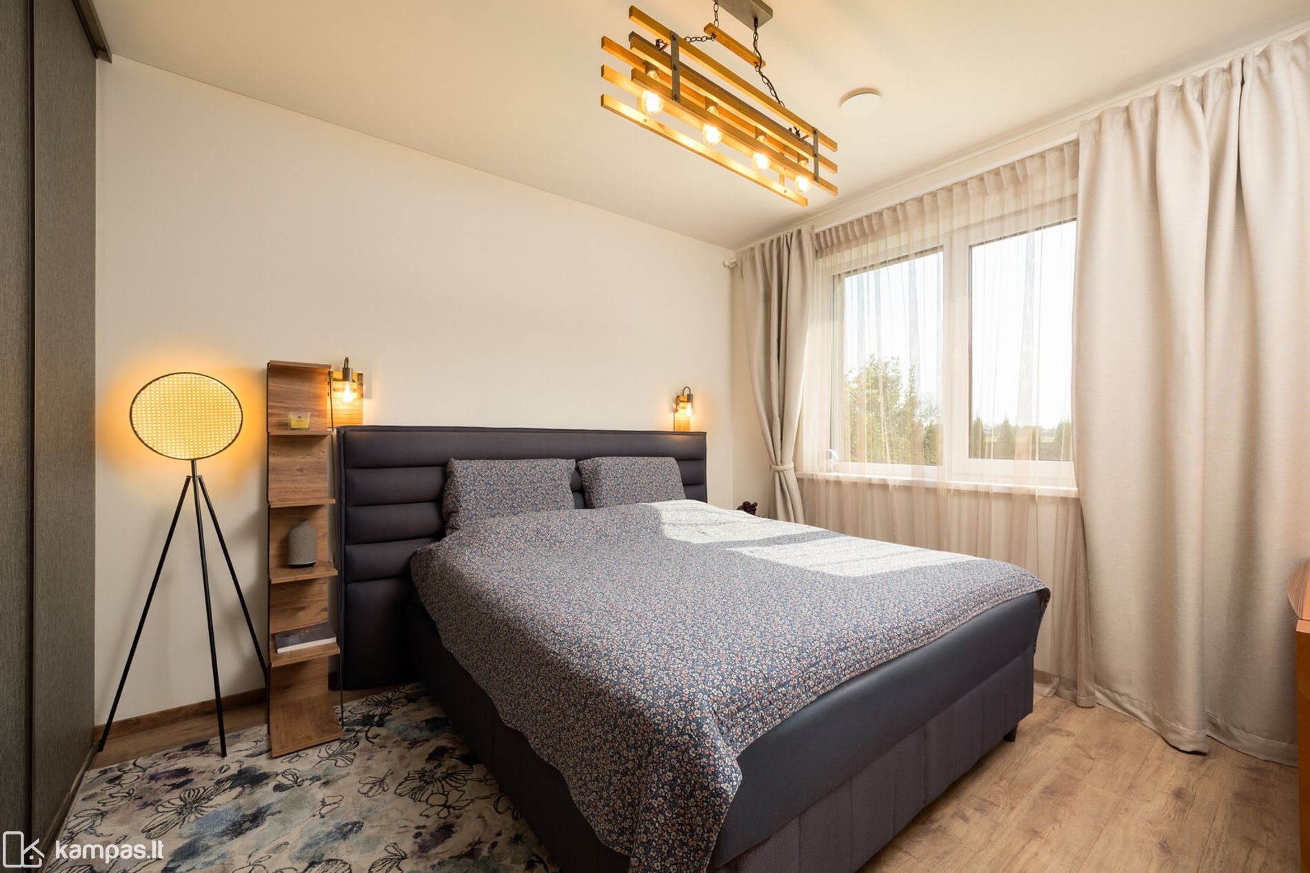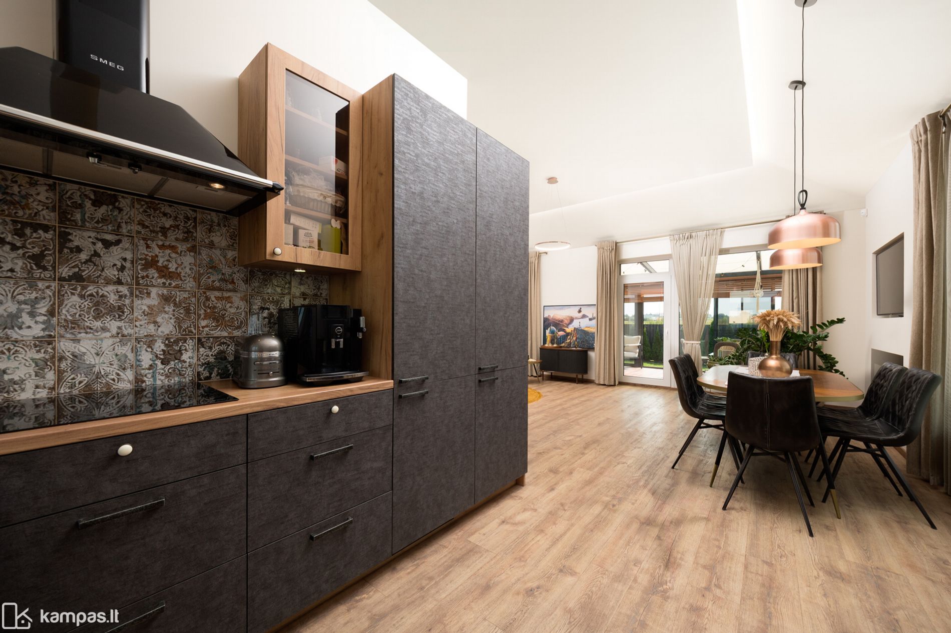 Minimalistinės, estetiškos ir apgalvotos architektūros namas. Čia kiekviena detalė sukurta tiek grožiui, tiek patogumui. Suplanavimas itin racionalus: aukštų lubų svetainė, valgomasis ir šiek tiek atskirta, bet patogi virtuvė – viskas orientuota į kasdienį komfortą. Miegamojo zona išdėstyta atokiau nuo pagrindinės erdvės. Taip pat įrengtas dar vienas darbo kambarys/miegamasis bei didelė ir erdvi vonios patalpa.