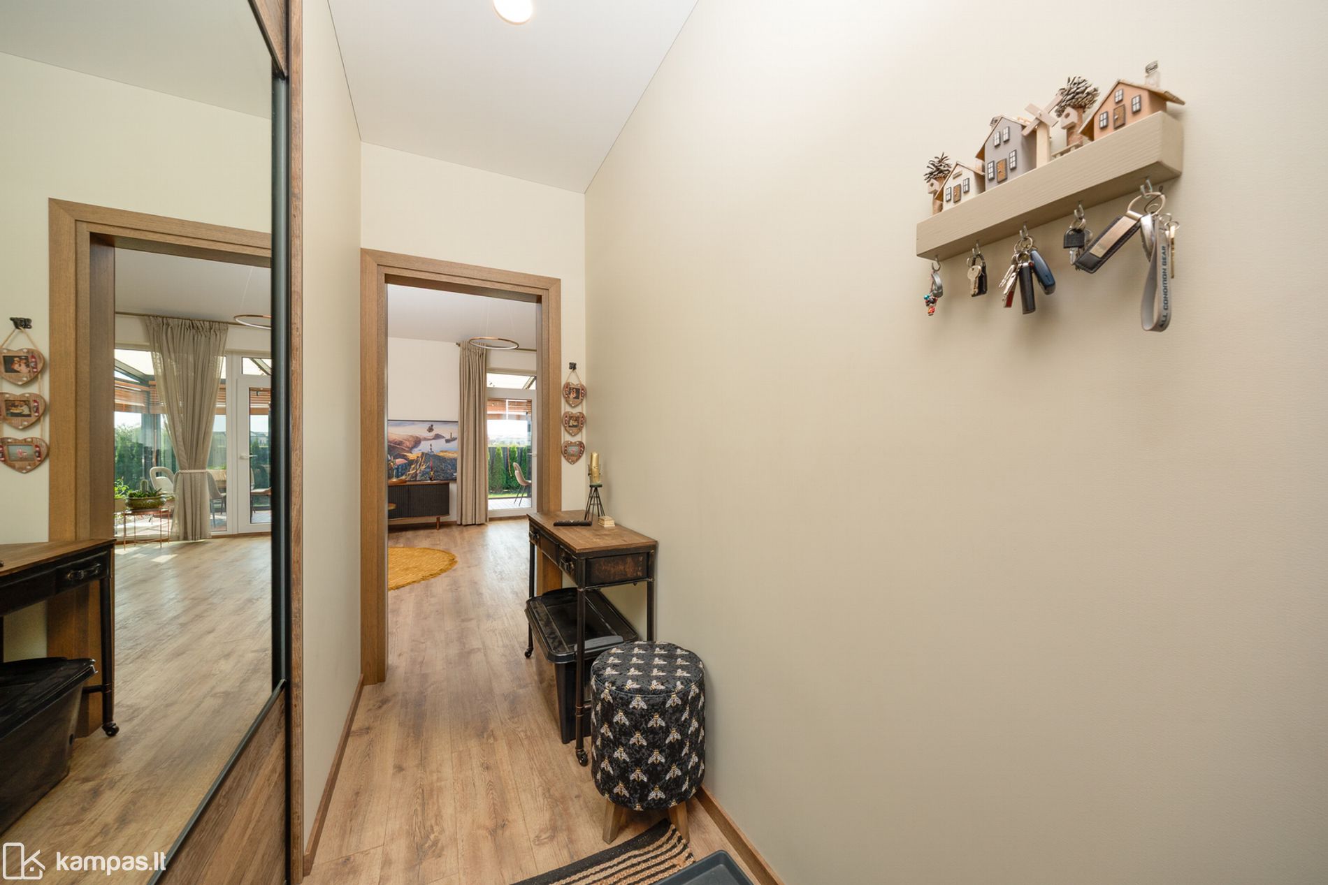 Kokybiška statyba ir kruopščiai parinktos apdailos medžiagos leidžia naujiesiems šeimininkams iš karto įsikelti ir gyventi be rūpesčių. Įrengta rekuperacinė sistema, grindinis šildymas, kondicionierius – visa tai užtikrina komfortišką mikroklimatą visais metų laikais. Svetainėje jaukumą ir šilumą kuria elektrinis židinys.