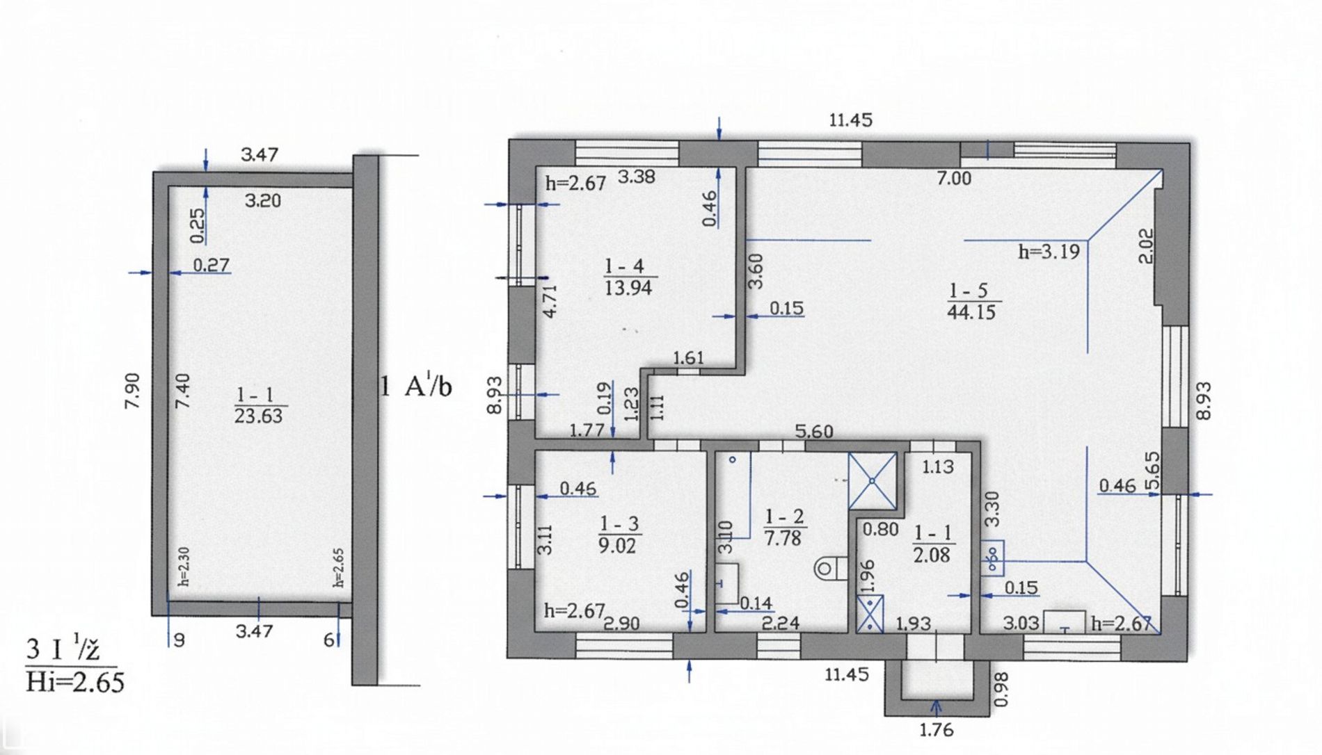 -Svetainė su valgomuoju ir virtuve 44,15 kv.m;