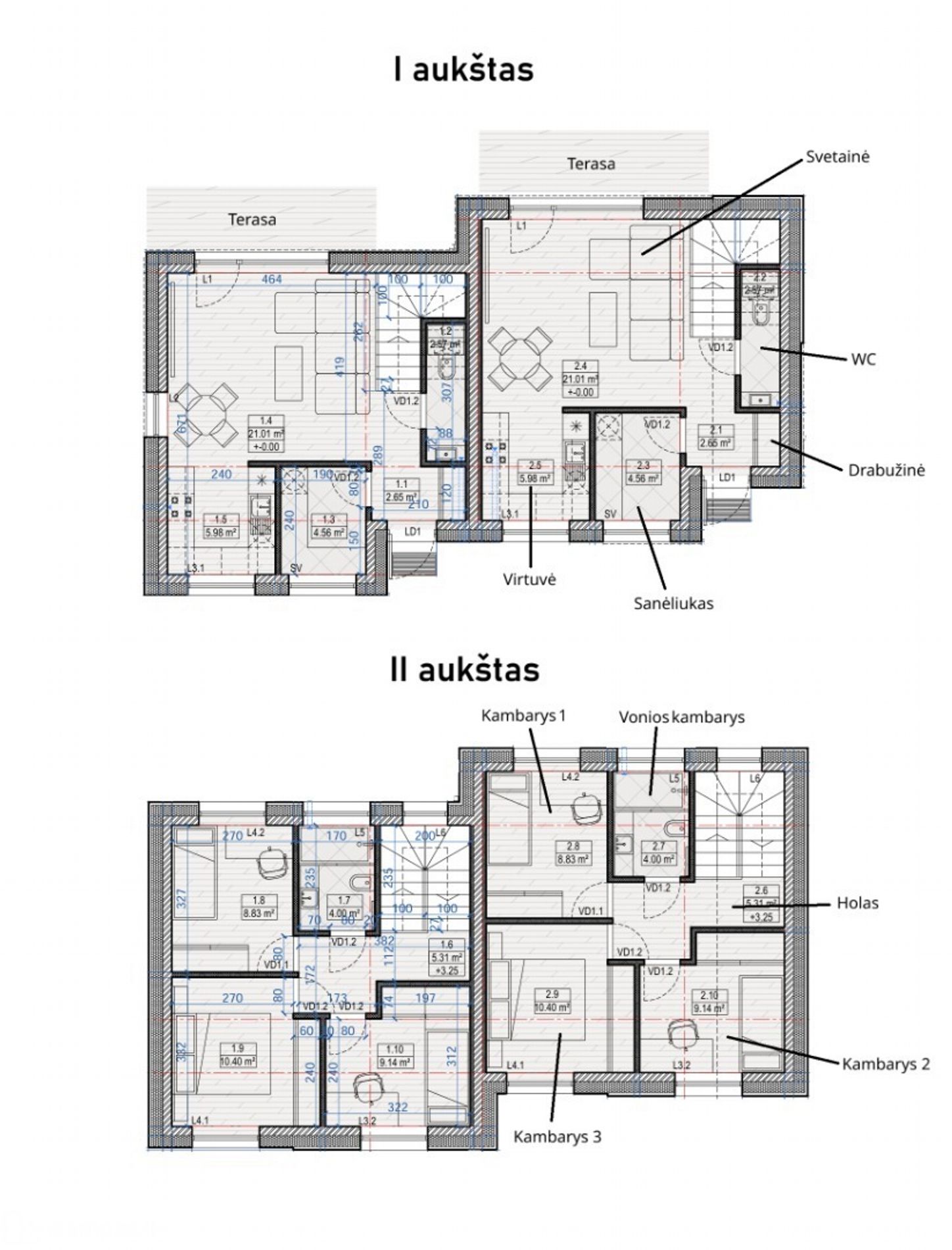 - Patogūs išplanavimai, atitinkantys šiuolaikinius poreikius, vitrininiai langai, užtikrinantys jaukumą ir natūralią šviesą namuose, grindinis šildymas su sistema oras-vanduo.