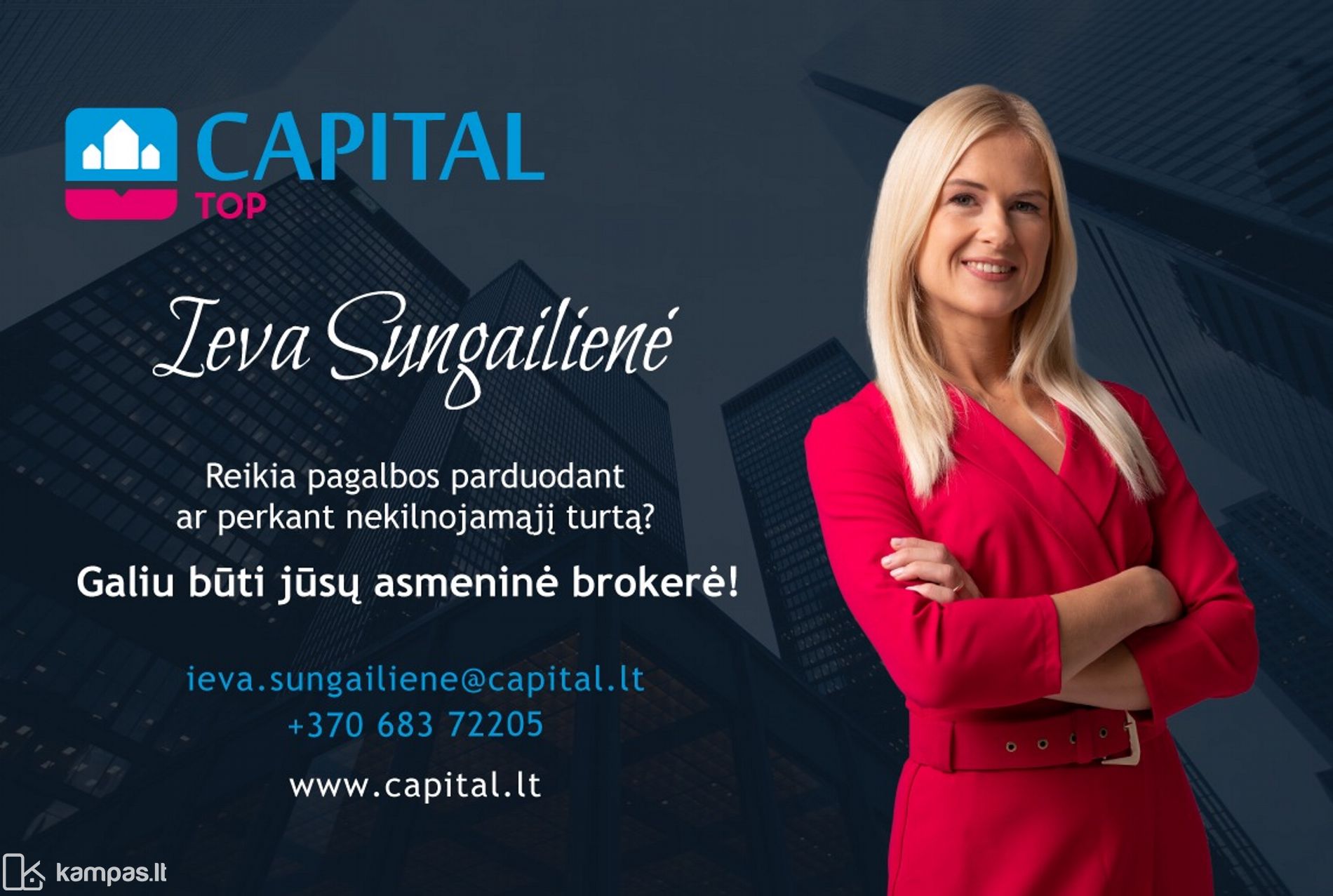 DĖL IŠSAMESNĖS INFORMACIJOS AR APŽIŪROS KREIPKITĖS Į BROKERĘ IEVA SUNGAILIENE +37068372205 arba [email protected] Visus naujausius CAPITAL nekilnojamojo turto skelbimus rasite mūsų internetiniame puslapyje www.capital.lt. Kviečiame apsilankyti!