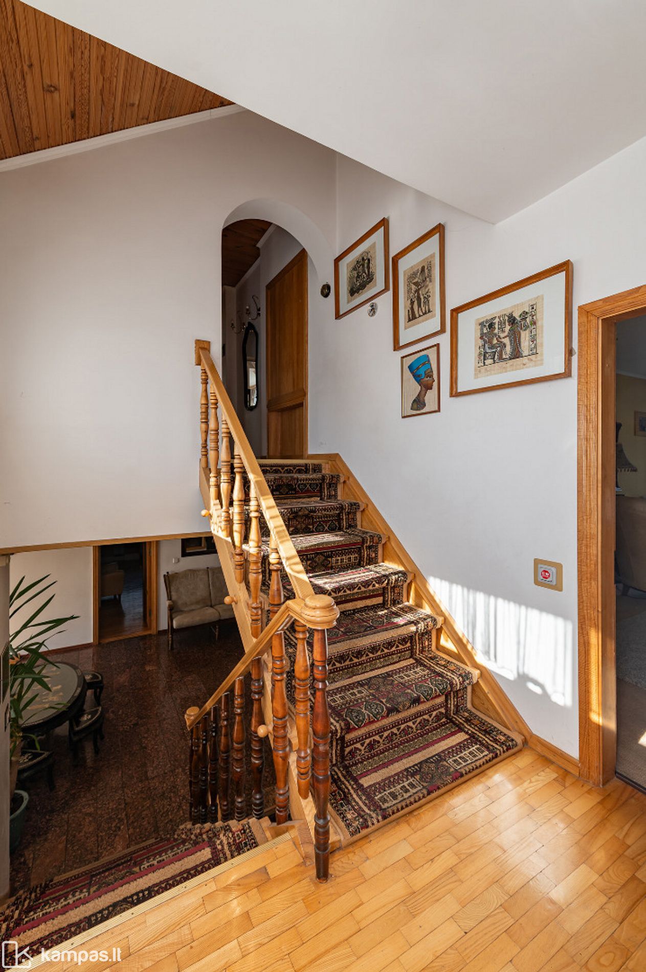 NAME YRA TRYS ERDVŪS MIEGAMIEJI KAMBARIAI, DARBO KAMBARYS - BIBLIOTEKA, DRABUŽINĖ, ERDVUS PRIEŠKAMBARIS SU ORANDŽERIJA IR PUIKIU VAIZDU Į GAMTĄ, VIRTUVĖS ZONA SU VALGOMUOJU IR PAPILDOMU SANDĖLIUKU. KELI SAN.MZGAI.,PIRTIES SU PRIESPIRDČIU ZONA SU IŠĖJIMU Į VIDINĮ KIEMĄ. TAIP PAT YRA LAUKO TERASA, BALKONAS IR 50 KV.M ĮSTIKLINTAS ŠILTNAMIS. PUSŪSYJE YRA SKALBYKLA, SPORTO SALĖ, DVI KŪRYBINĖS DIRBTUVĖS, KIETO KURO KATILINĖ.