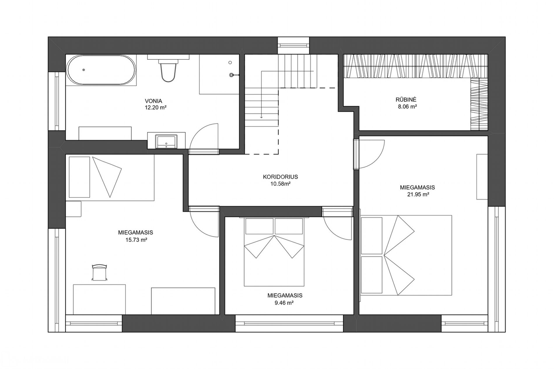 • Kambarių skaičius: 4 (3 iš jų miegamieji);