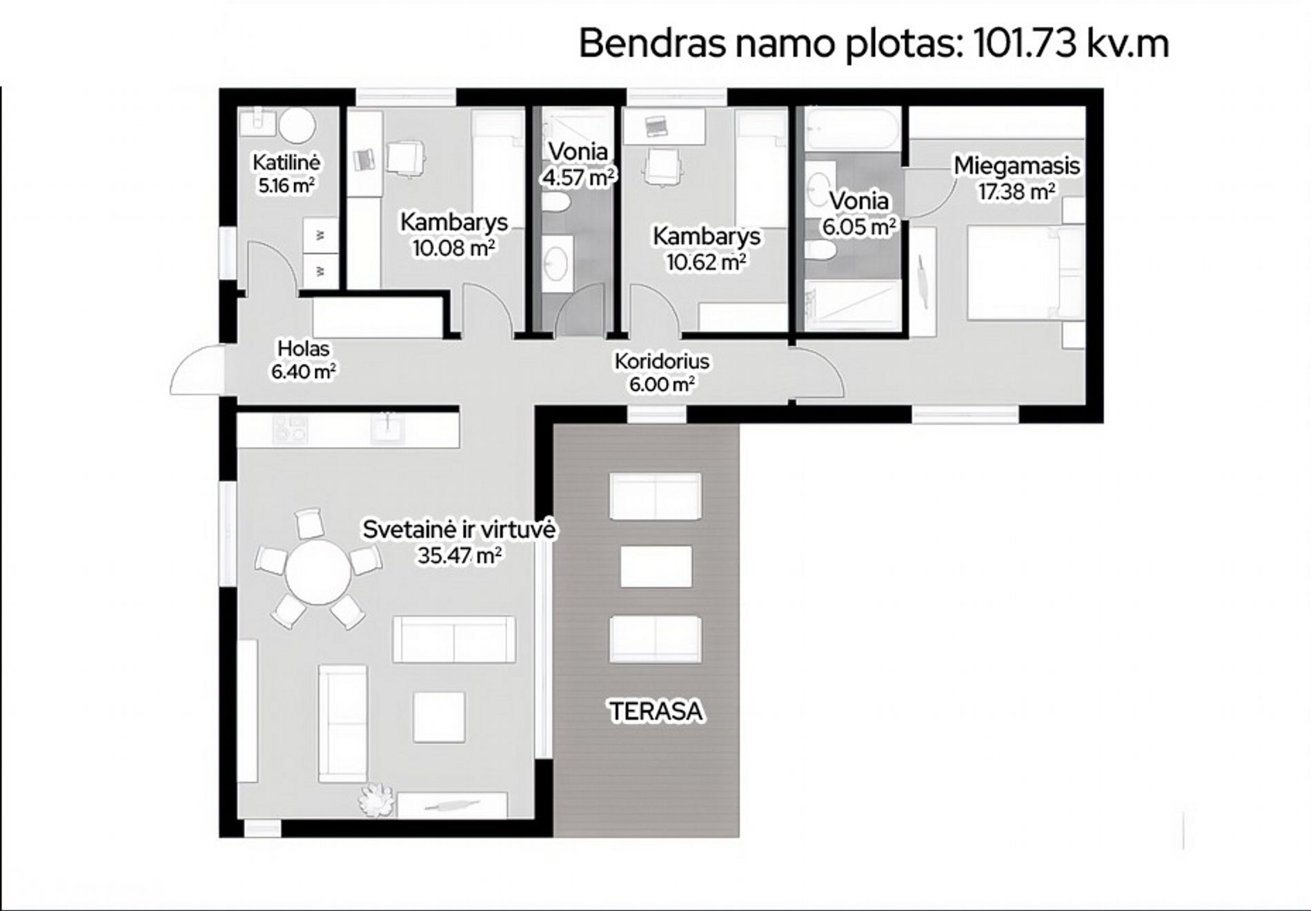 - Bendras plotas: 101,73 m2;
