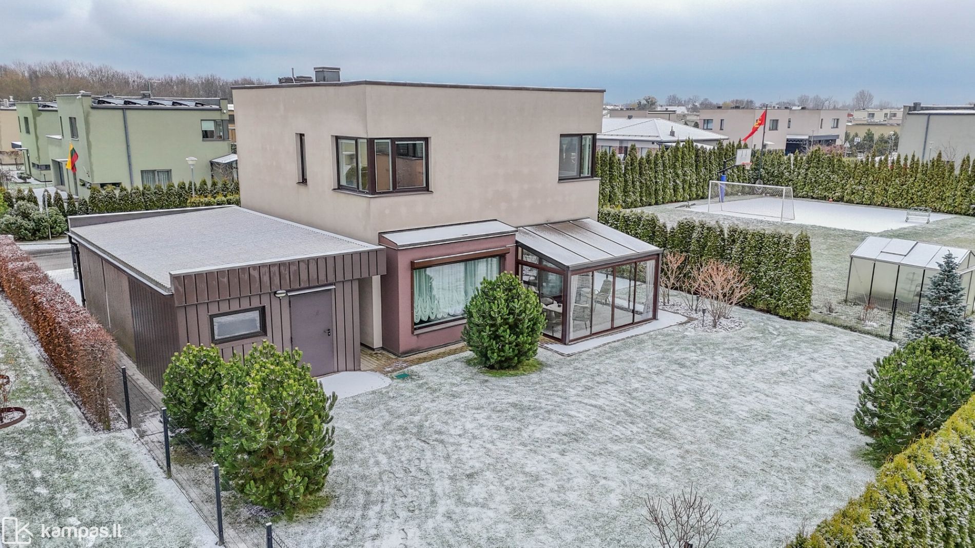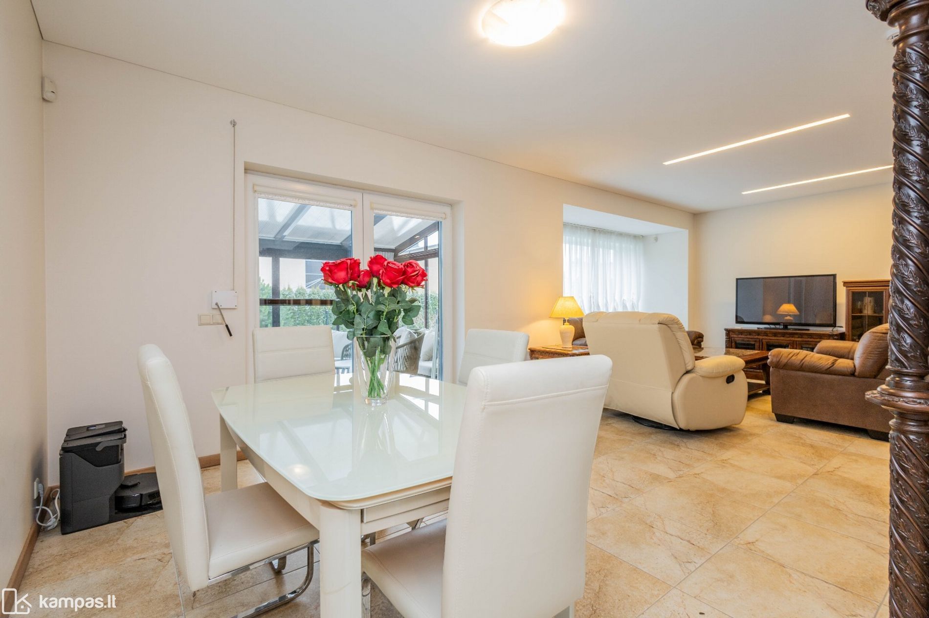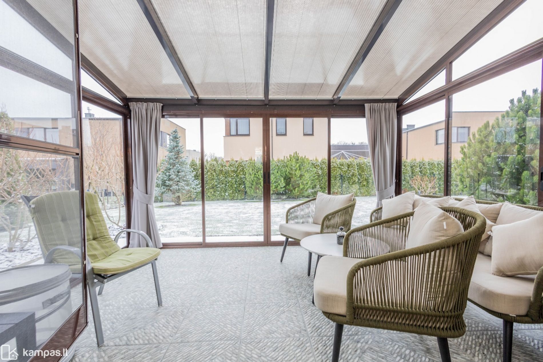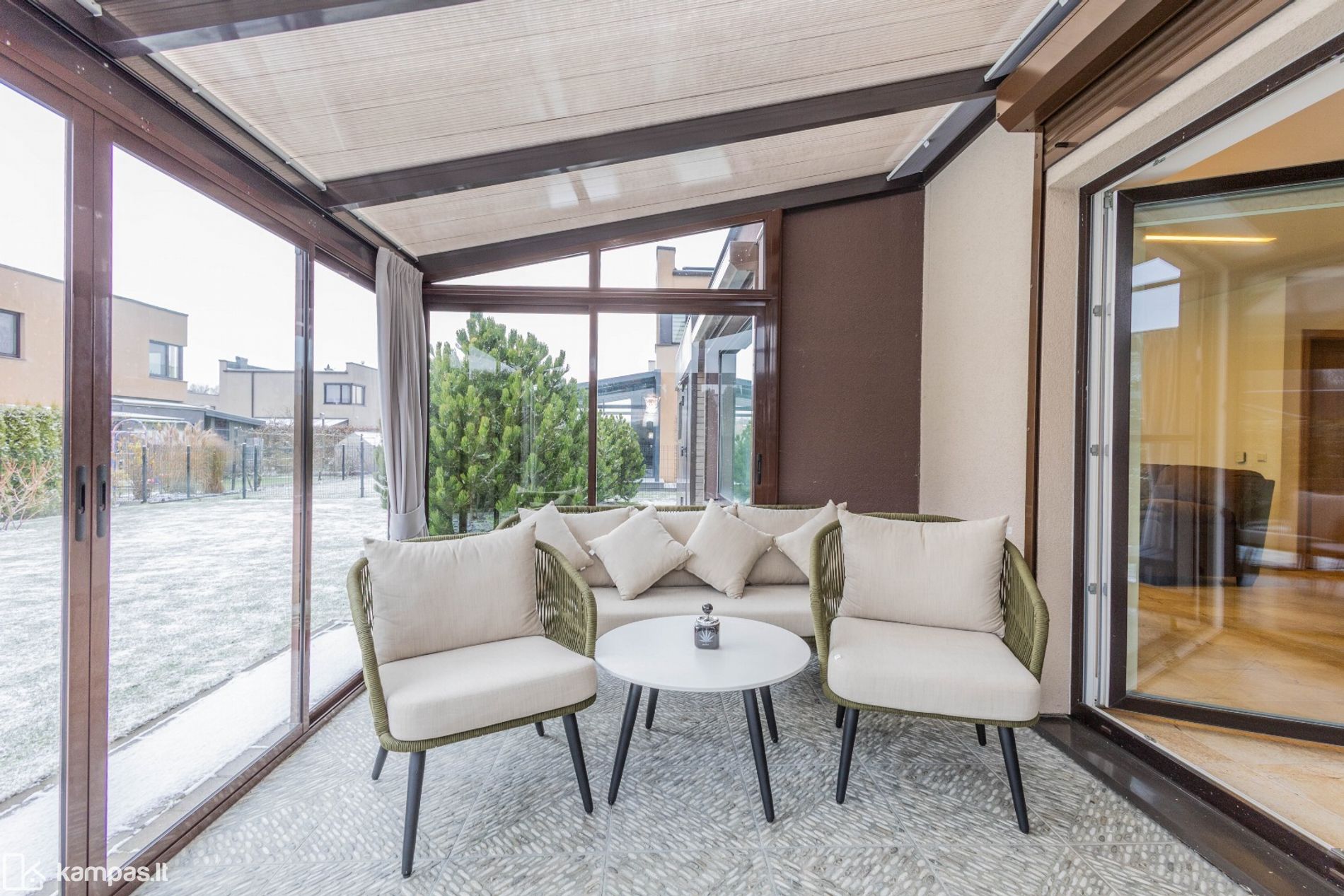 - Yra erdvi įstiklinta lauko terasa;