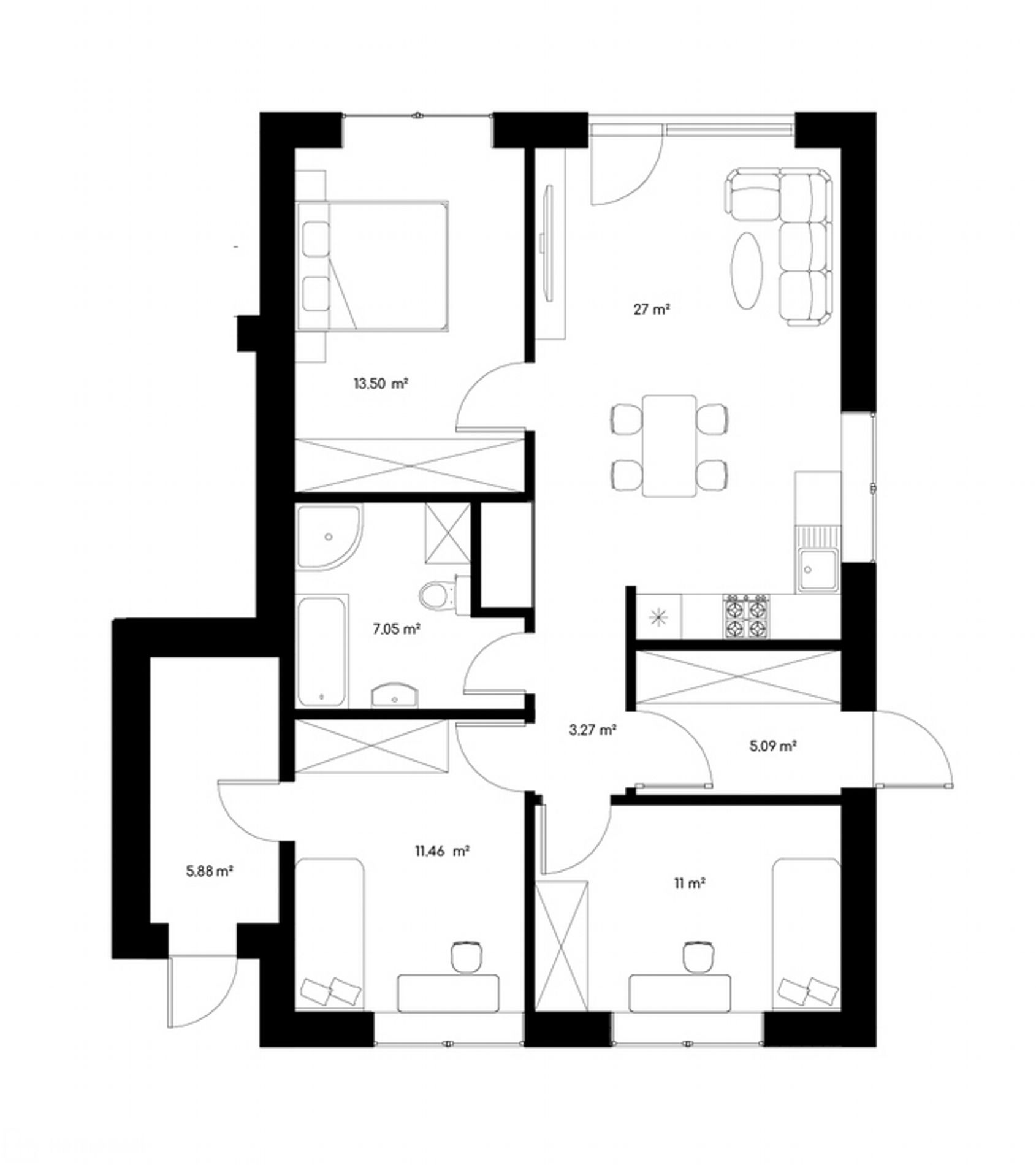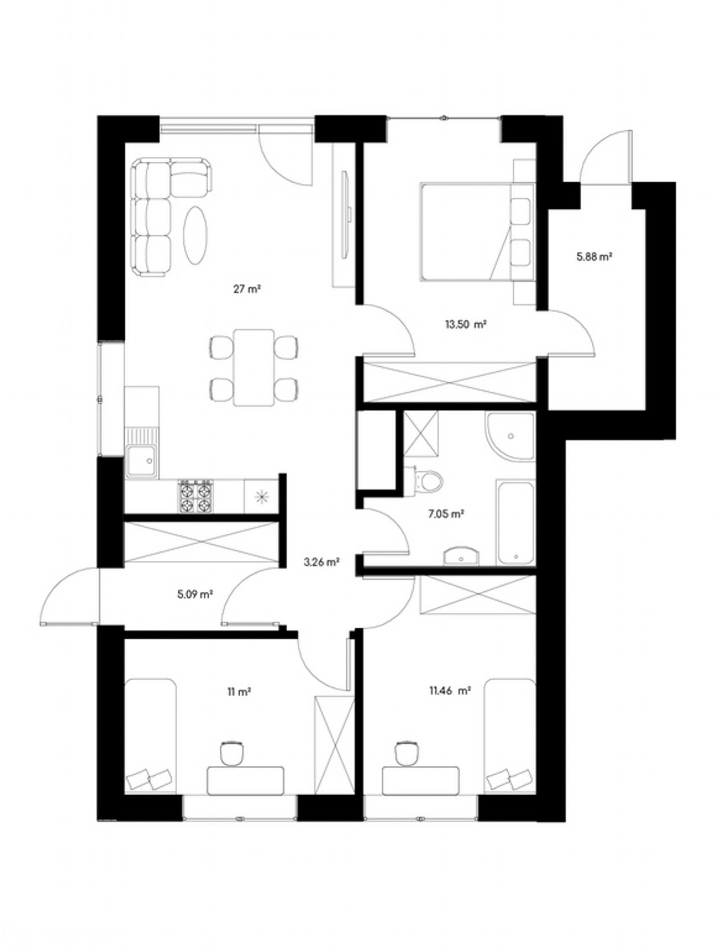 Šie kotedžai išskirtiniai tuo, kad blokuoti ne per kambarius, o per šiltus sandėliukus, tad kaimyniniai garsai nedrumsčia Jūsų ramybės. Įėjimai suplanuoti iš skirtingų fasado pusių, todėl galėsite mėgautis didesniu privatumu.