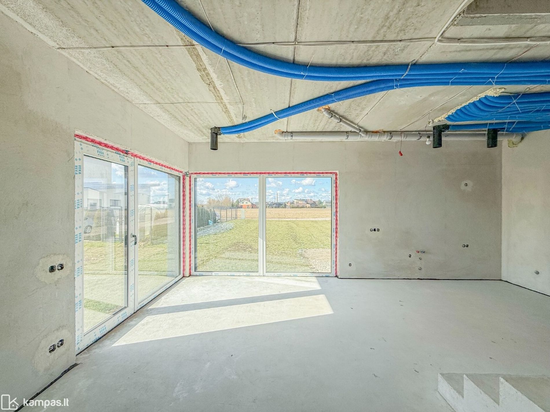• Kieme po pagrindais išvedžioti ir iškišti kanalai, reikalingai kiemo elektros instaliacijai.