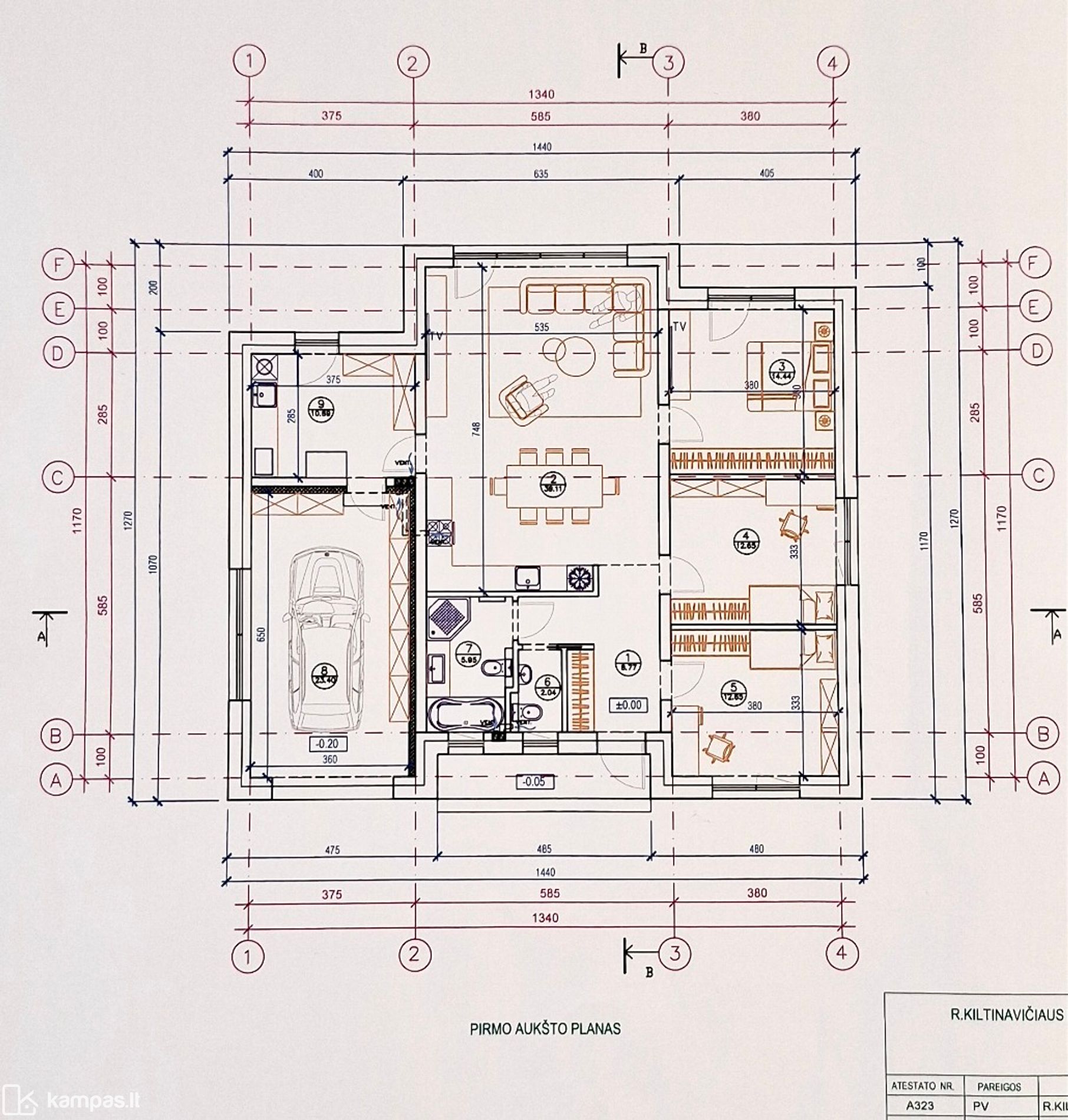 - Pagrindinis miegamasis - 14,44 kv. m;