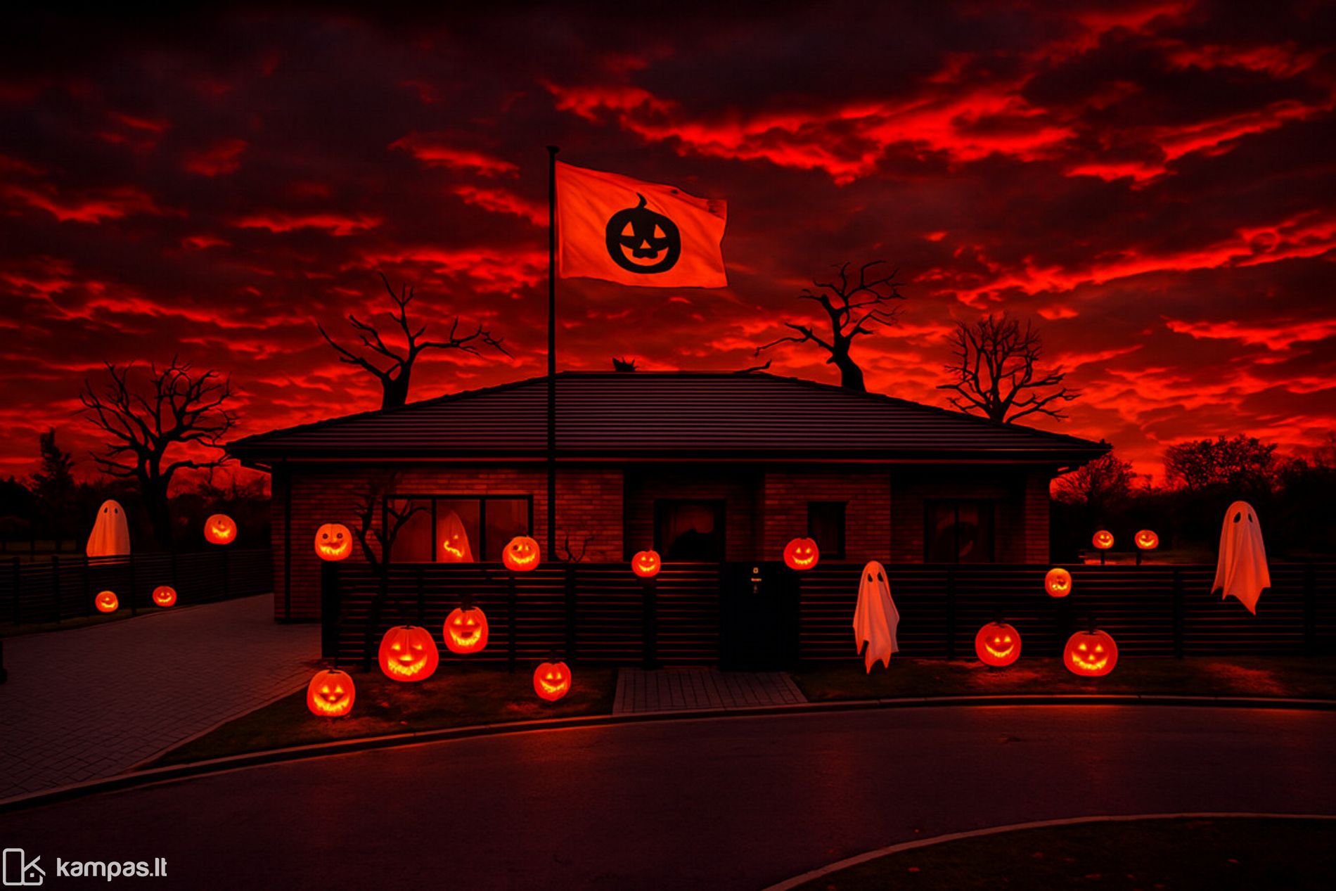 Pilnai sutvarkyta aplinka – trinkelėmis grįsti takai, apšvietimas, veja su „Hunter“ laistymo sistema ir vejos robotu