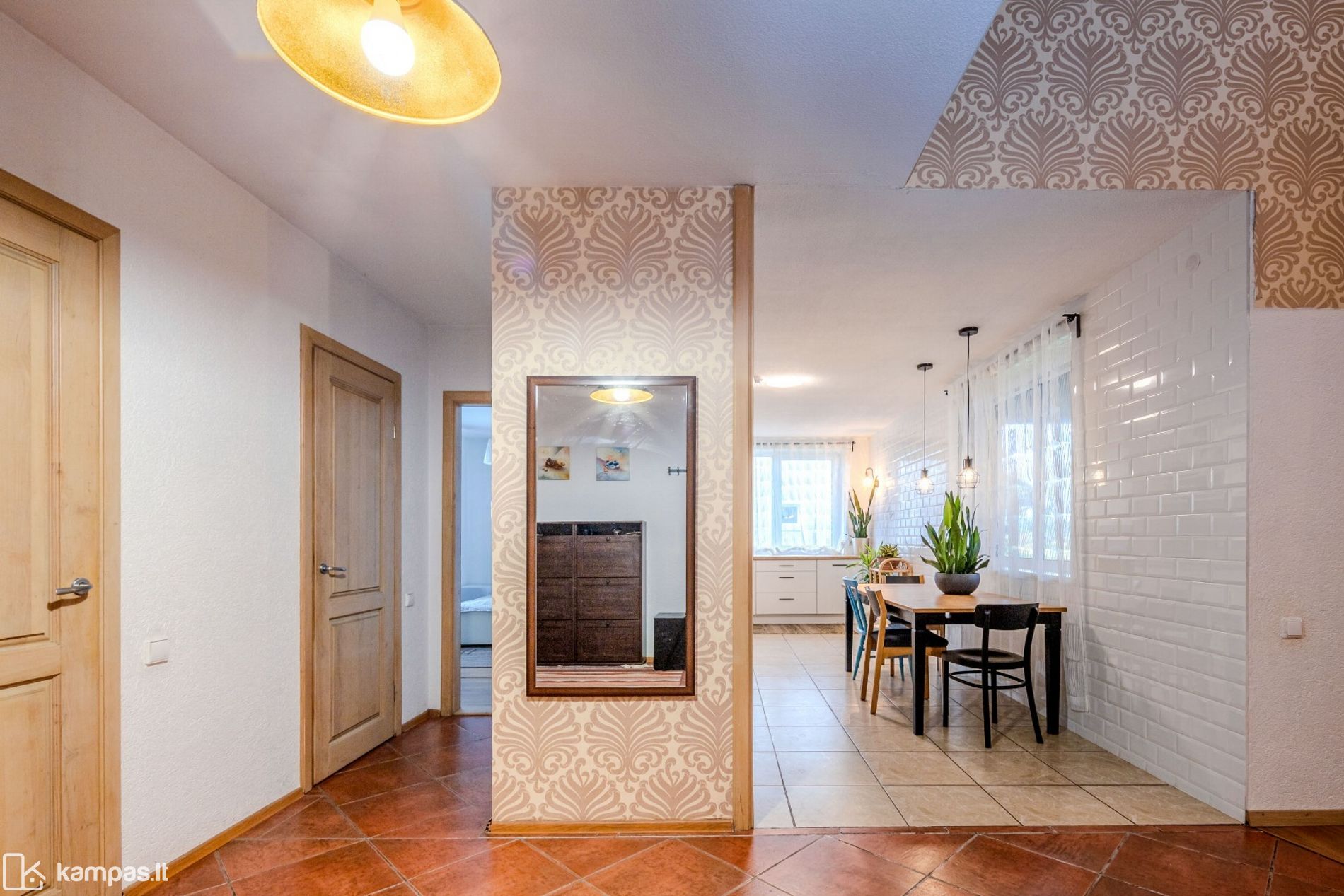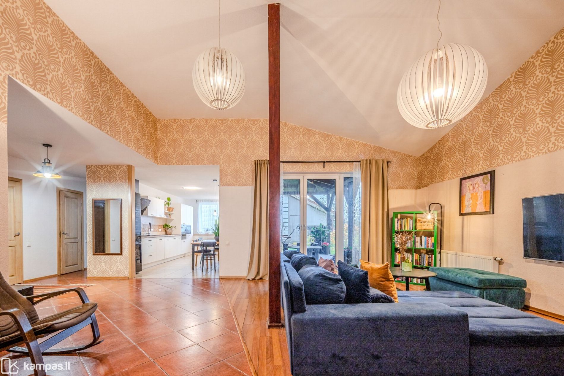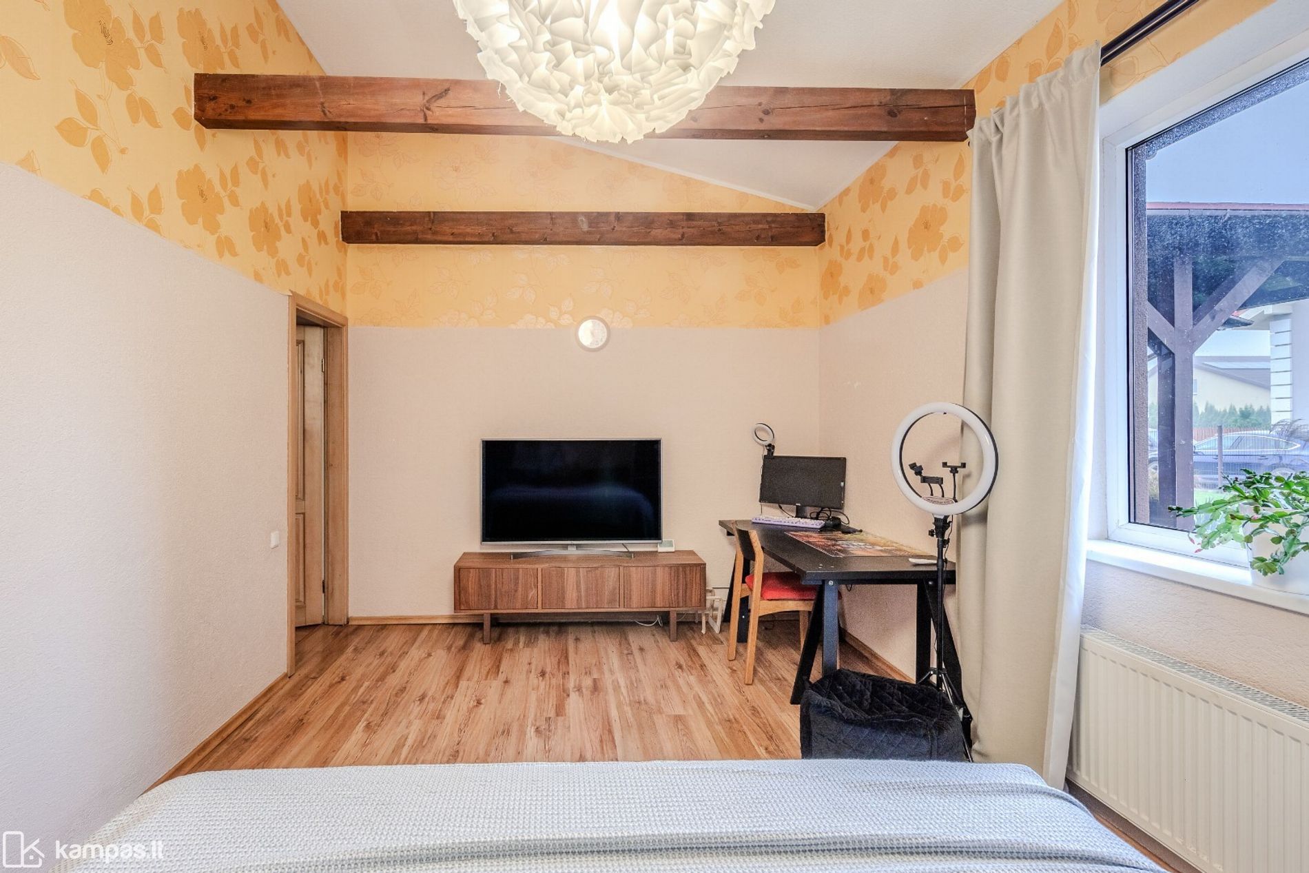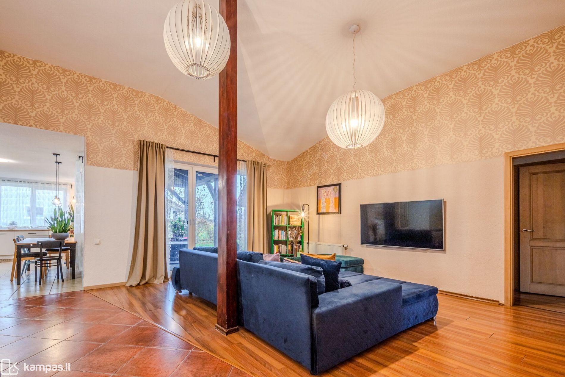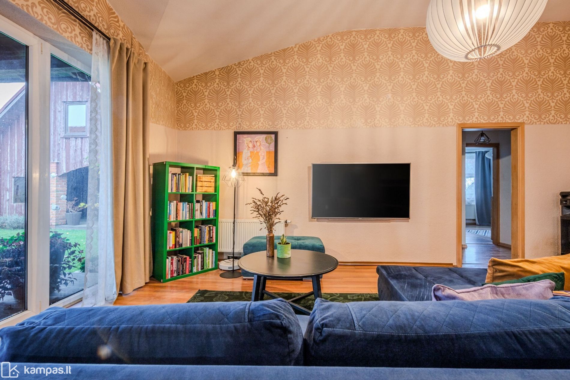 Parduodamas namas kompaktiškai suplanuotos. Erdvi svetainė su židiniu jaukiems vakarams leisti bei išėjimu į vakarinėje pusėje esančią terasą, beveik 18 kv/m atnaujinta virtuvė. Du san. mazgai, drabužinė ir trys atskiri miegamieji kambariai. Viskas, ko reikia komfortiškam gyvenimui visai šalia miesto centro.