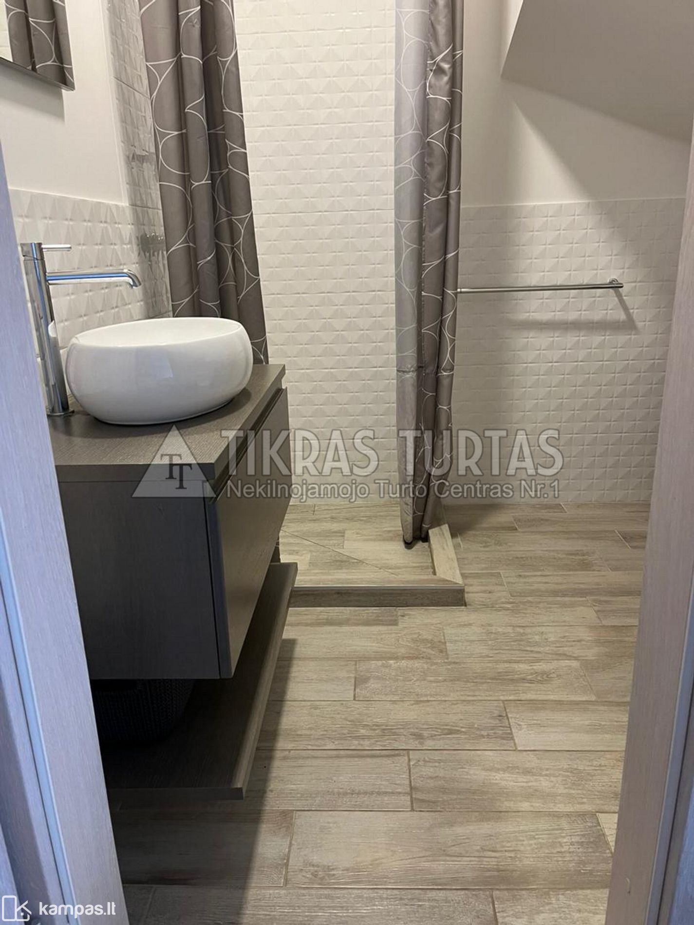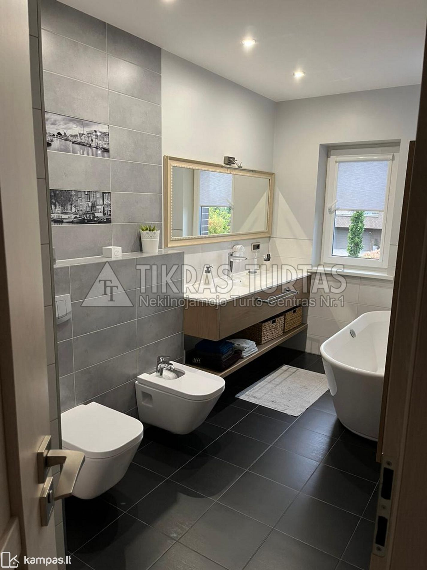 Kotedže yra 2 san. mazgai, viename - akmens masės vonia, kitame san.mazge yra dušas.