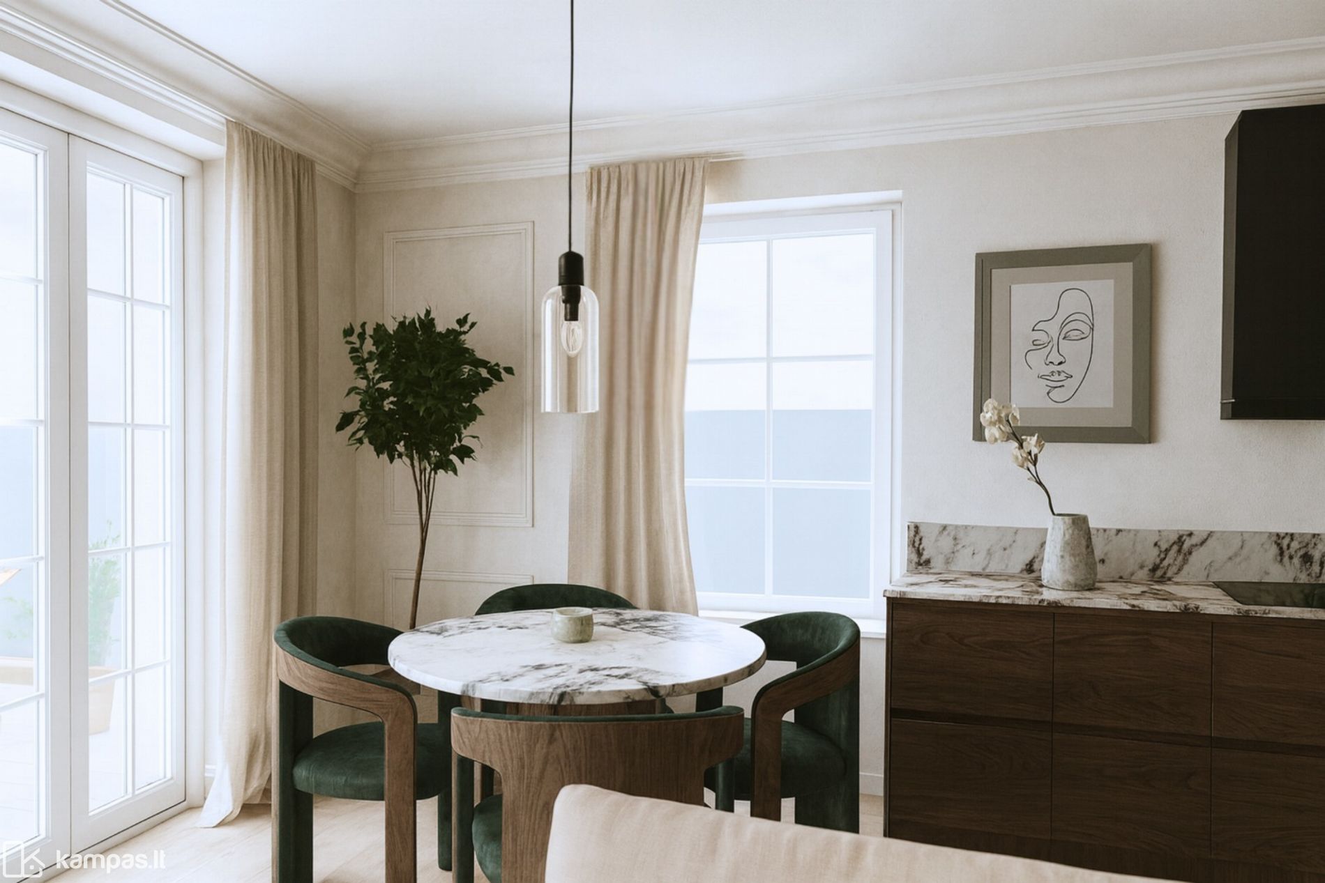 - Virtuvė/valgomasis/svetainė ~ 40.96 kv.m.;