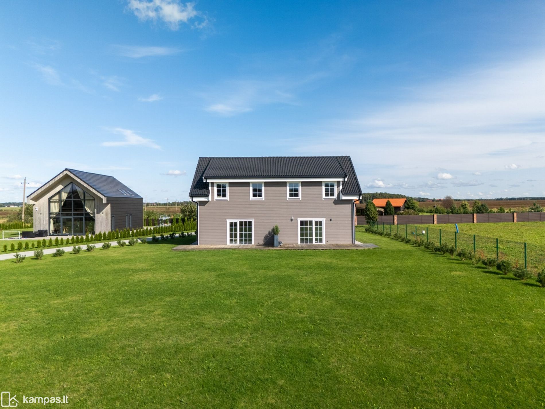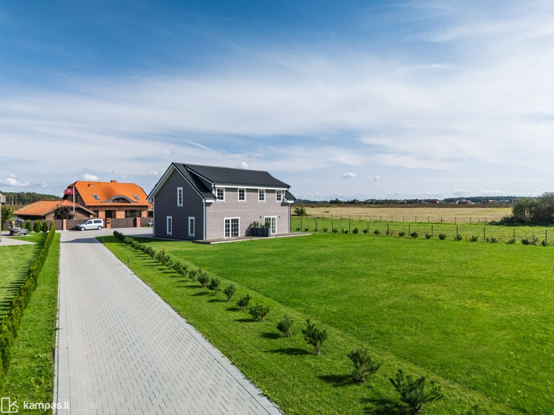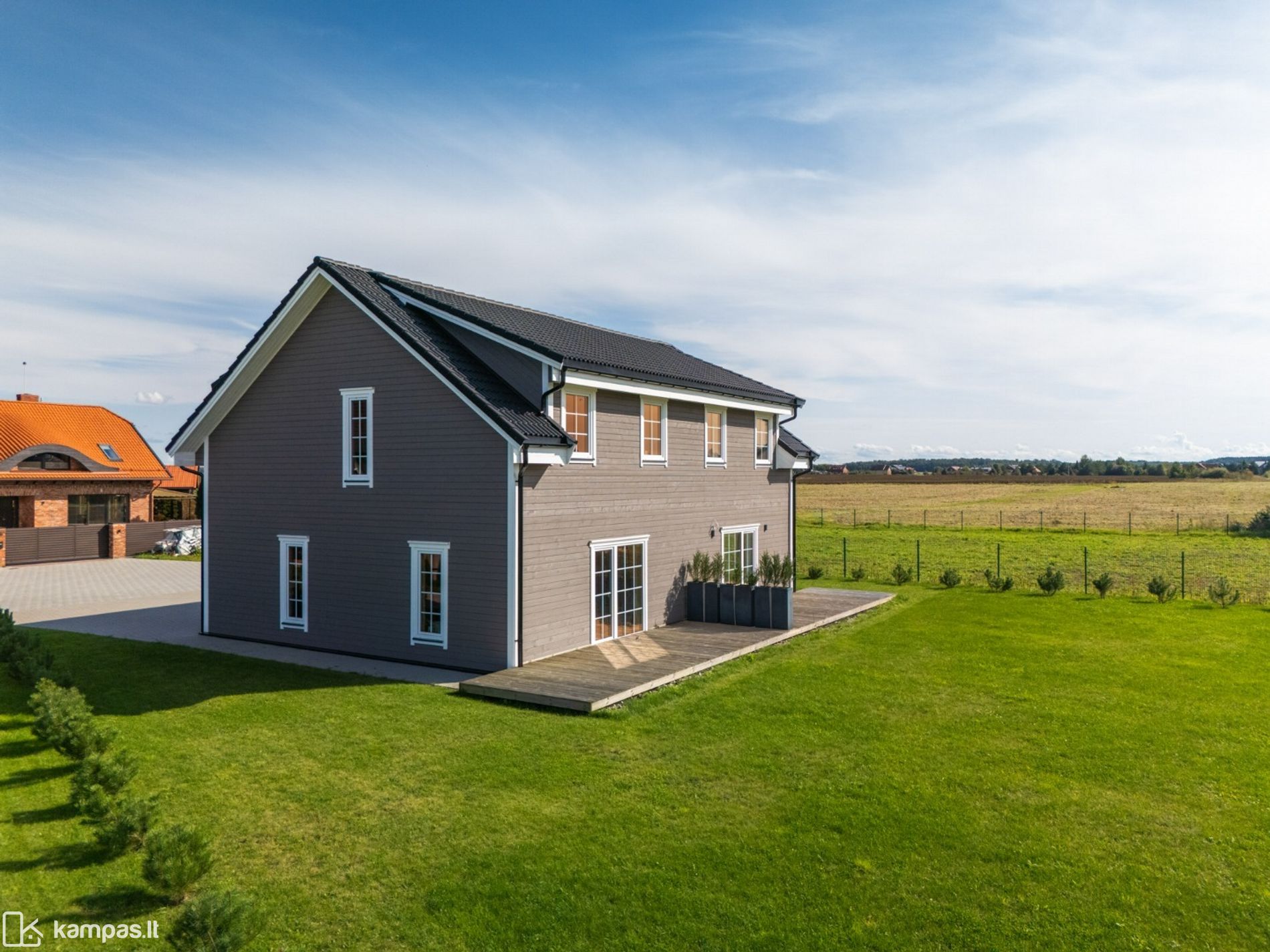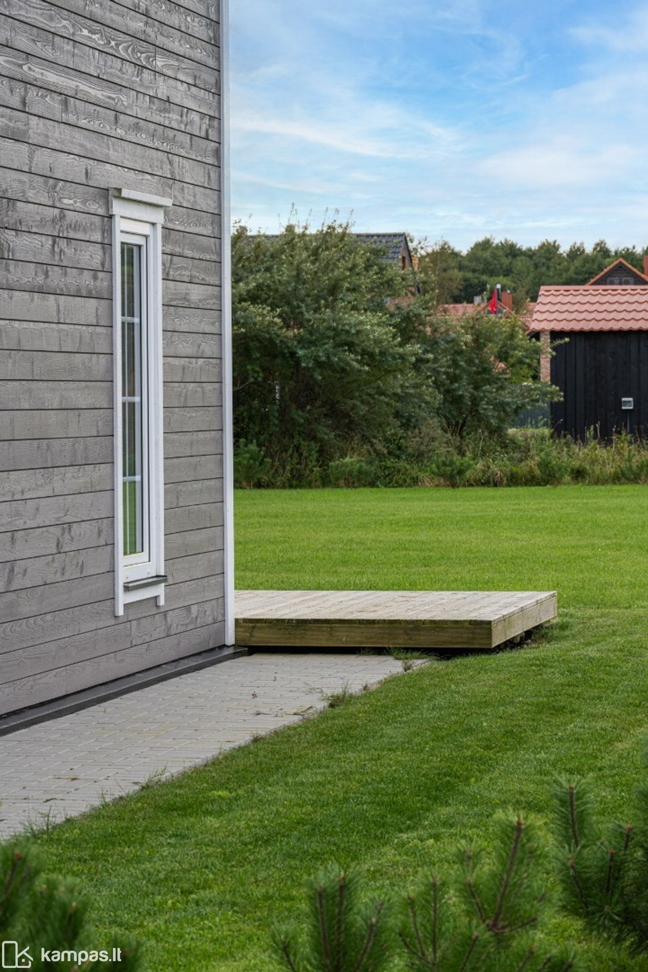 - Puiki namo pozicija sklype - erdvė lauko virtuvei, pergolai, pavėsinei su židiniu, sandėliukui ar svečių nameliui;