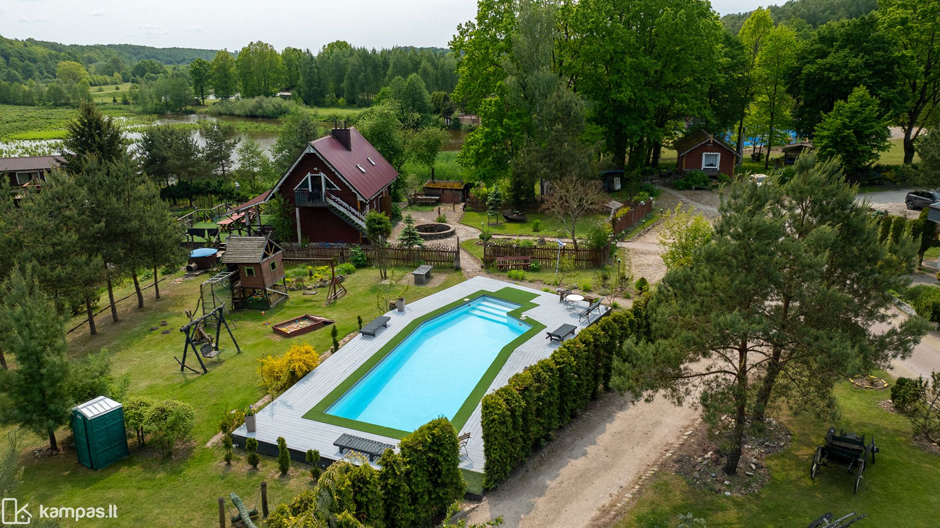 / Poilsio namus – pirtį (123 m³), kuriuose yra kambariai, pirtis, poilsio salė ir terasa su vaizdu į vandens telkinį