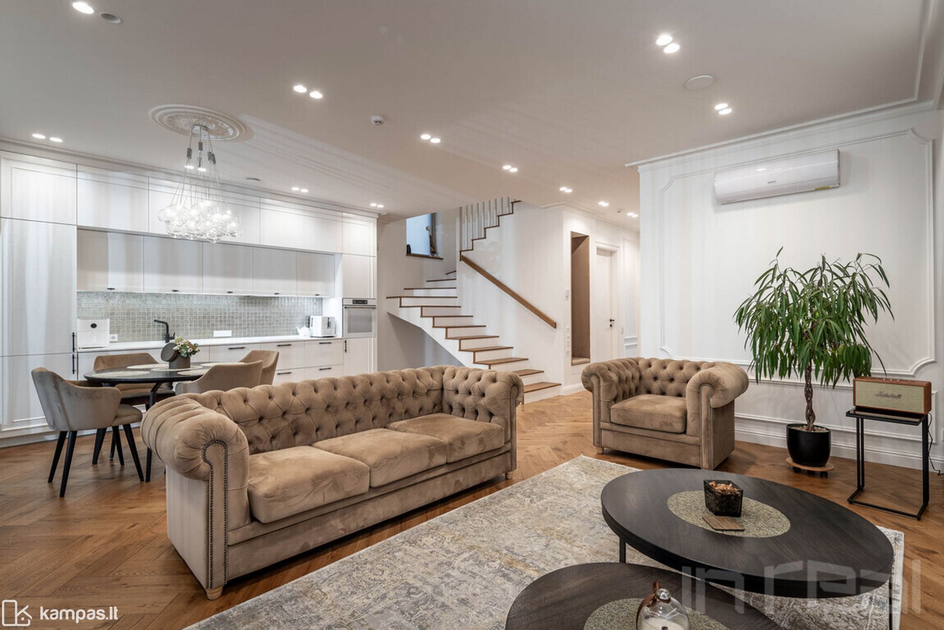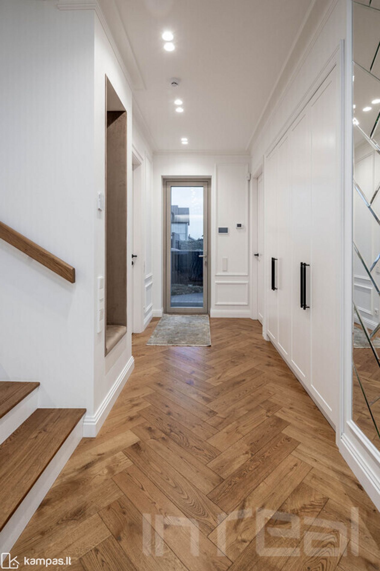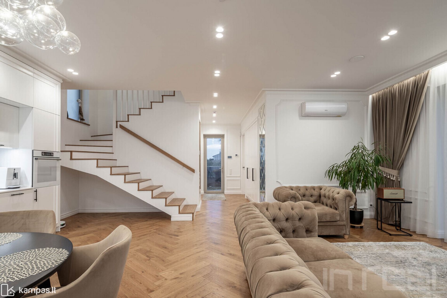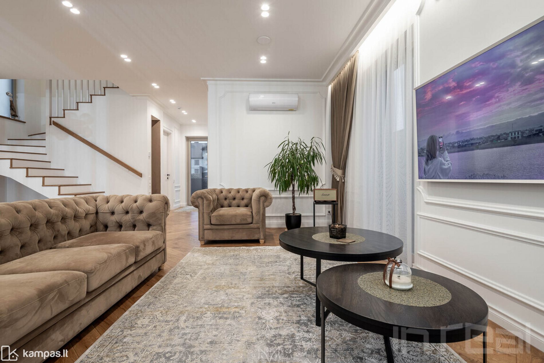 * Interjere dominuoja modernios klasikos stilius. Beveik visi baldai yra pagaminti pagal užsakymą, todėl kuriamas vientisas estetinis vaizdas. Natūralaus medžio grindys ir durys iš "Medžio stilius" , natūralaus akmens stalviršiai suteikia jaukumo ir prabangos pojūtį.