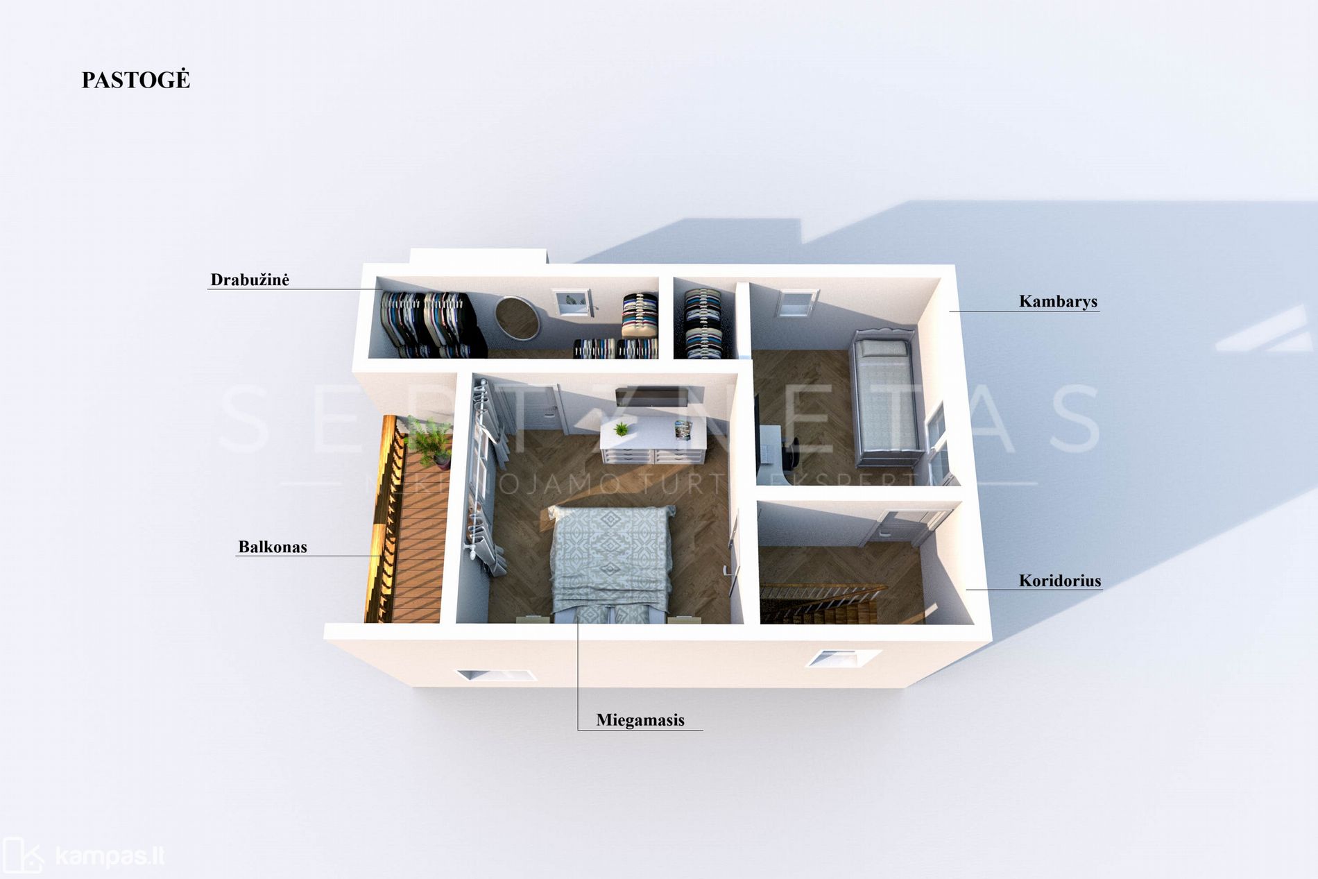 - Antrame aukšte įrengtas balkonas;