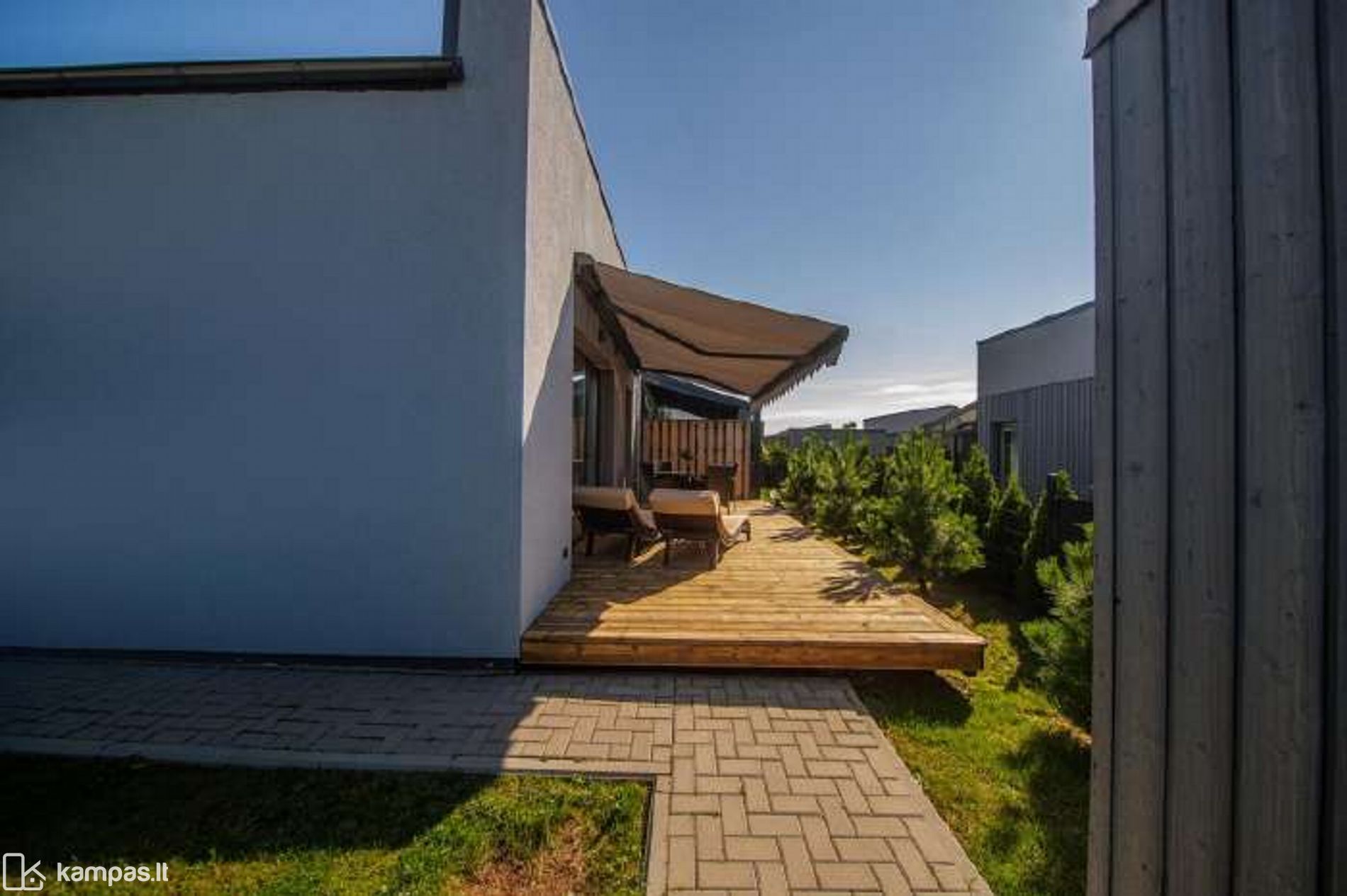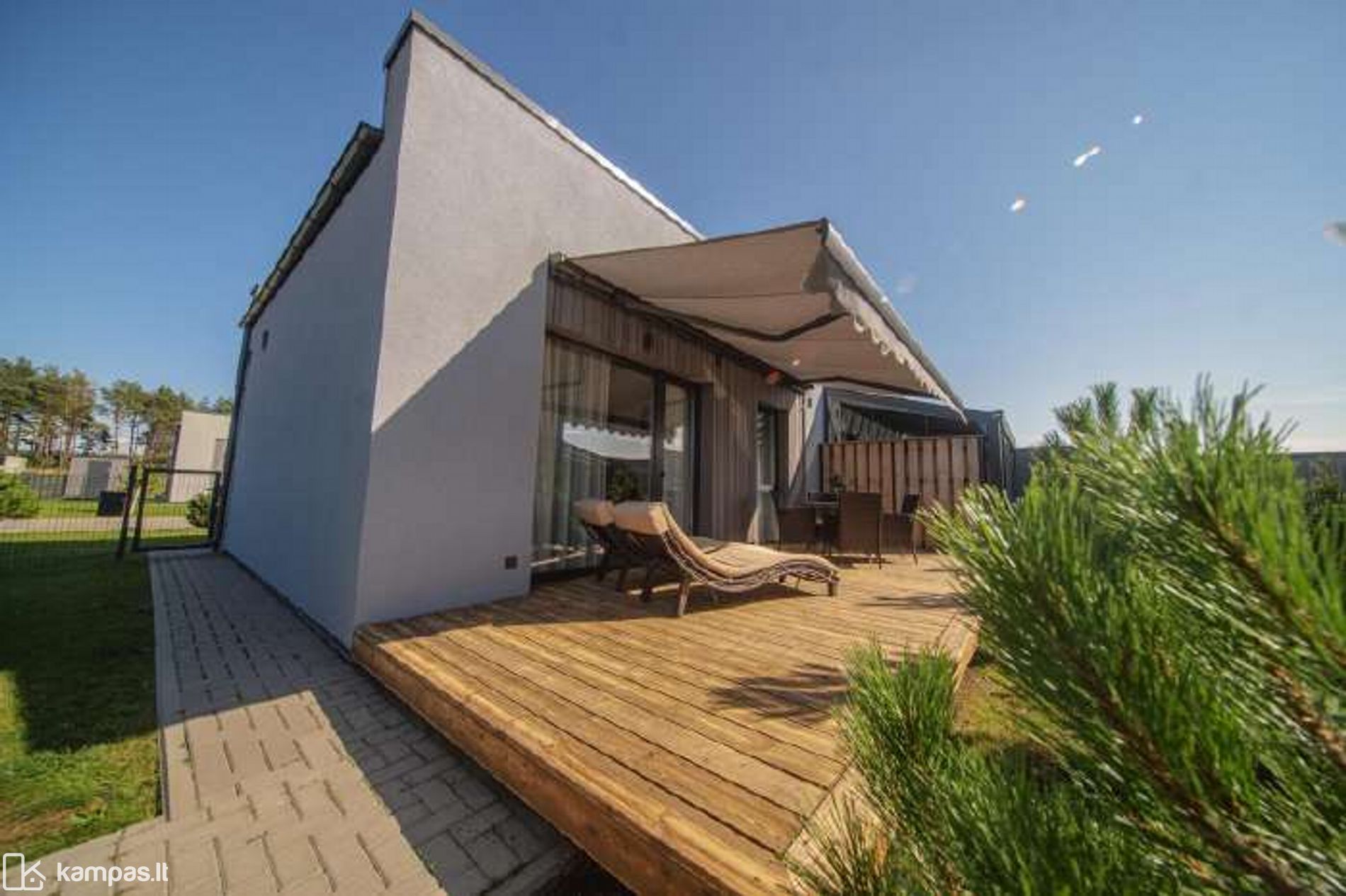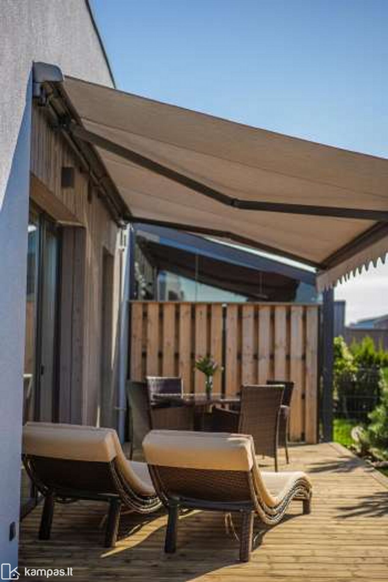 - Didžiulė terasa per visą namo ilgį su markize per visa terasa.