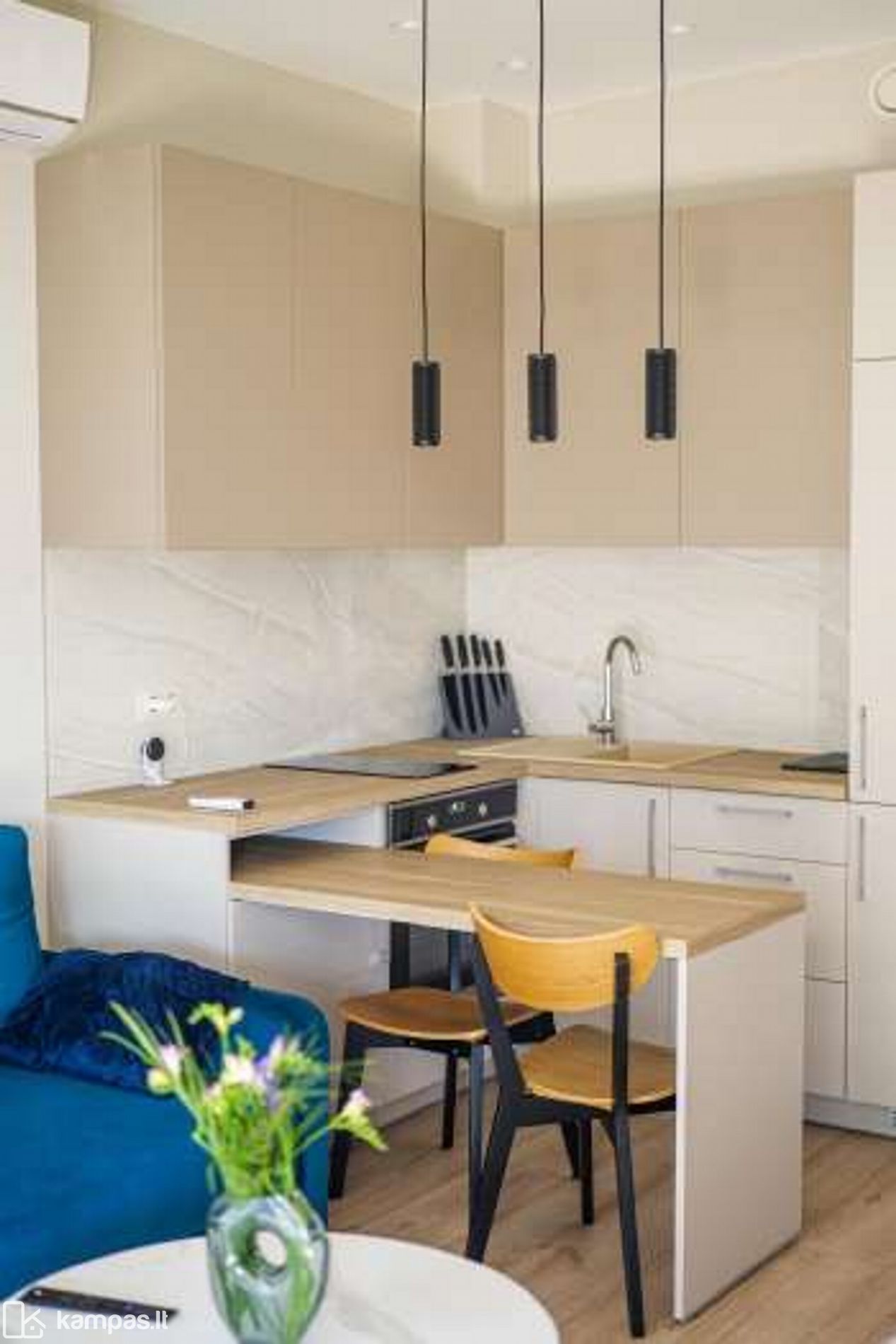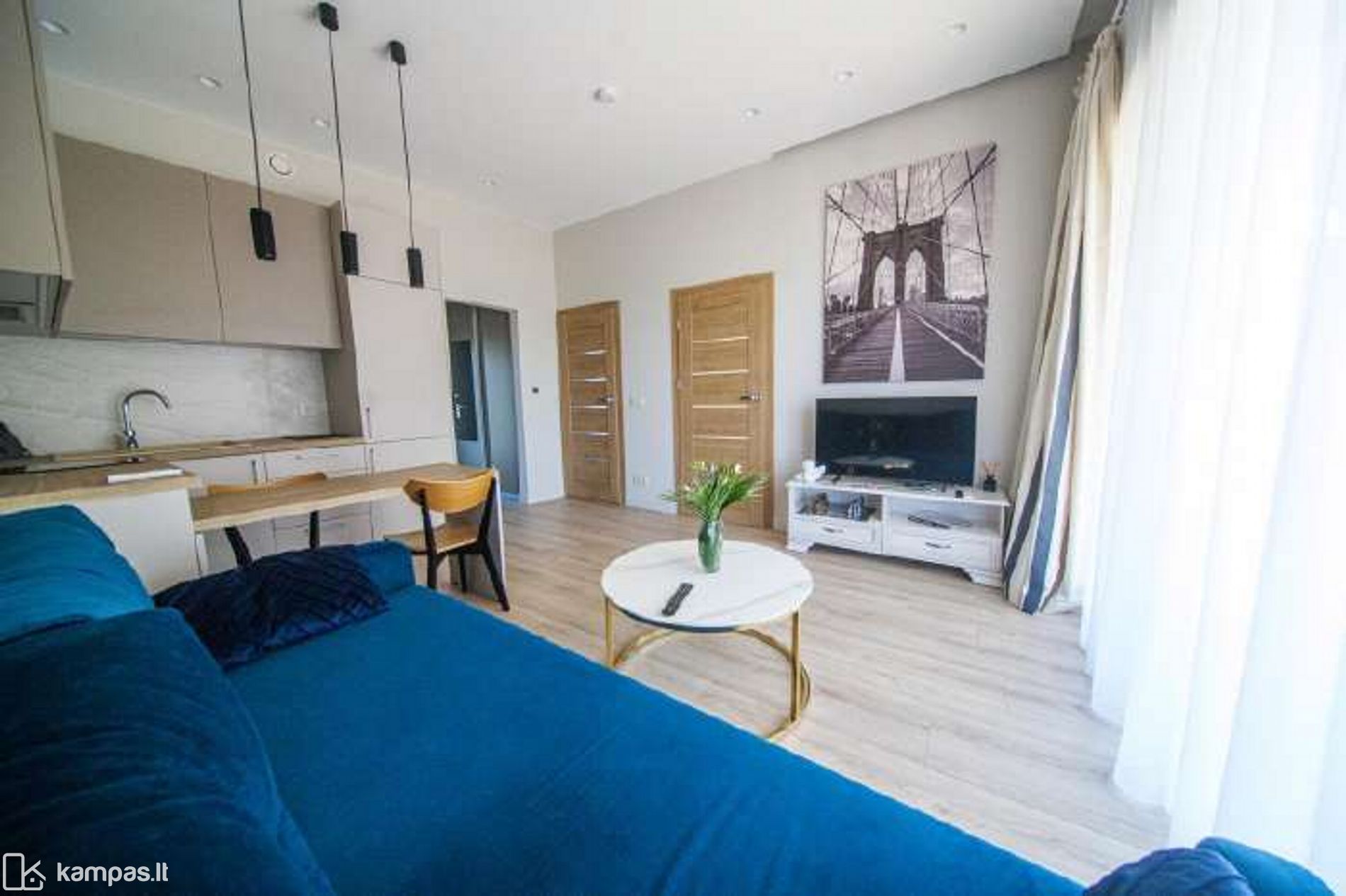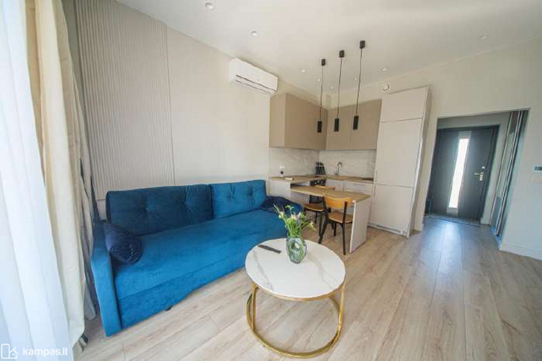 - Svetainė vienoje erdvėje su virtuve.