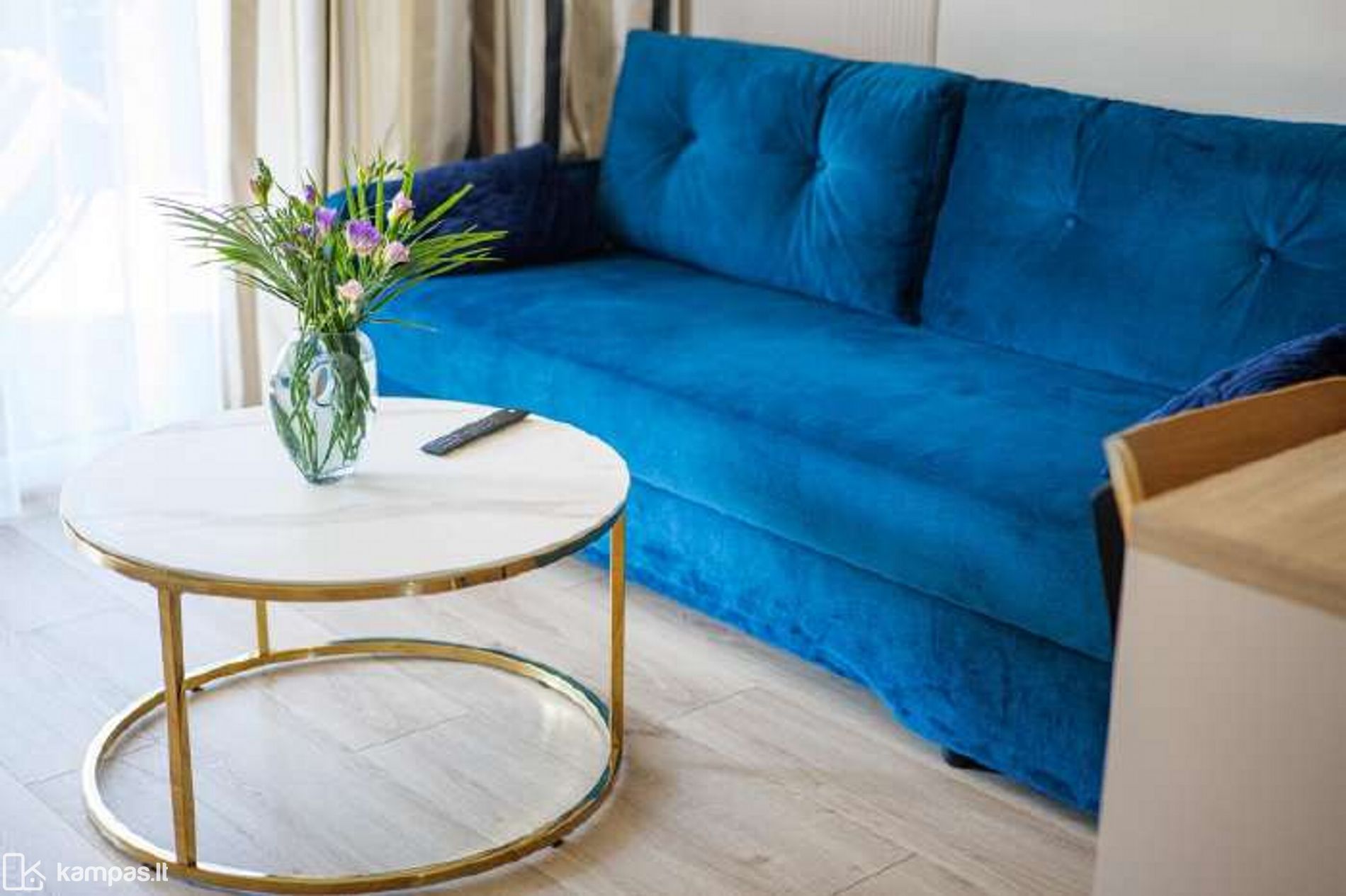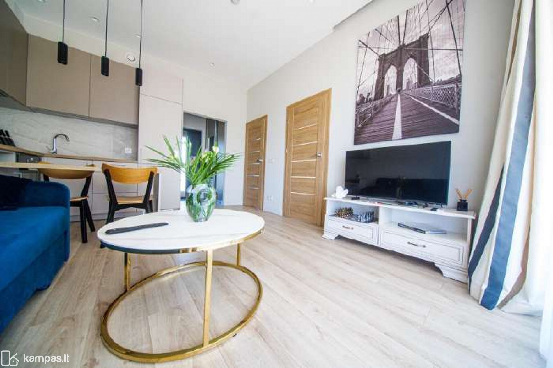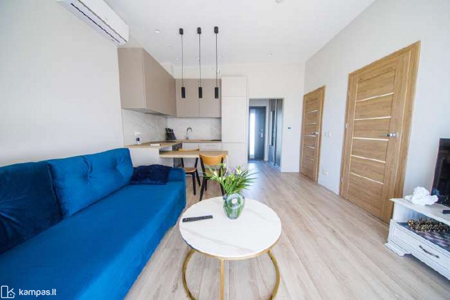 - Svetainė vienoje erdvėje su virtuve.