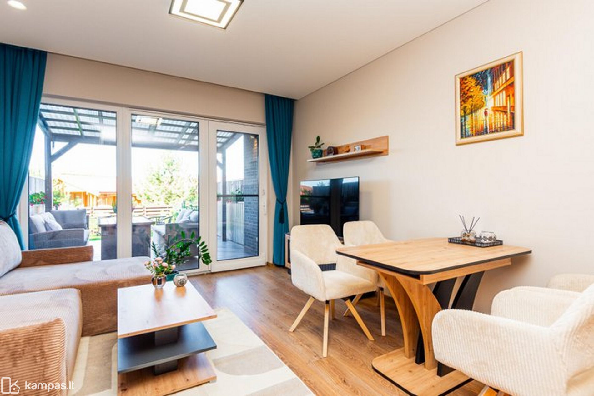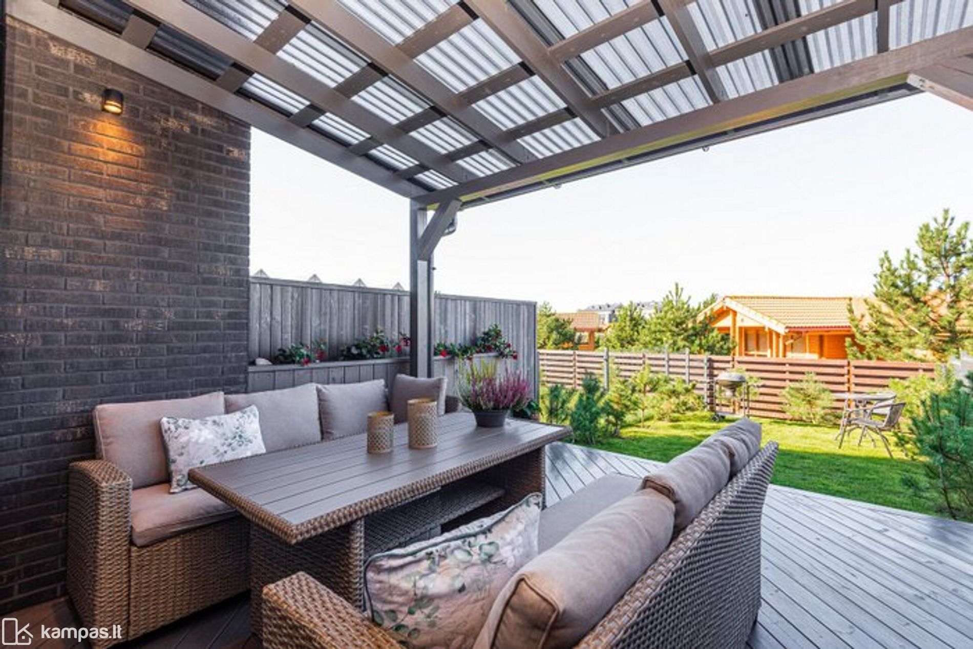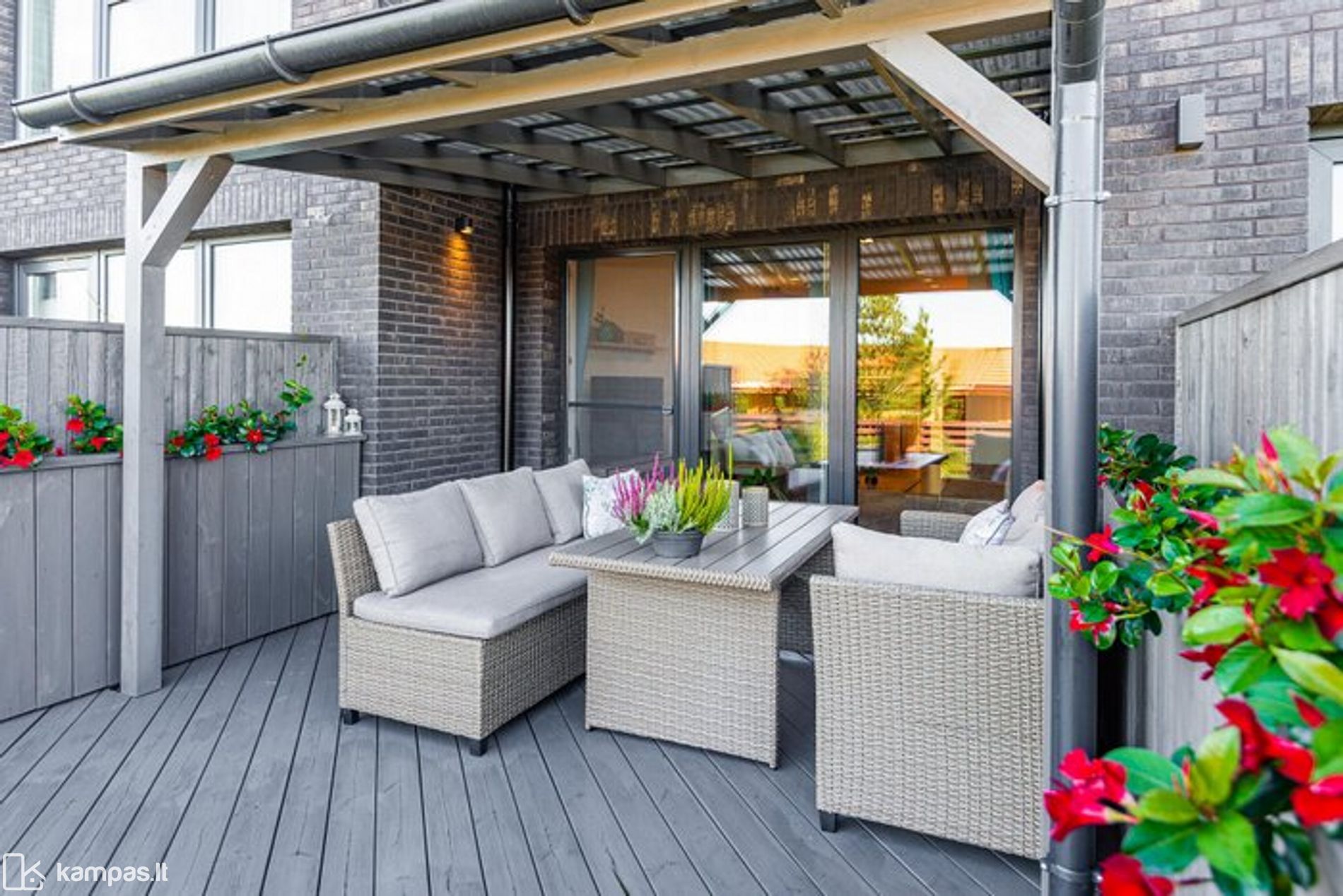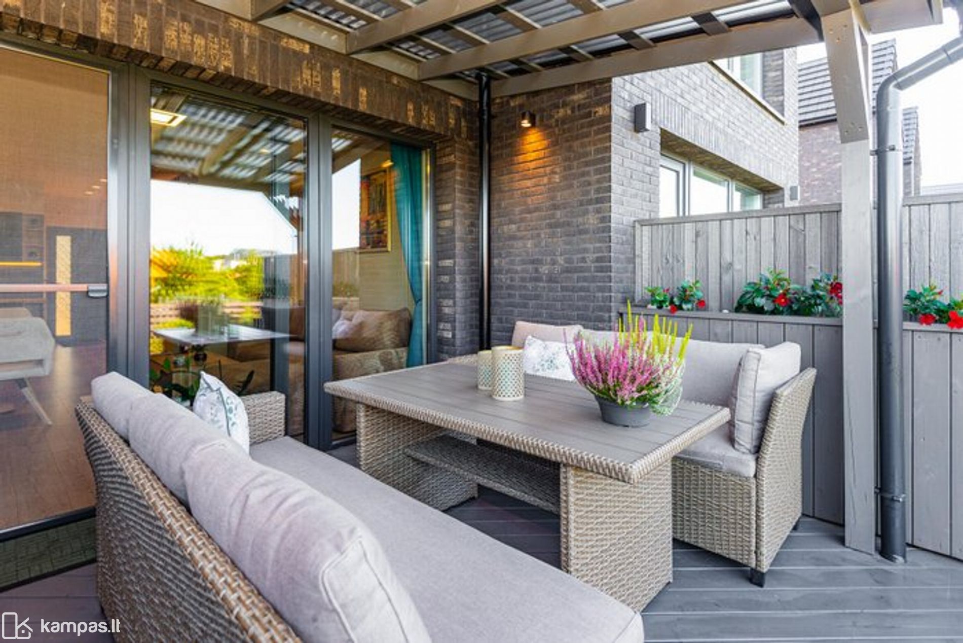 Lokacija ir aplinka: Namas pastatytas ramioje, gerai suplanuotos teritorijos vietoje – akligatvyje, atokiau nuo judrios gatvės. Privažiavimas asfaltuotas, trinkelėmis išklota vidinė teritorija. Uždaras kiemas su erdvia terasa, apsodintas pušelėmis – ideali vieta poilsiui.