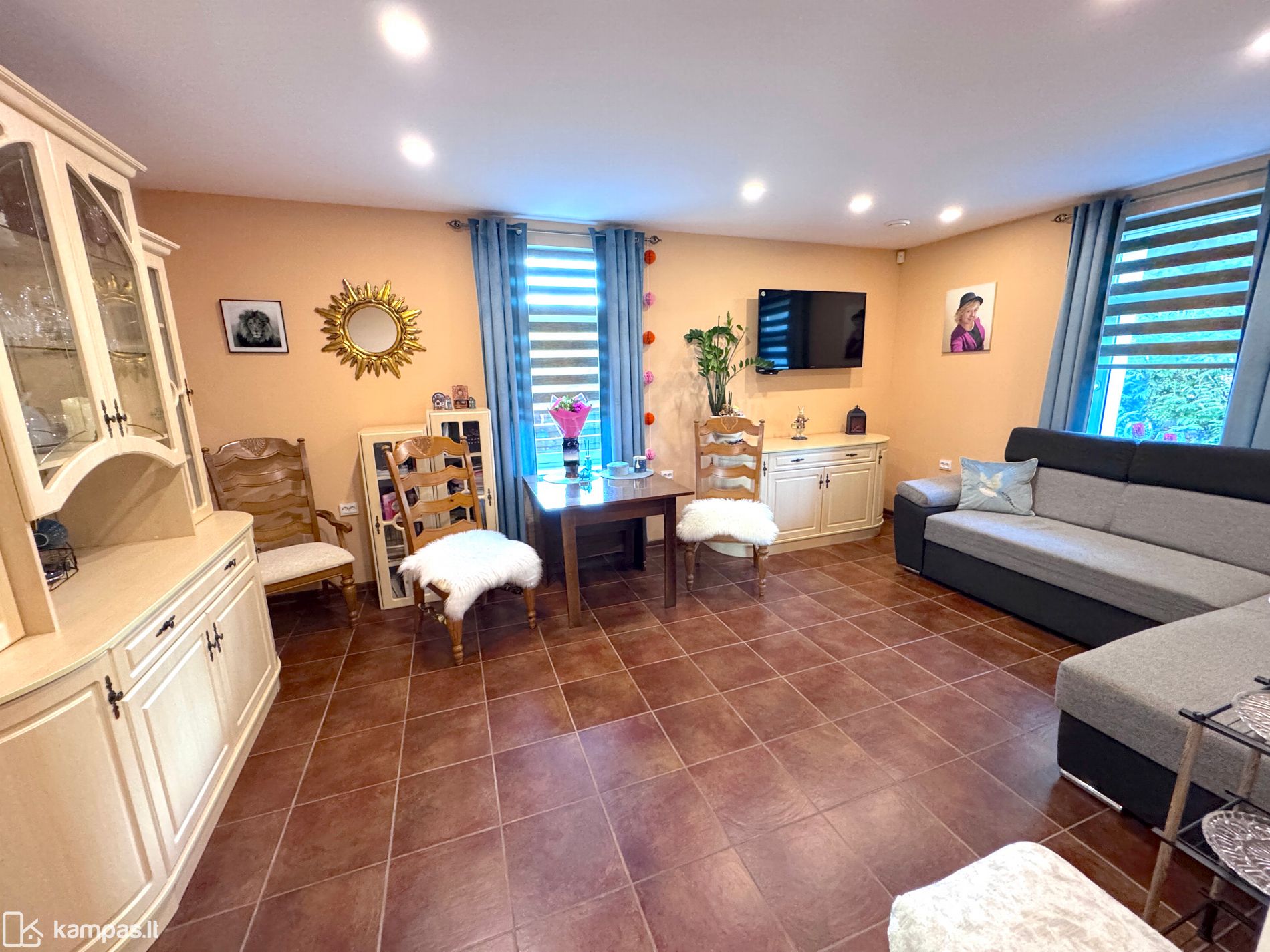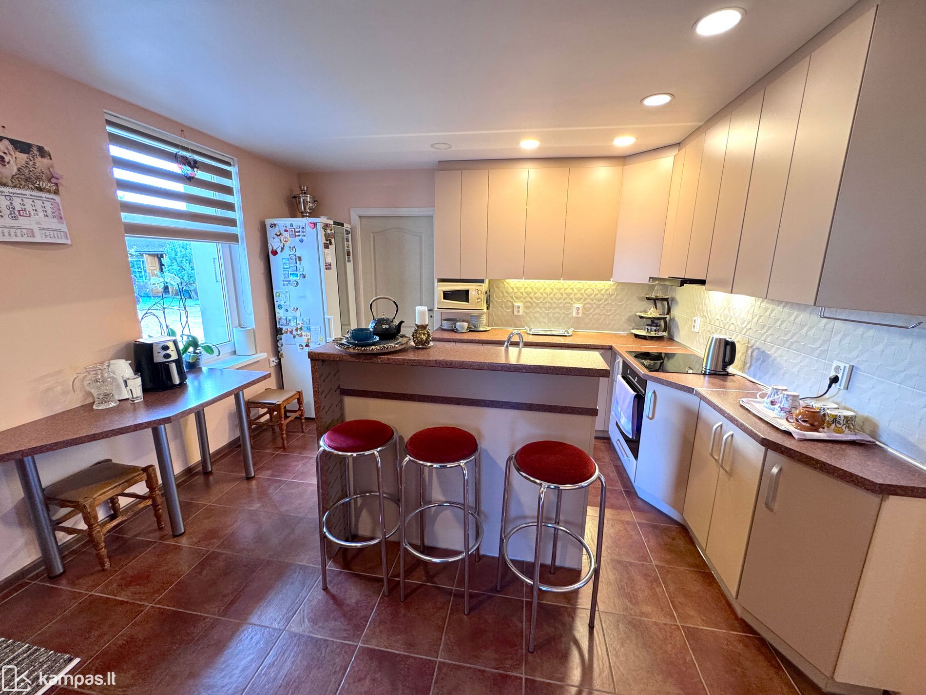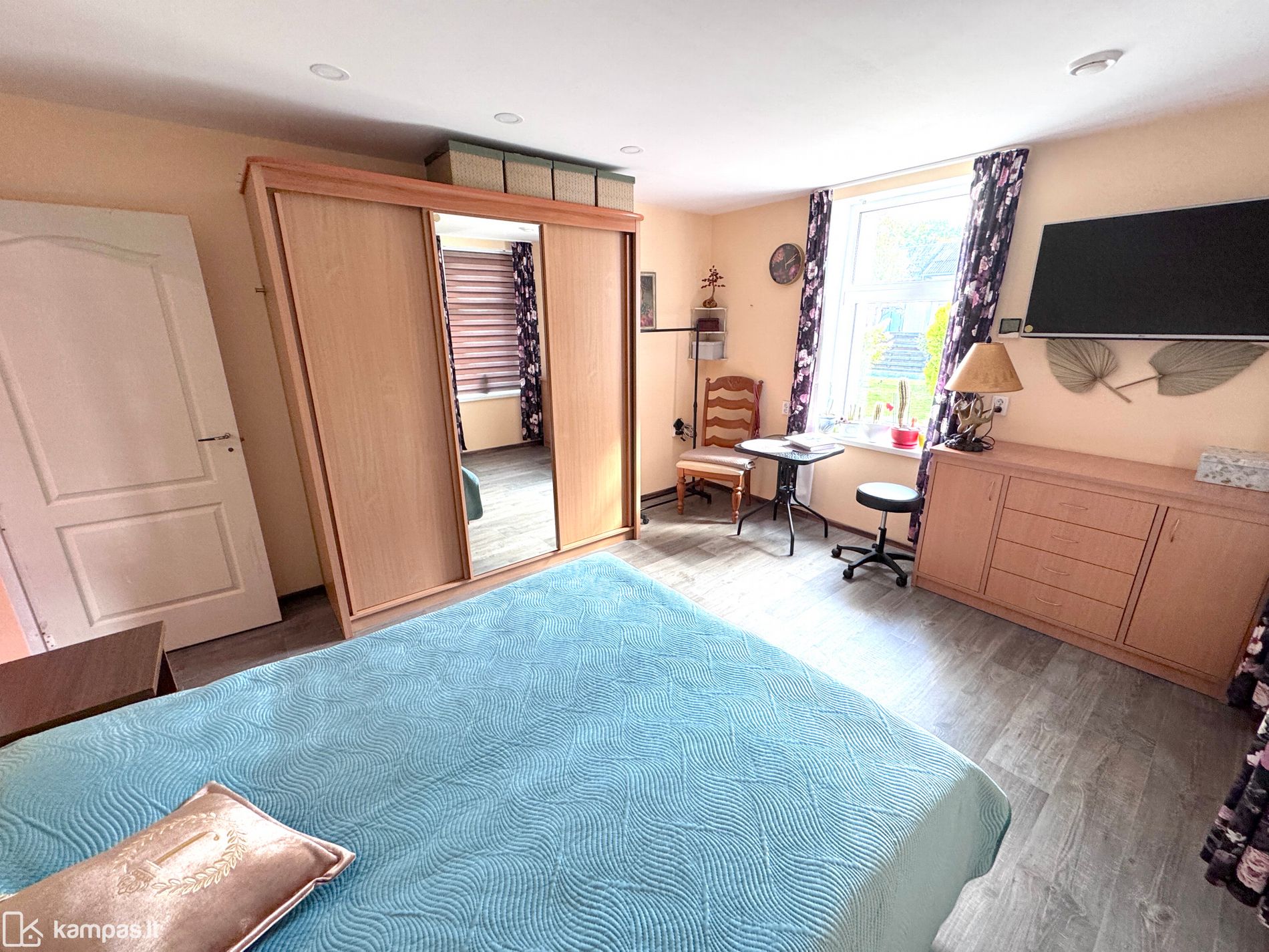 - Pirmame aukšte yra: svetainė, virtuvė, miegamasis, vienas kambarys, WC-vonios patalpa, prieškambaris;