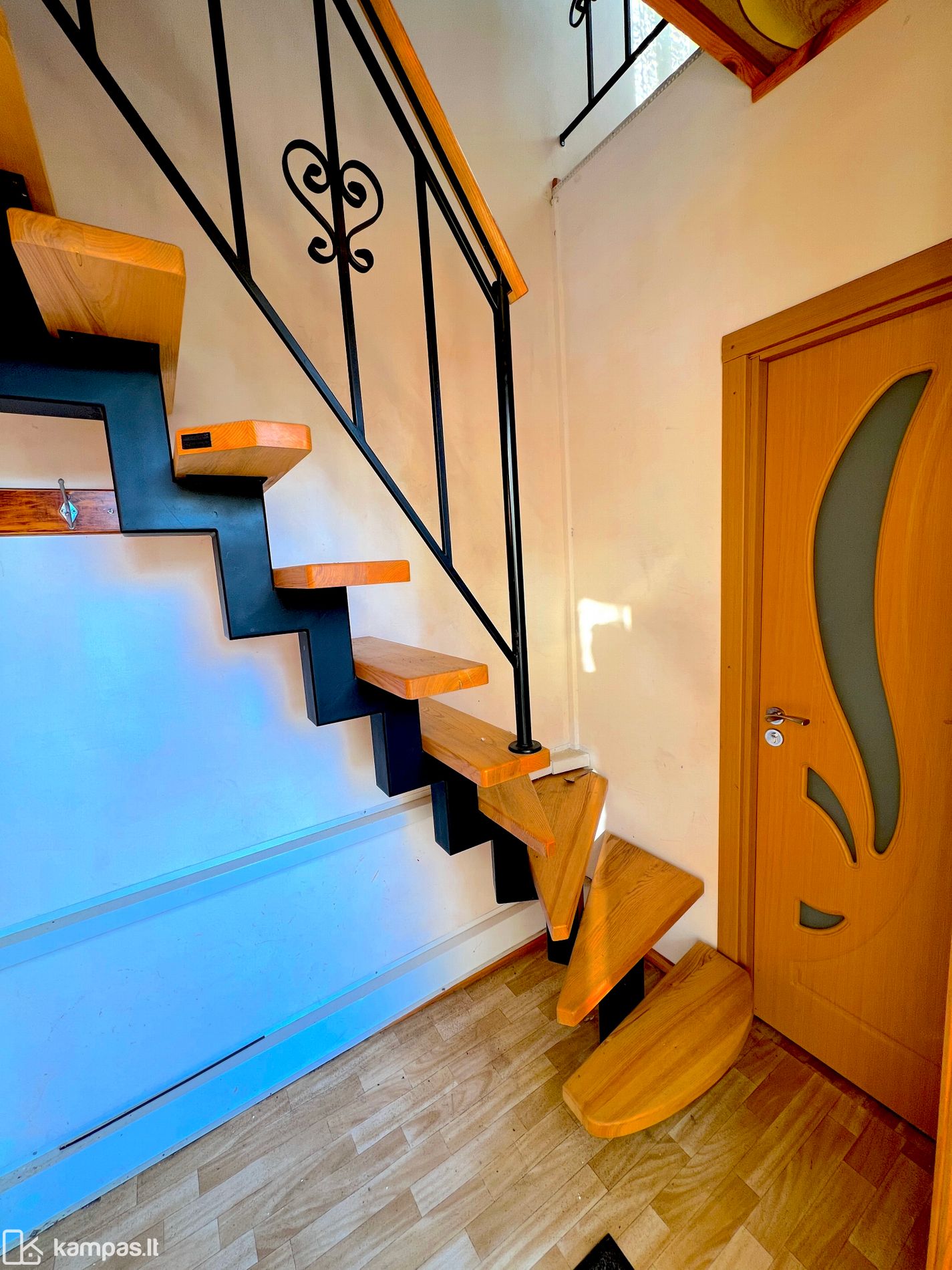 - Antra dalis (Liaudies g. 19), bendras plotas yra 95.45 kv.m., 1 aukšte yra: didelė, erdvi svetainė, miegamasis, virtuvė, įėjimas-išėjimas, WC patalpa, prieškambaris, 2 aukšte yra: 2 kambariai, prieškambaris, laiptinė, pagalbinės patalpos.