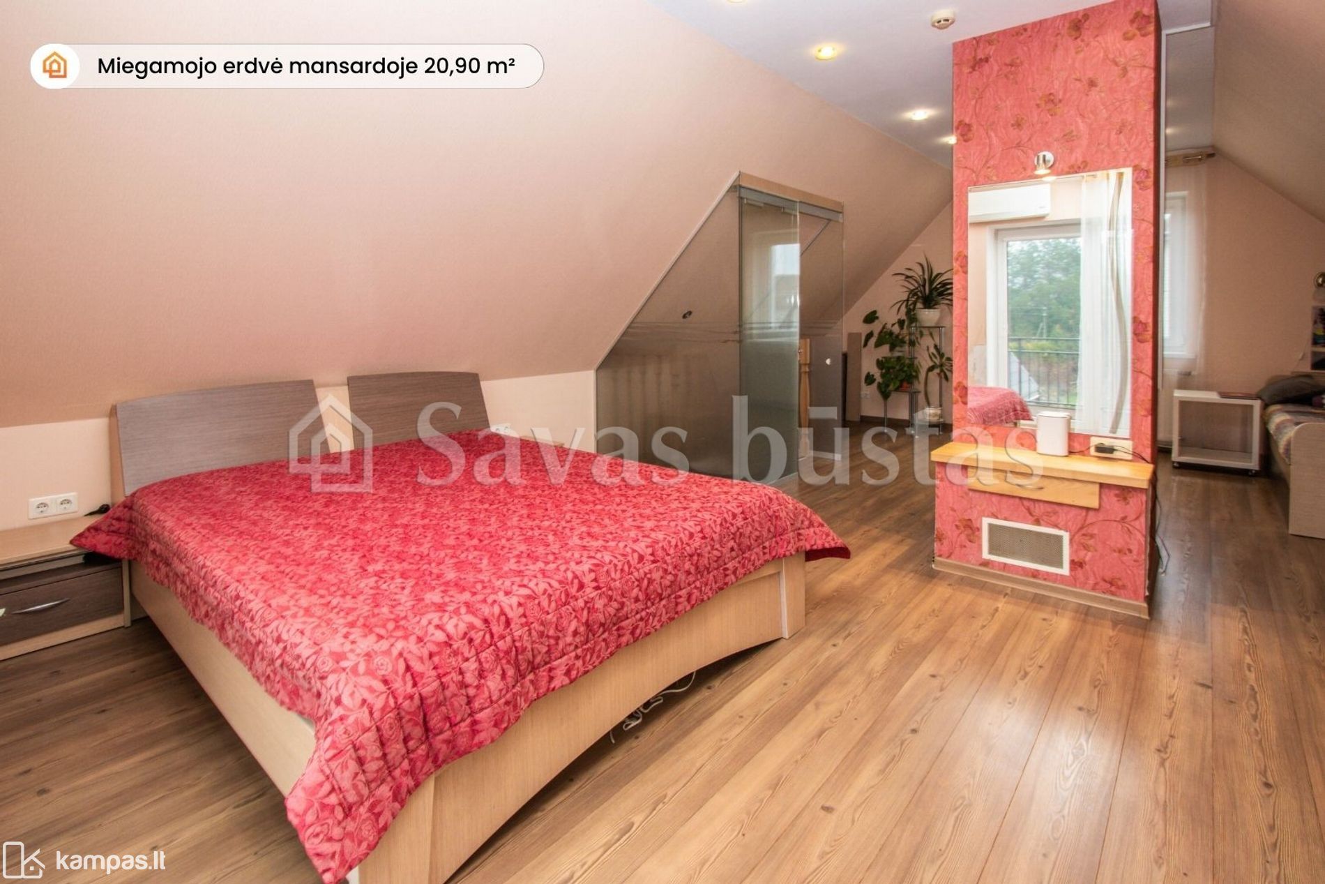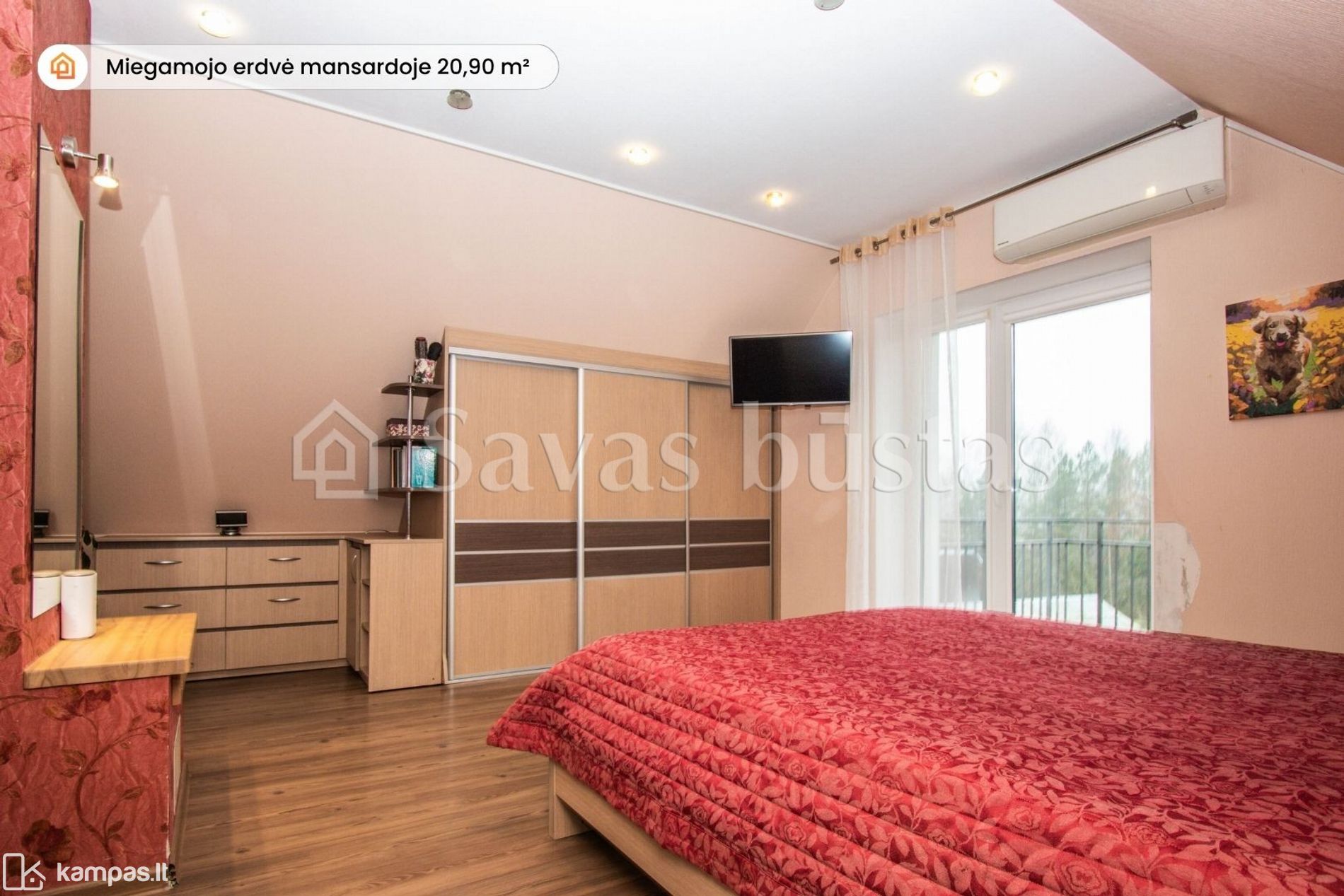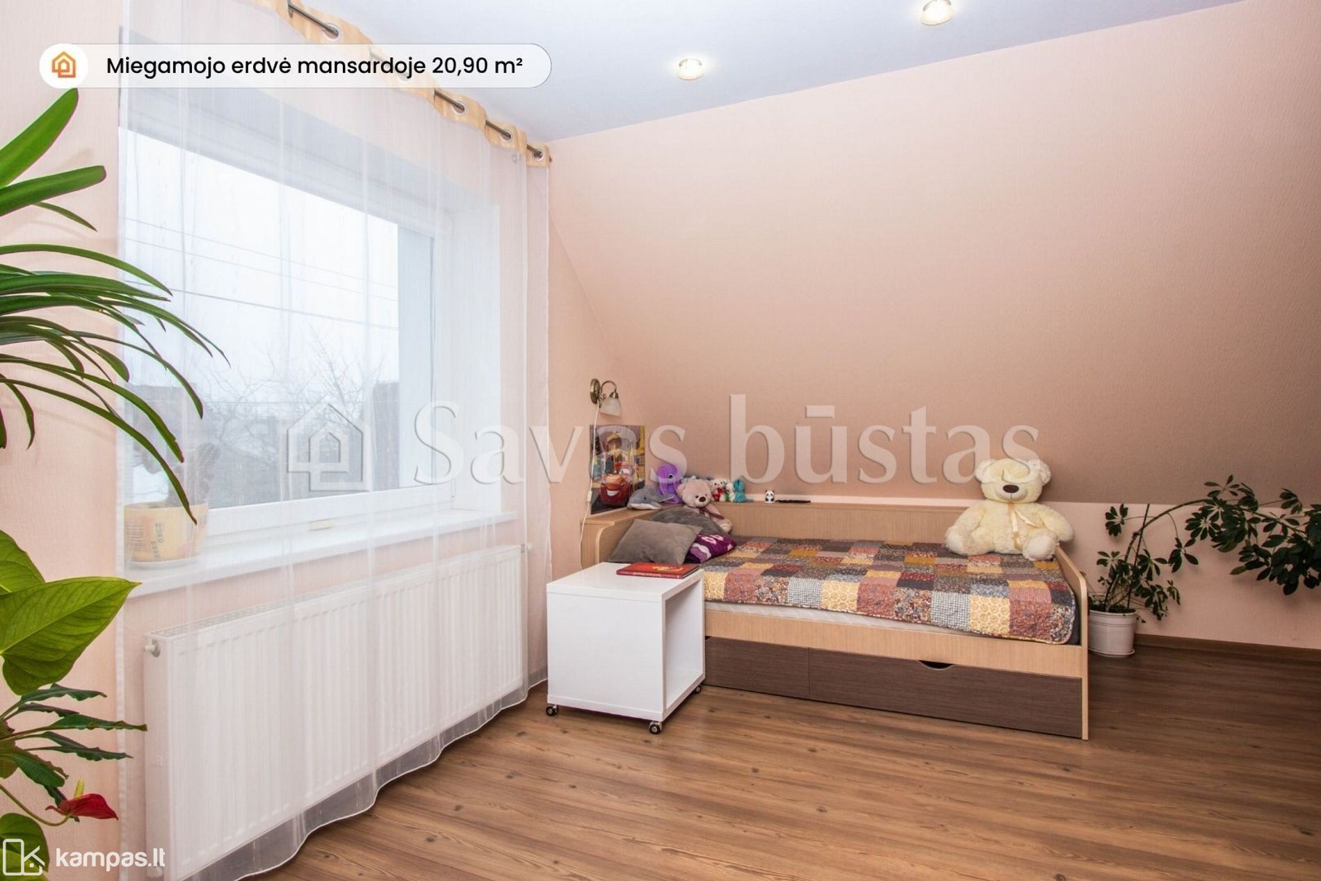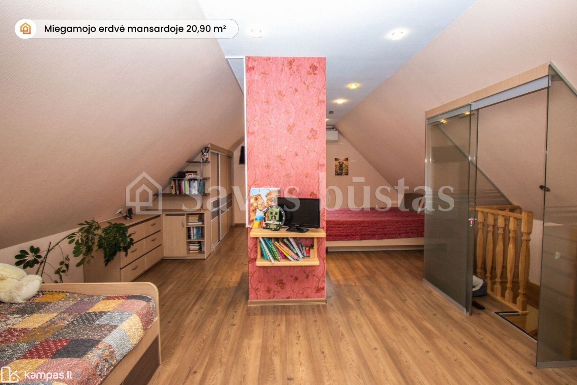 Pirmame aukšte įrengta virtuvė, holas ir svetainė su židiniu. Antrame aukšte – erdvus kambarys, šiuo metu naudojamas kaip miegamasis, tačiau esant poreikiui galima nesudėtingai padalyti į du kambarius. Iš mansardos yra išėjimas į balkoną, įrengtas oro kondicionierius.