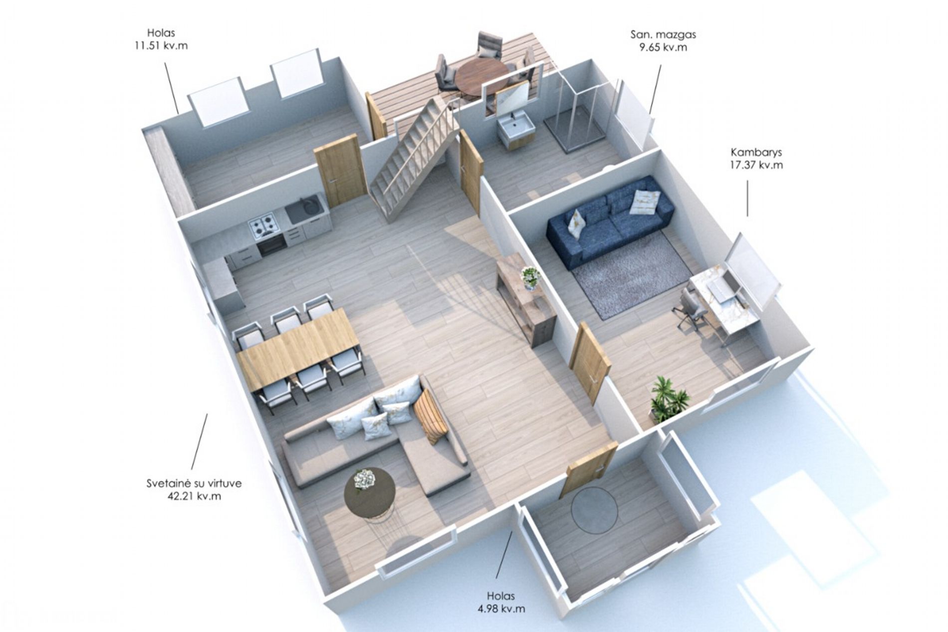 - Namas yra dviejų aukštų bei apačioje yra rūsys