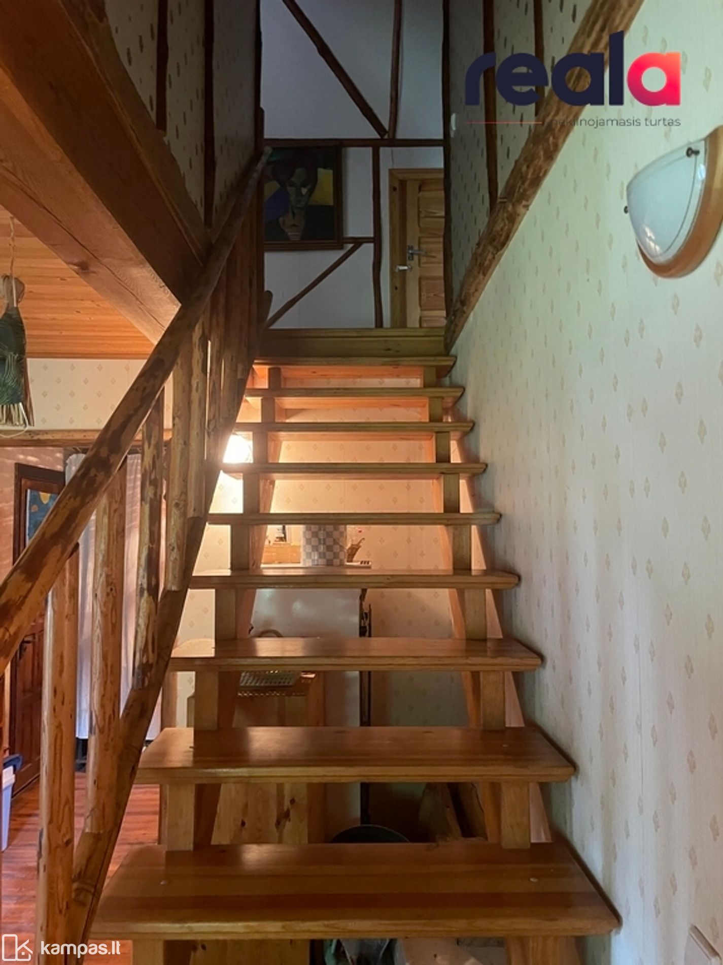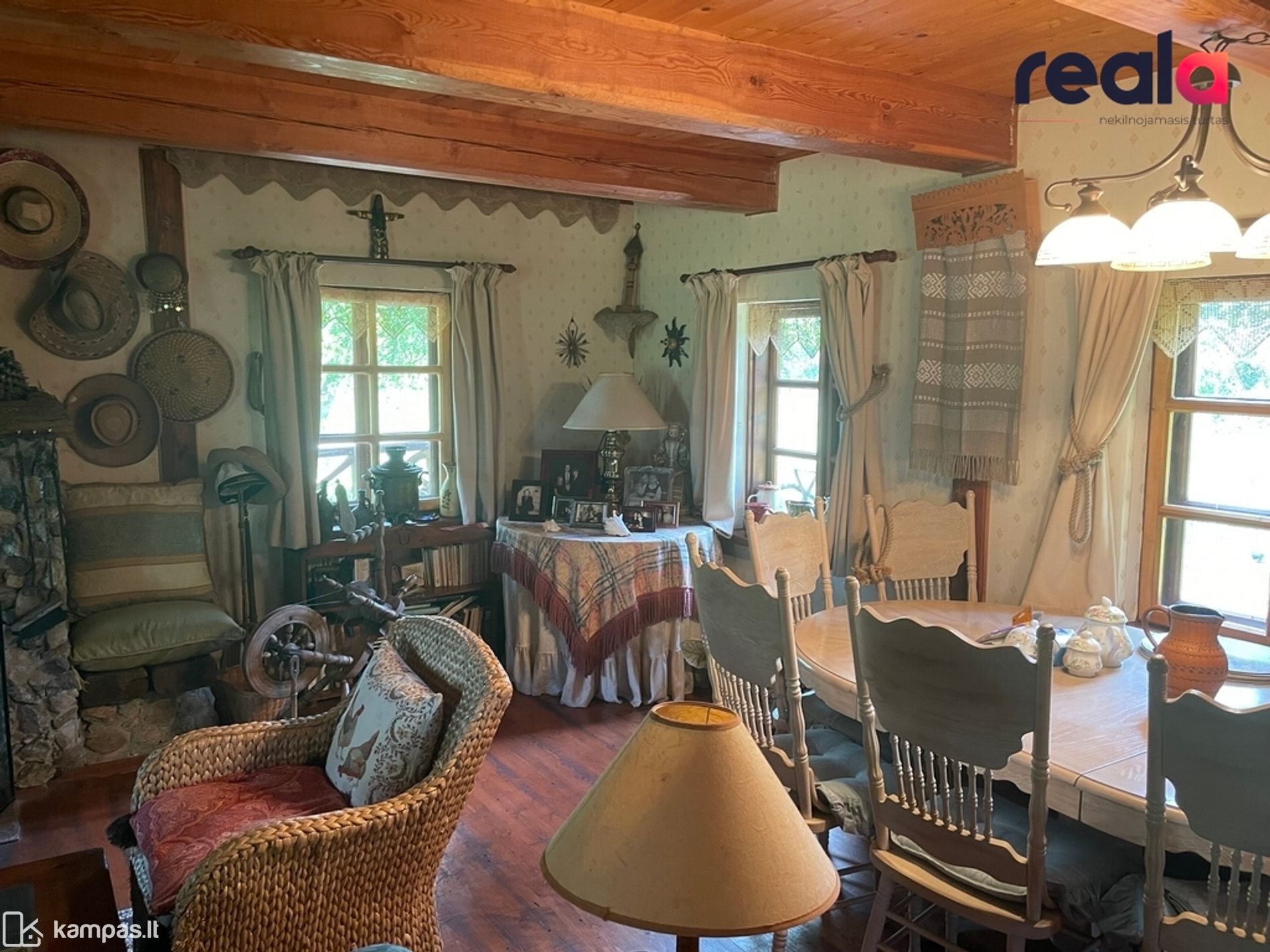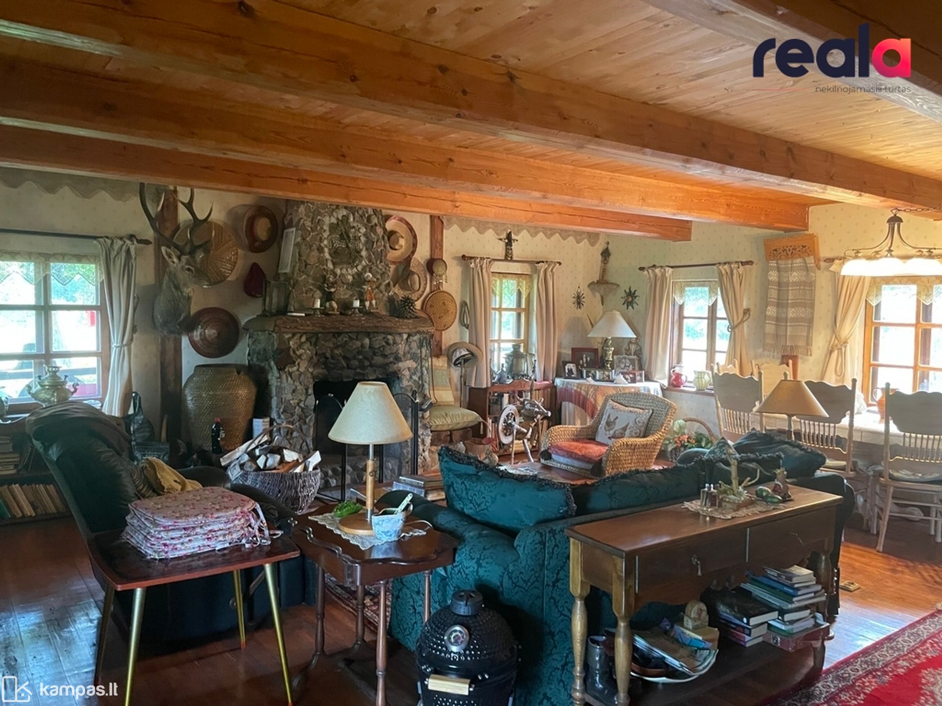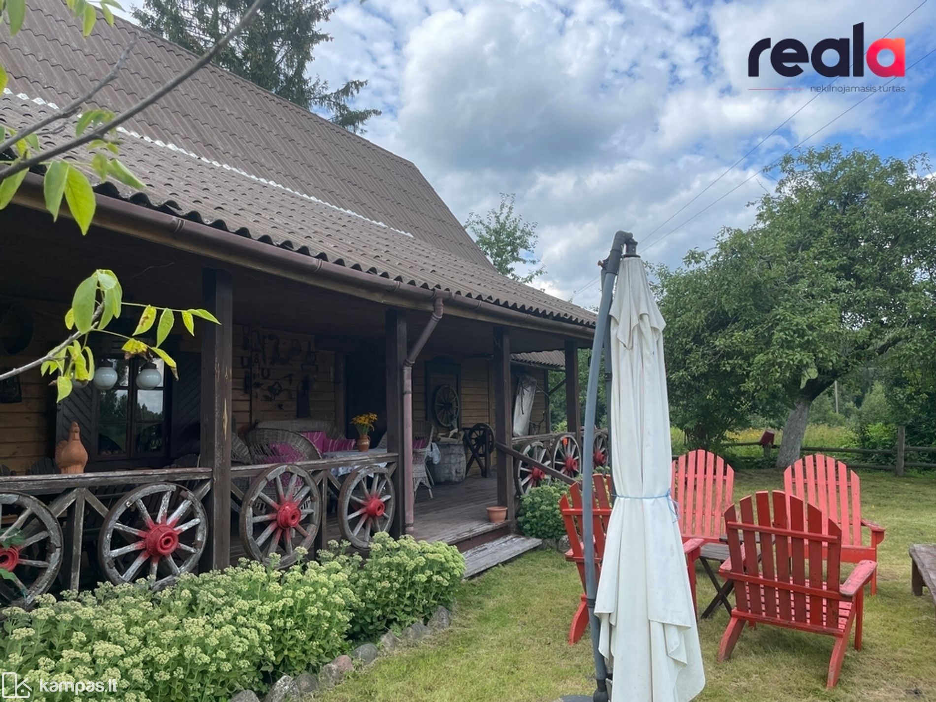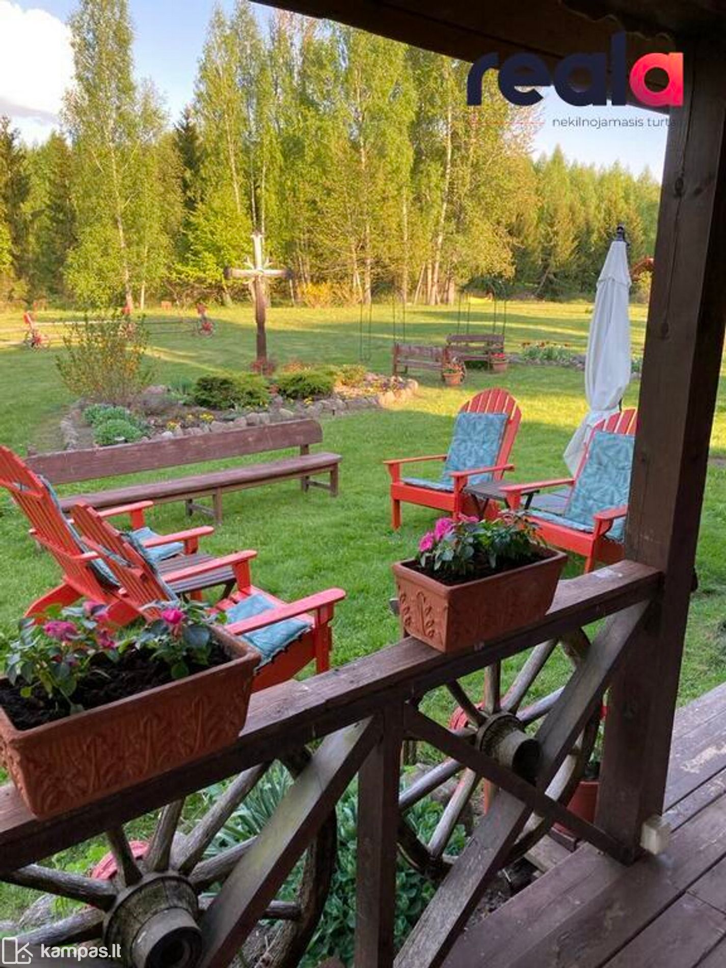 - rąstinis 2-jų aukštų gyvenamasis namas, 82,47 m2 ploto, su 4 patogiai išdėstytais kambariais, virtuve, dideliu antikvariniais baldais įrengtu svetainės kambariu, židiniu. Taip pat yra rūsys. Prie namo iš dviejų pusių yra dvi terasos, su lauko baldais;