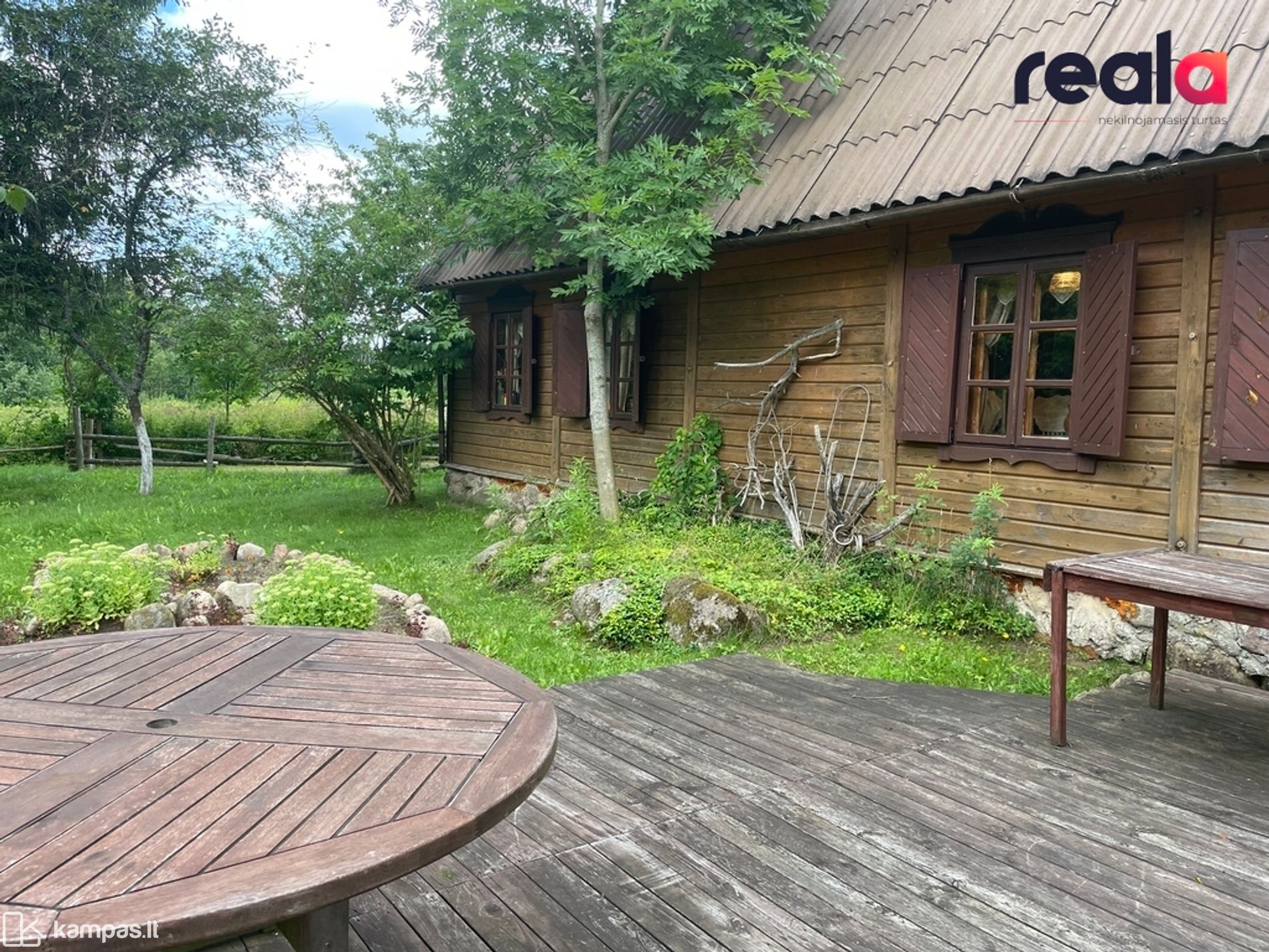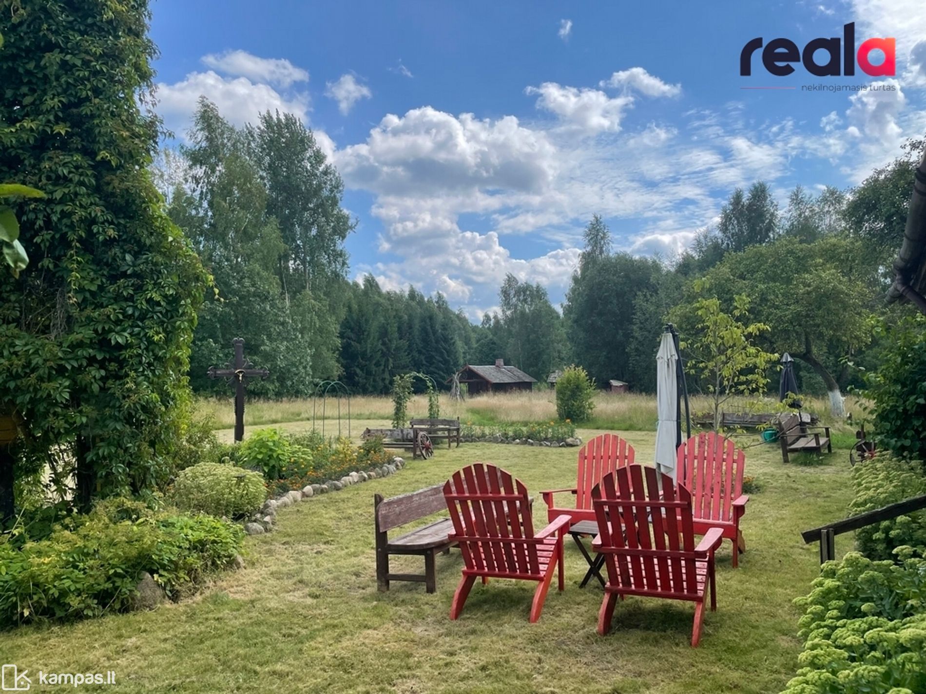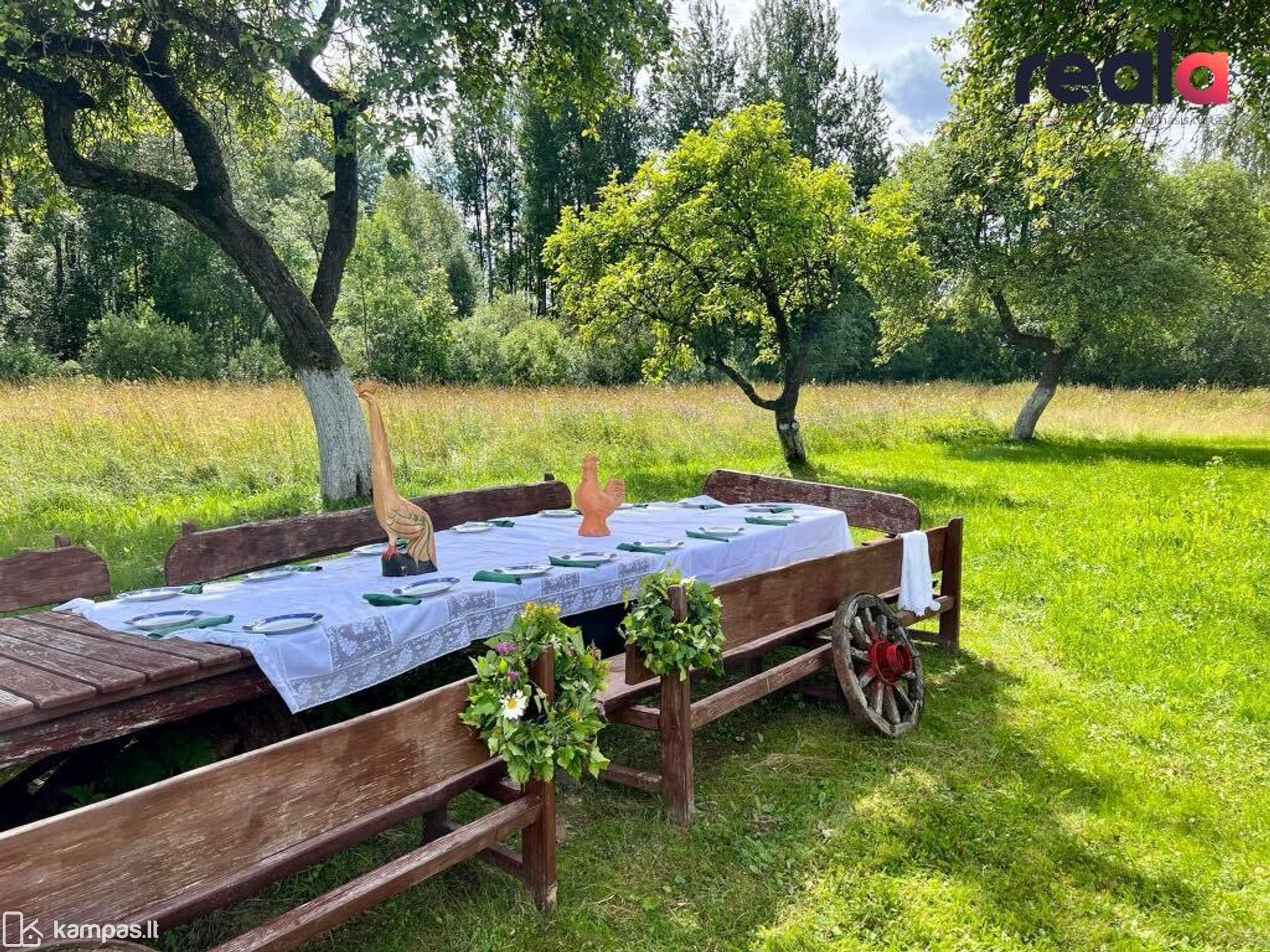 Parduodama tradiciškai puoselėjama sodyba, su gražiai sutvarkyta aplinka, nuolat žydinčiomis gėlėmis, tvarkingai ir prabangiai įrengtu rastiniu dviejų aukštų namu, kuriame yra vietinis vandentiekis, vietinė nuotekų sistema, signalizacija, pirtimi prie kūdros, netoli miško.