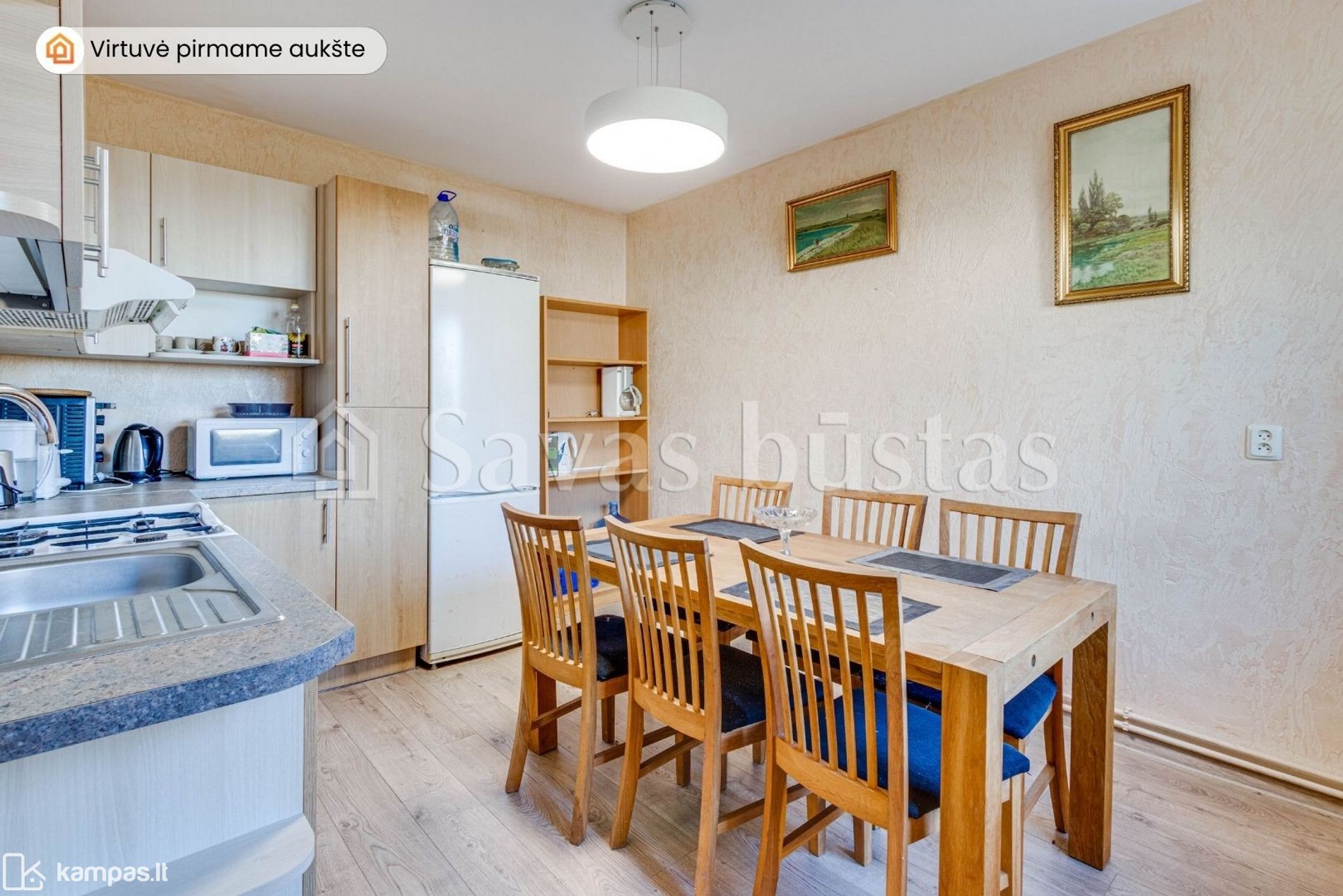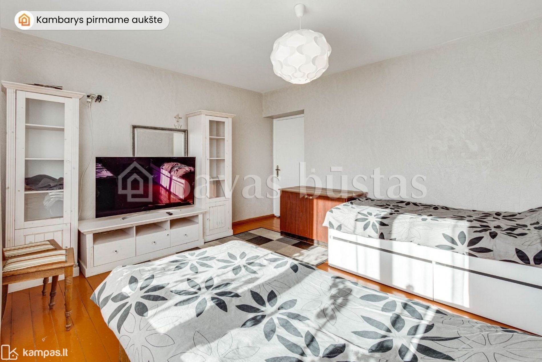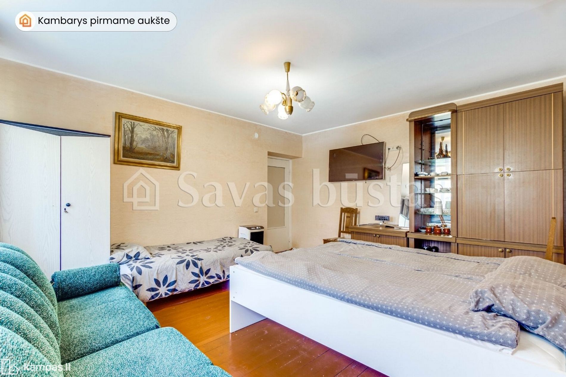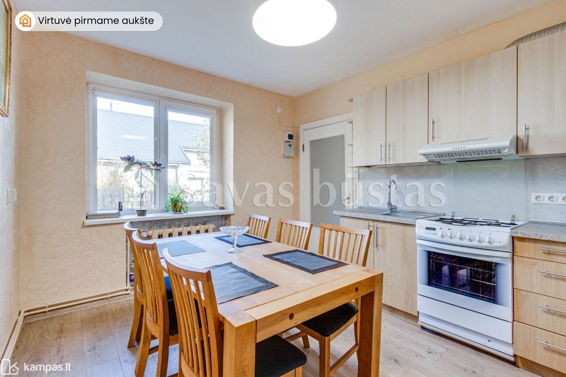 Pirmo aukšto virtuvėje ir koridoriuje grindys išklotos laminuota grindų danga, kambariuose – medinės. Sienos dažytos ir dekoruotos.