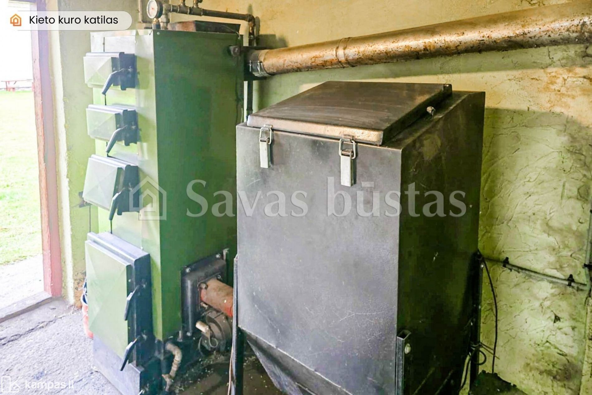 - Šildymas: kietu kuru (naudojant ekologišką kurą – grūdų lukštus).