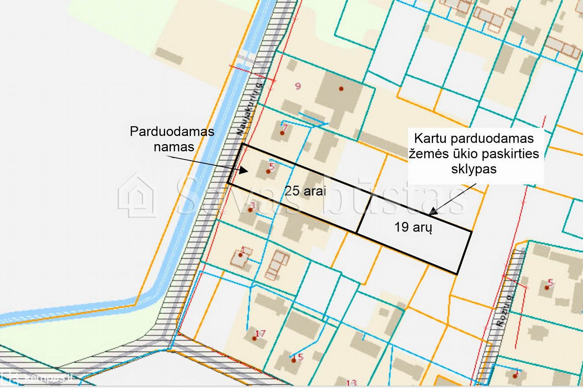 Kartu su namu parduodamas šalia esantis 19 arų žemės ūkio paskirties sklypas.