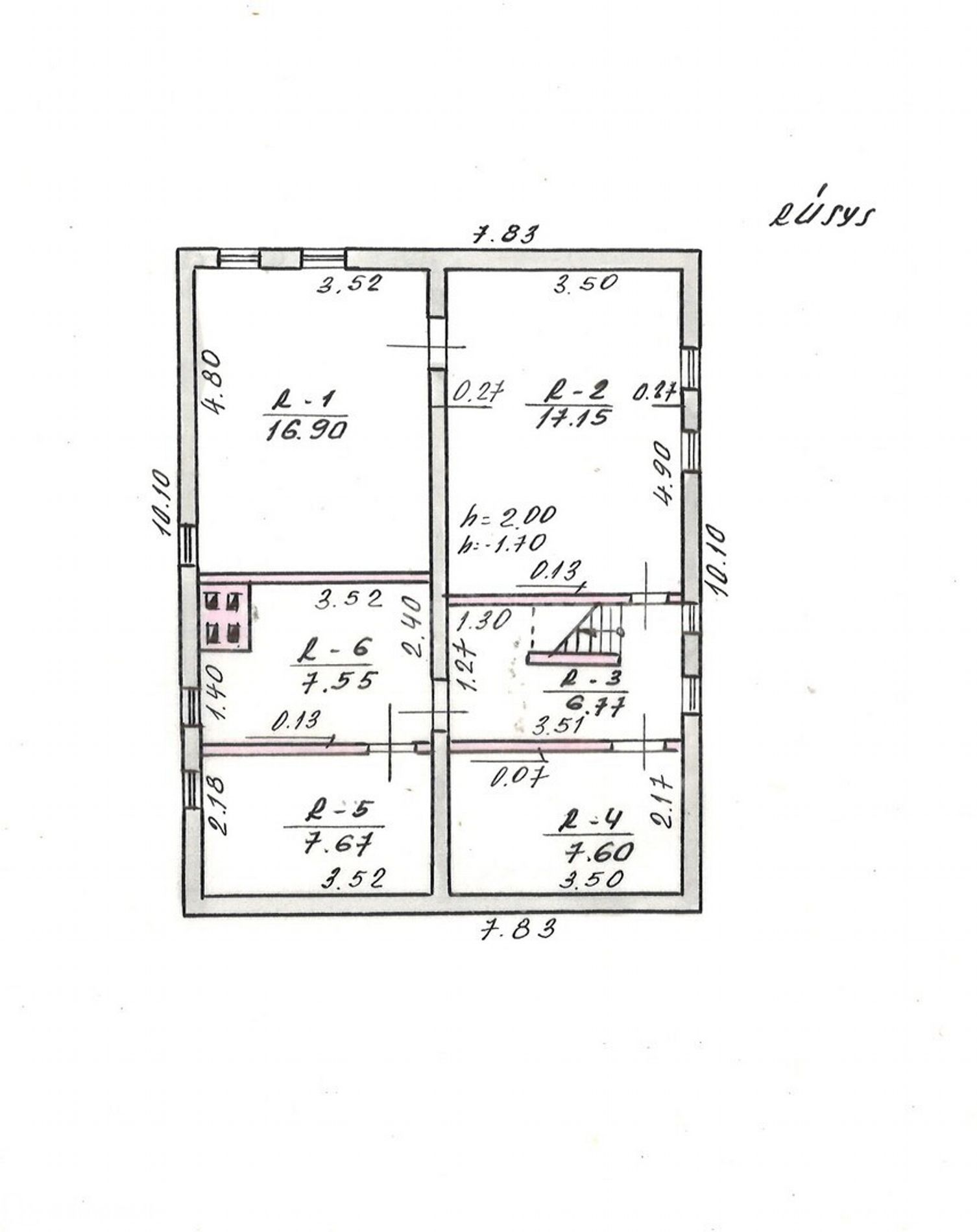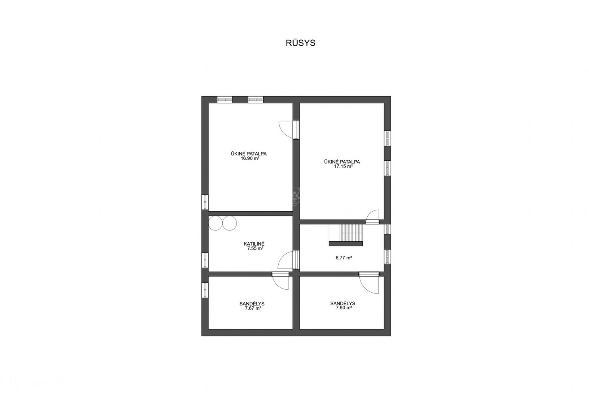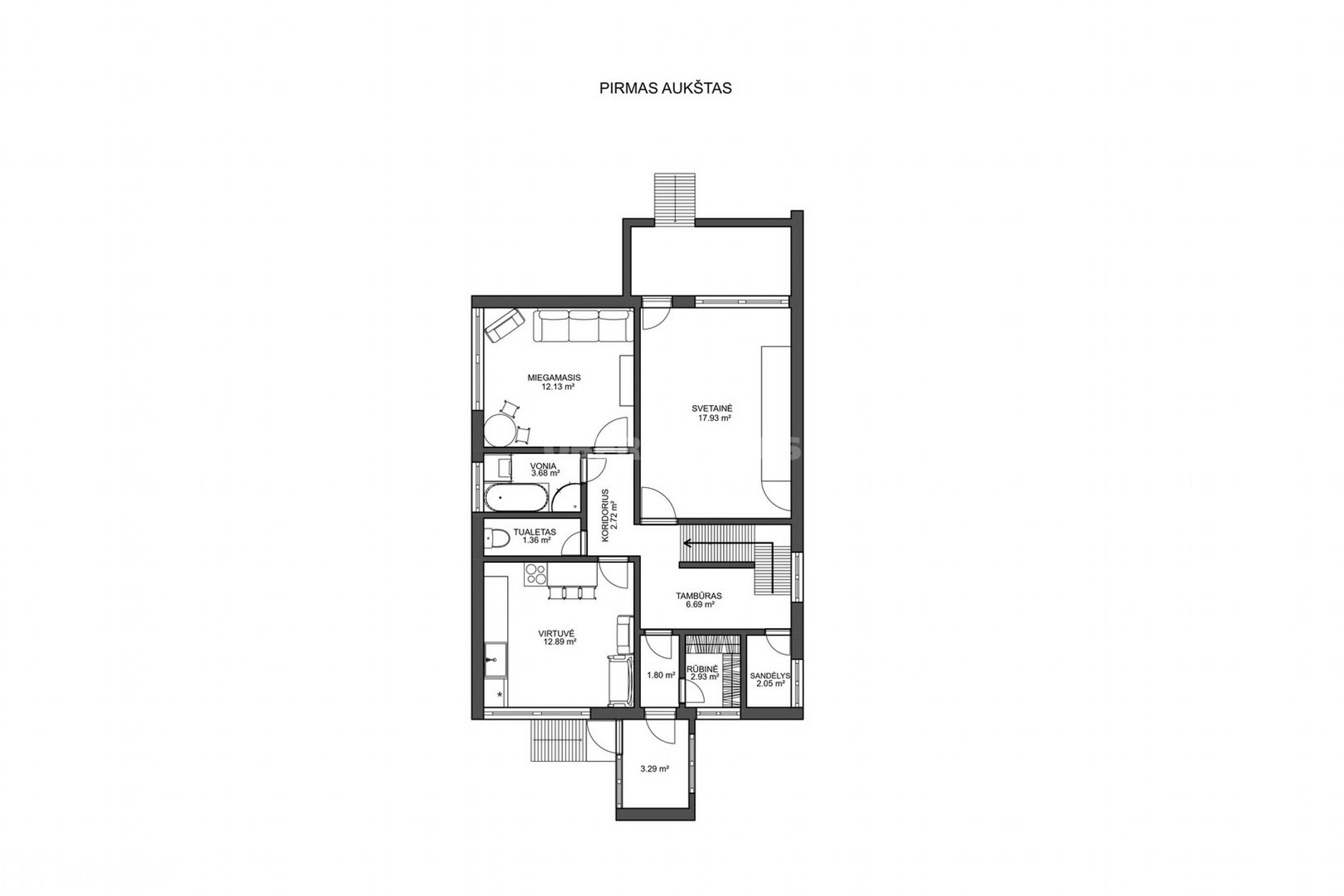• pirmame aukšte du kambariai, virtuvė, vonios, tualetas, pagalbinės patalpos.