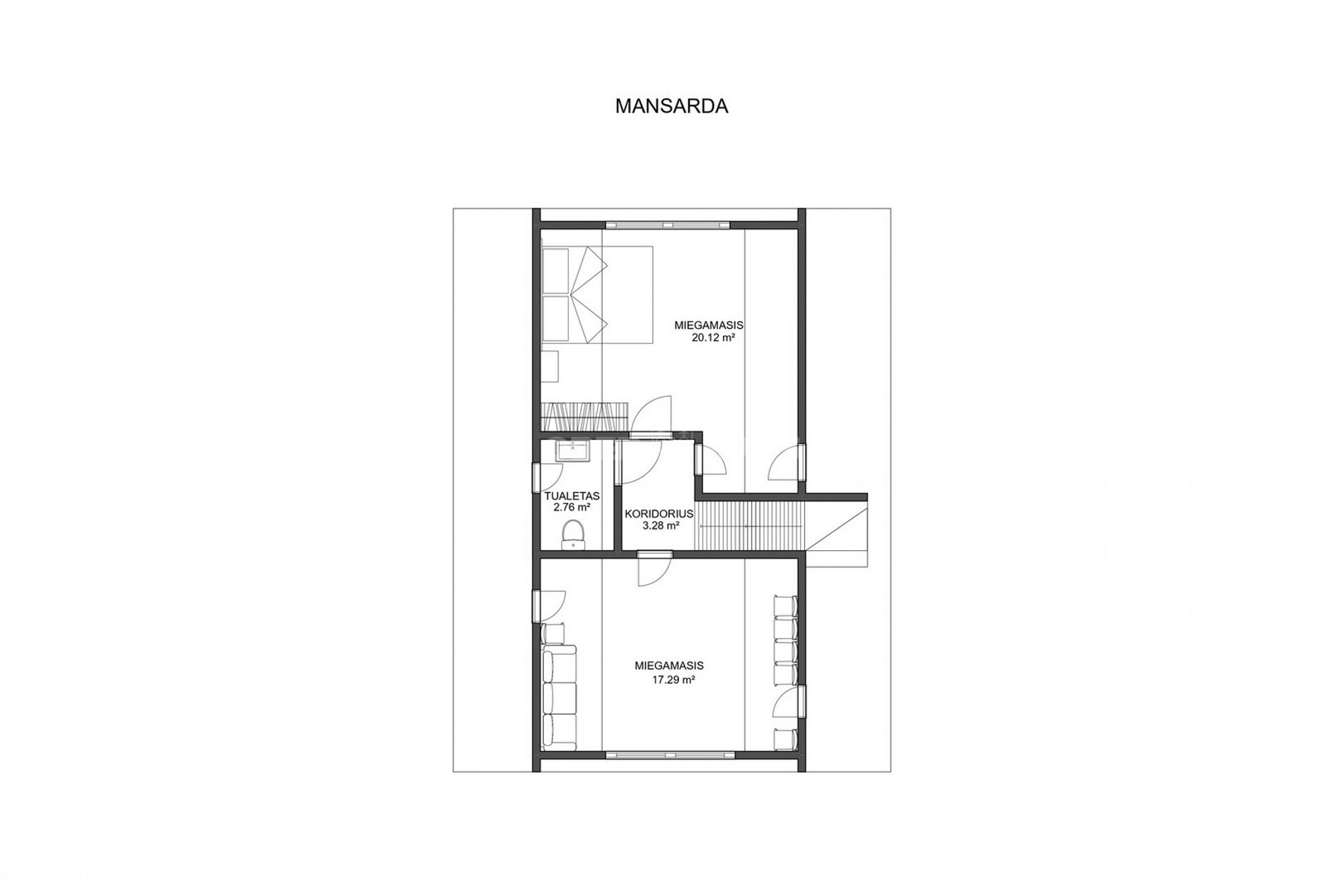 • mansardoje du kambariai ir pagalbinės patalpos.
