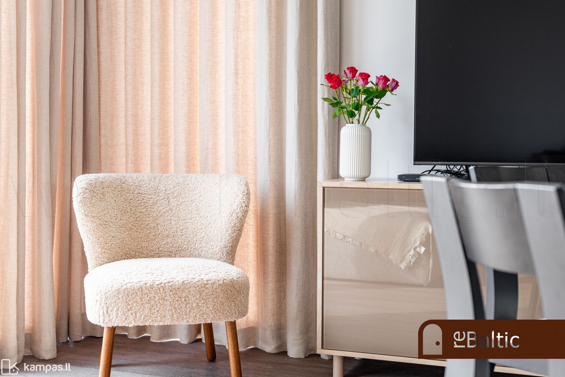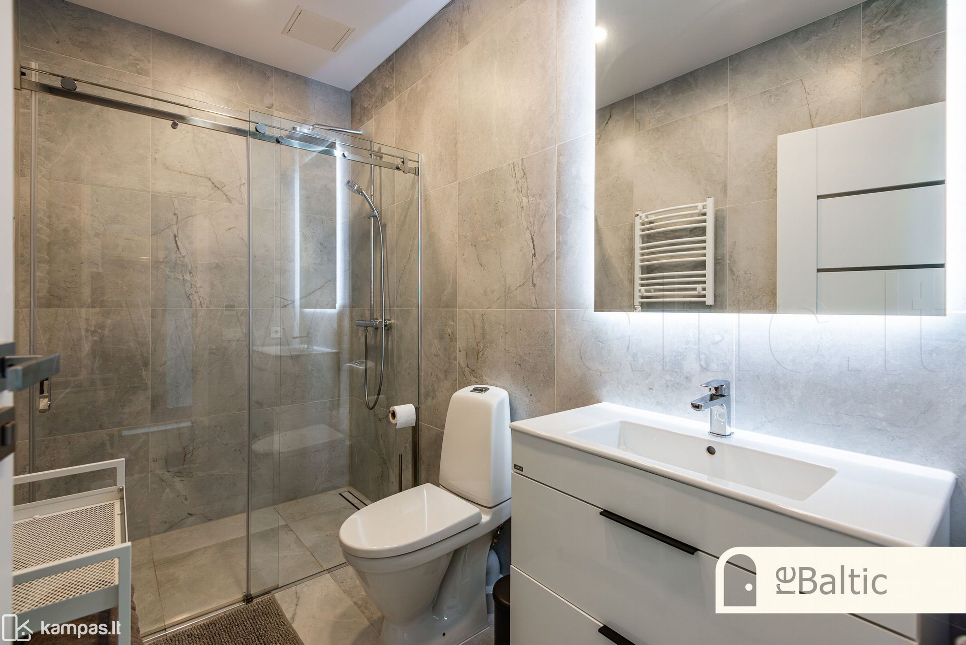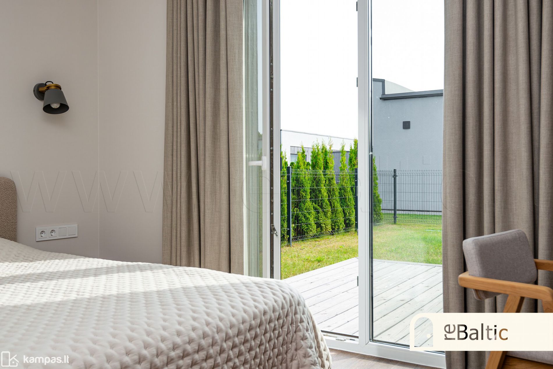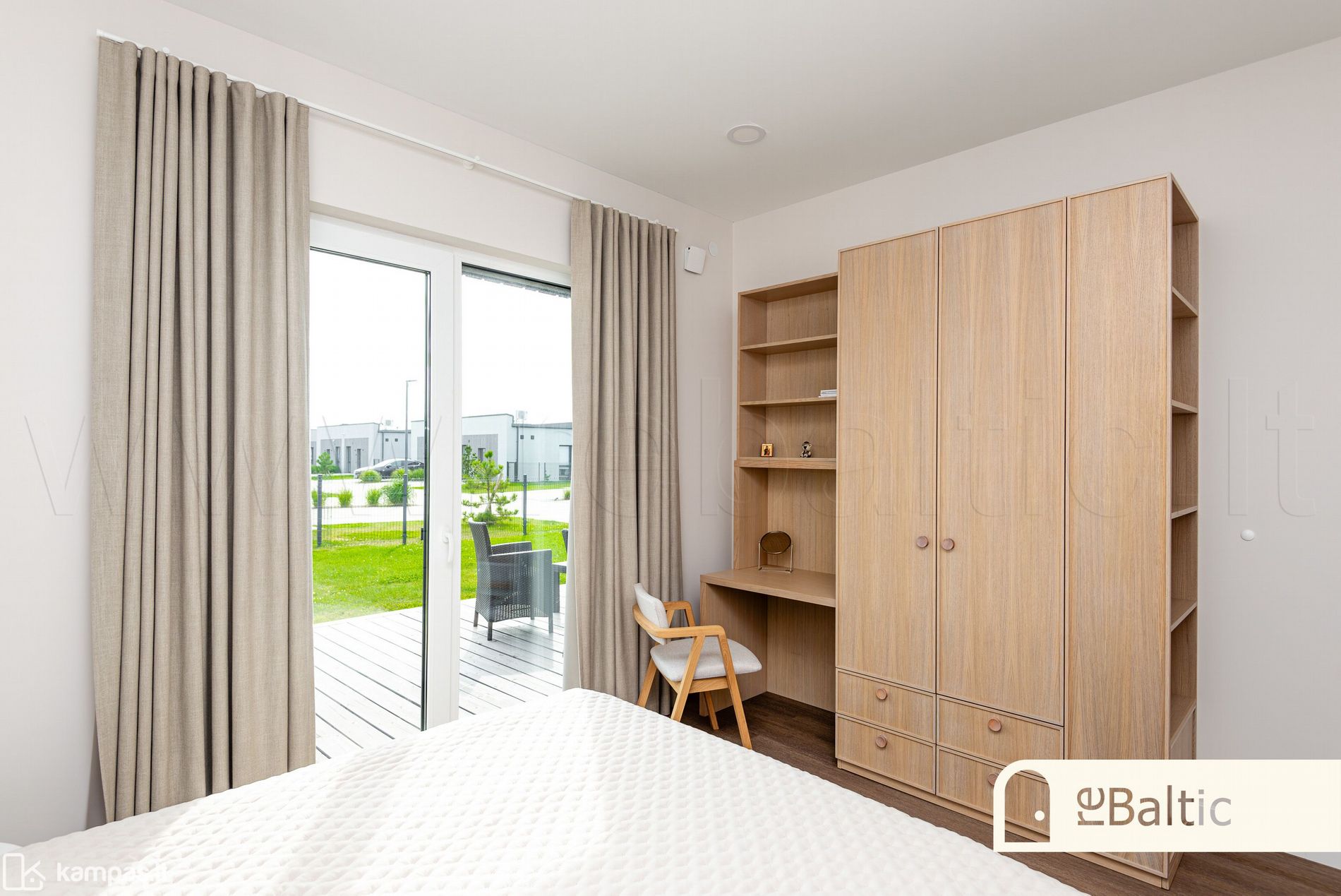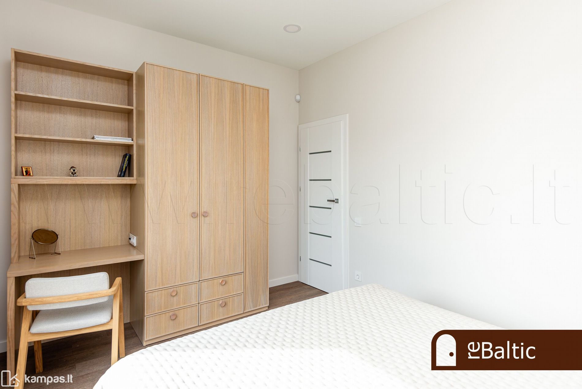 - Aukštos klasės įrengimo medžiagos ir baldai, įmontuojami baldai gaminti pagal individualų užsakymą. Stilinga virtuvė, išskirtinės sieninės spintos iki lubų koridoriuje ir viename iš miegamųjų.