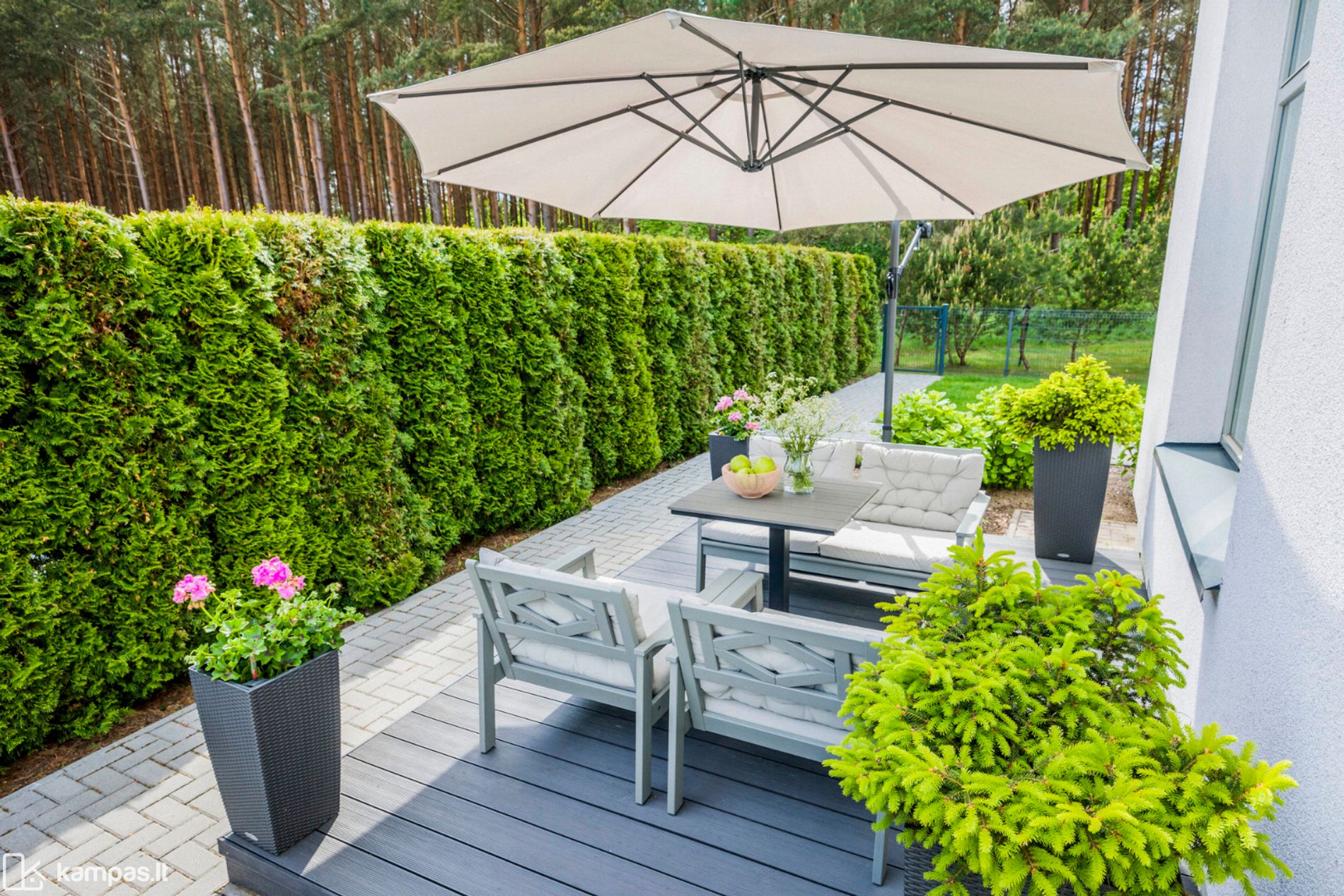 • Gyvenamosios dalies terasa ir žalioji erdvė – į vakarus, priešais jau valstybinis miškas;