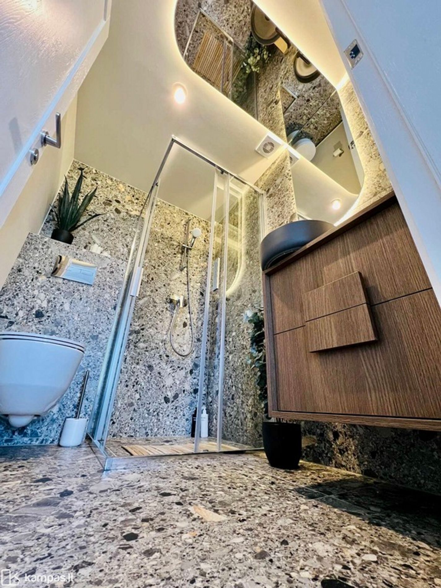 Visos erdvės kurtos bendradarbiaujant su interjero dizaineriu – harmonija tarp estetikos ir funkcionalumo. Naudotos tik kokybiškos, natūralių medžiagų apdailos detalės, ilgaamžiai baldai, kruopščiai parinktas apšvietimas, kuris vakare sukuria šiltą, raminančią atmosferą.