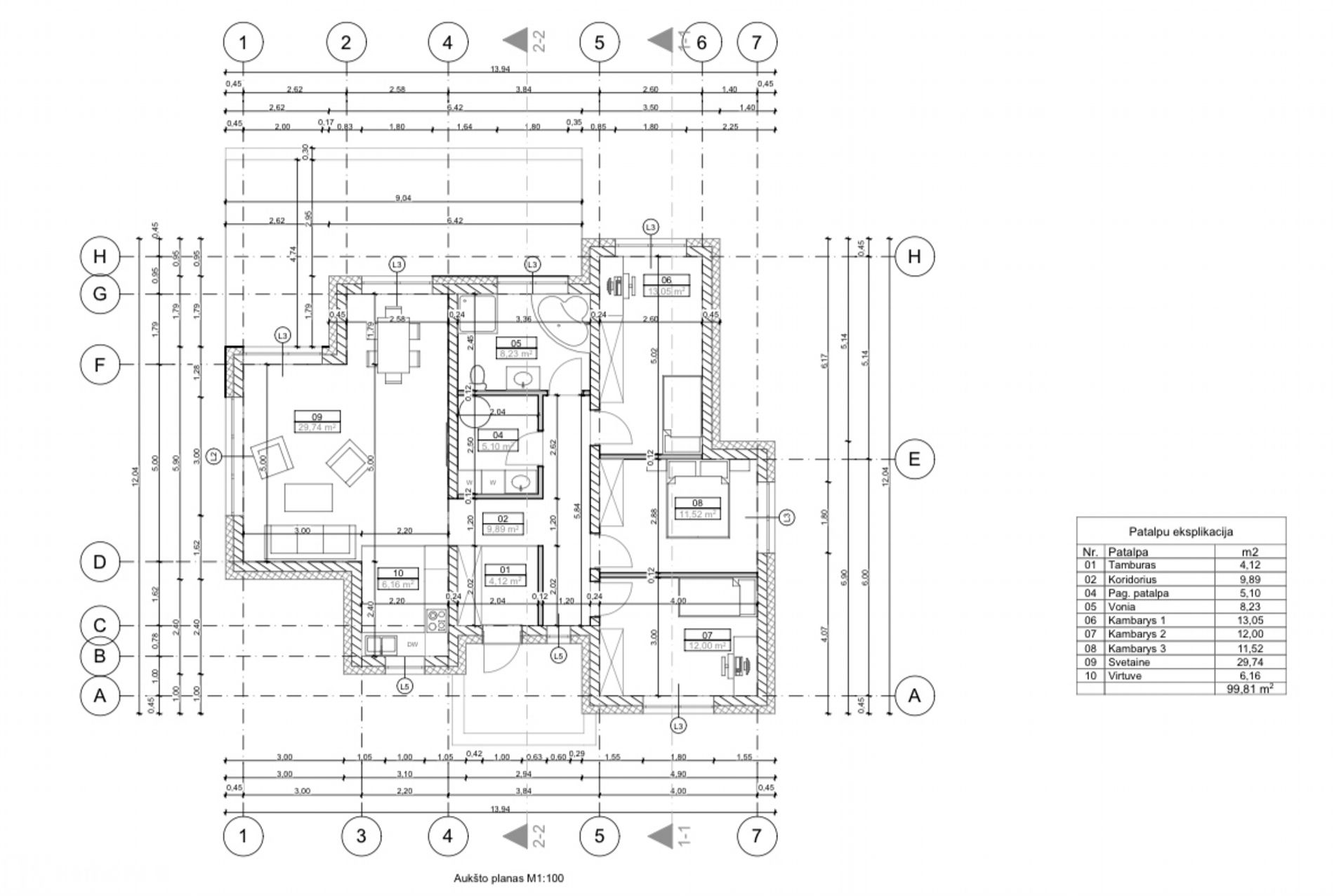 • 3 miegamieji – puikiai tinka šeimai, su galimybe įsirengti darbo kambarį ar vaikų kambarius