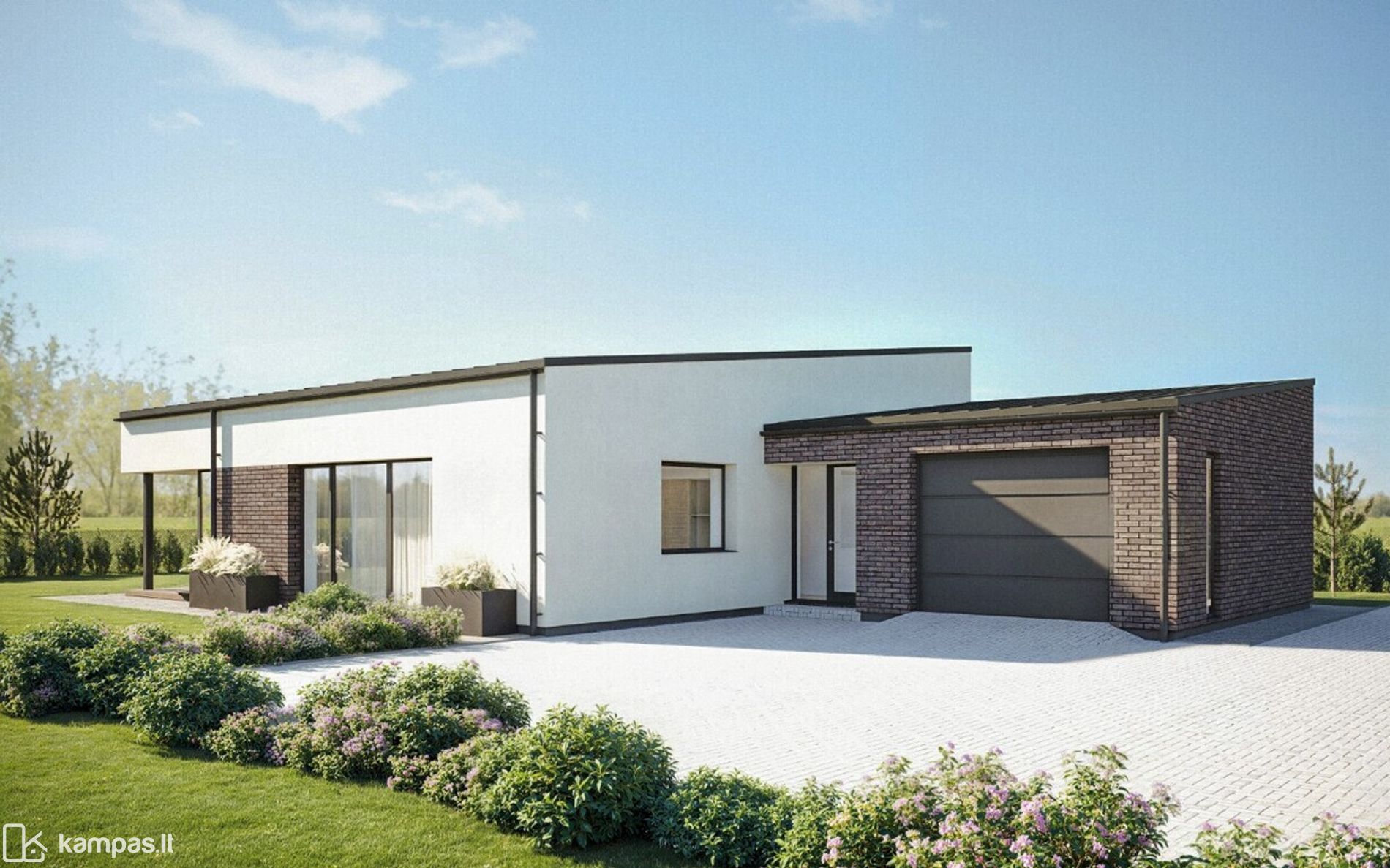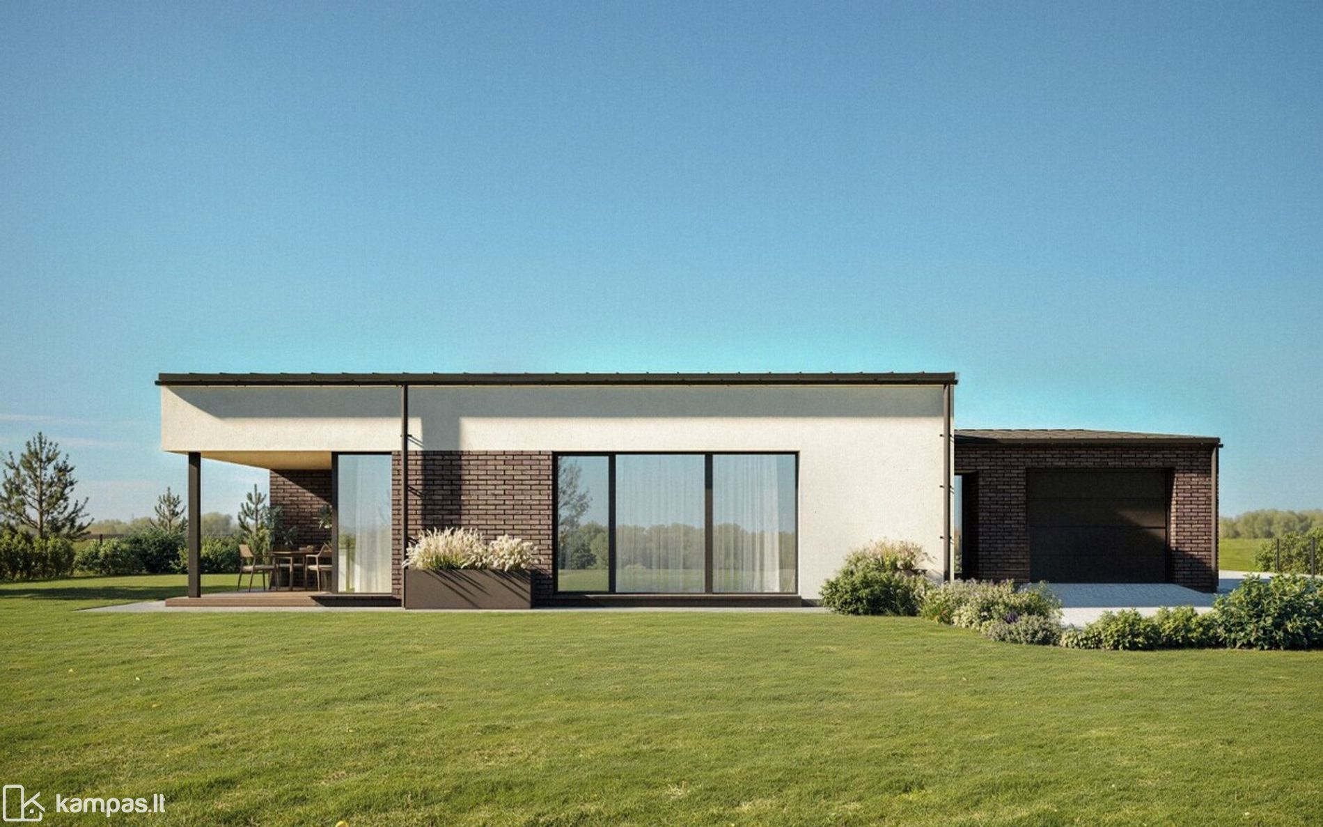- PATOGUS KAMBARIŲ IŠDĖSTYMAS: ERDVI SVETAINĖ SU VIRTUVE - VALGOMUOJU, TRYS MIEGAMIEJI, VIENAS IŠ JŲ SU DRABUŽINĖS PATALPA, PATOGIOS PAGALBINĖS PATALPOS, GARAŽAS IR TERASA;