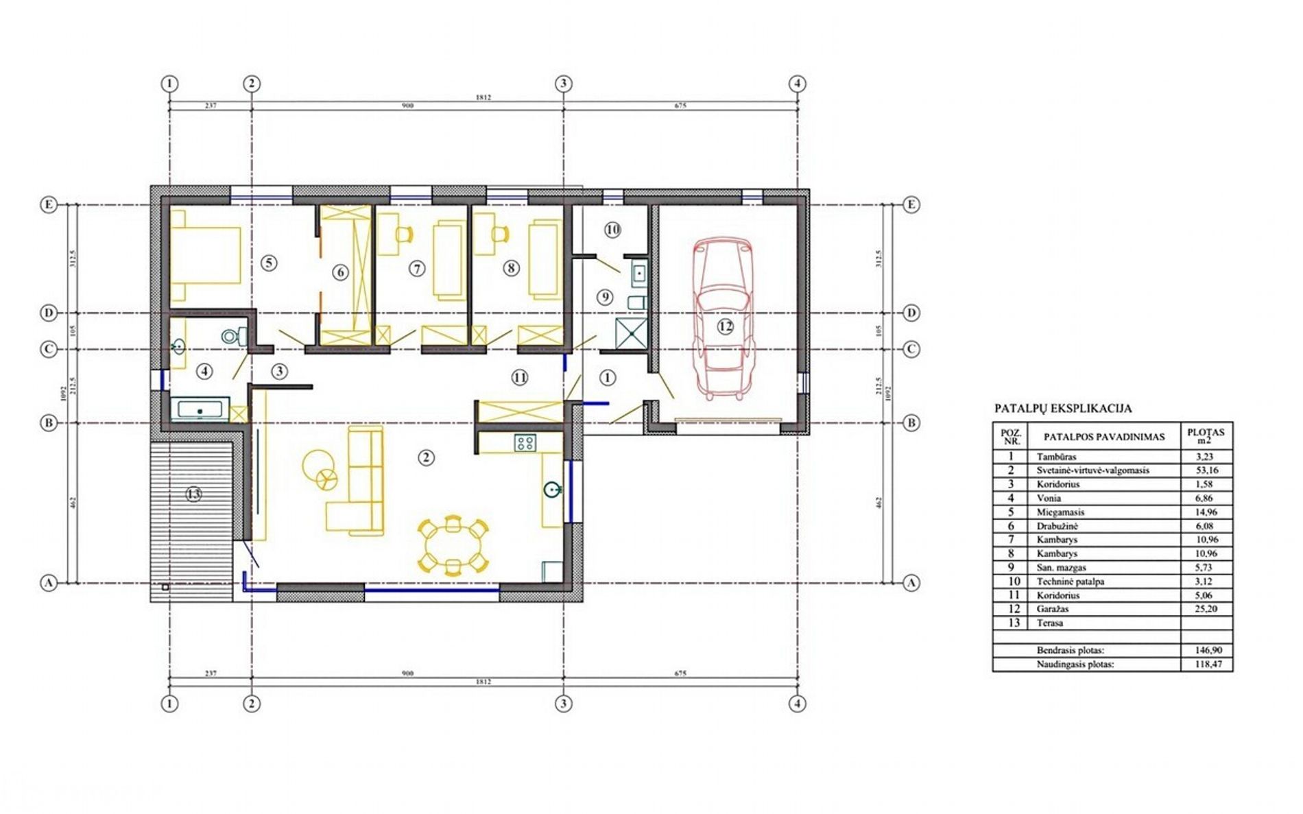 - Bendrasis plotas – 146,90 kv. m.;
