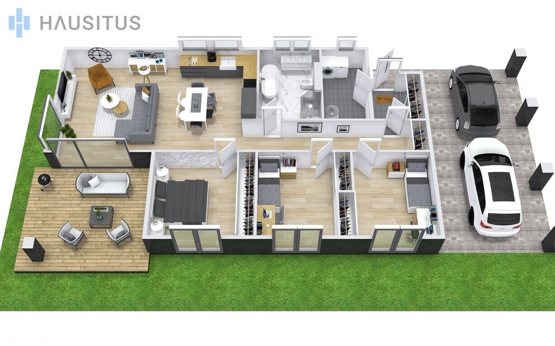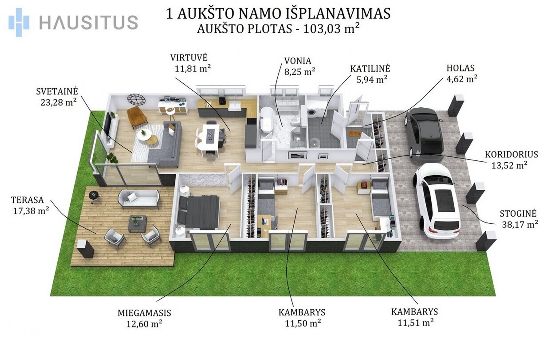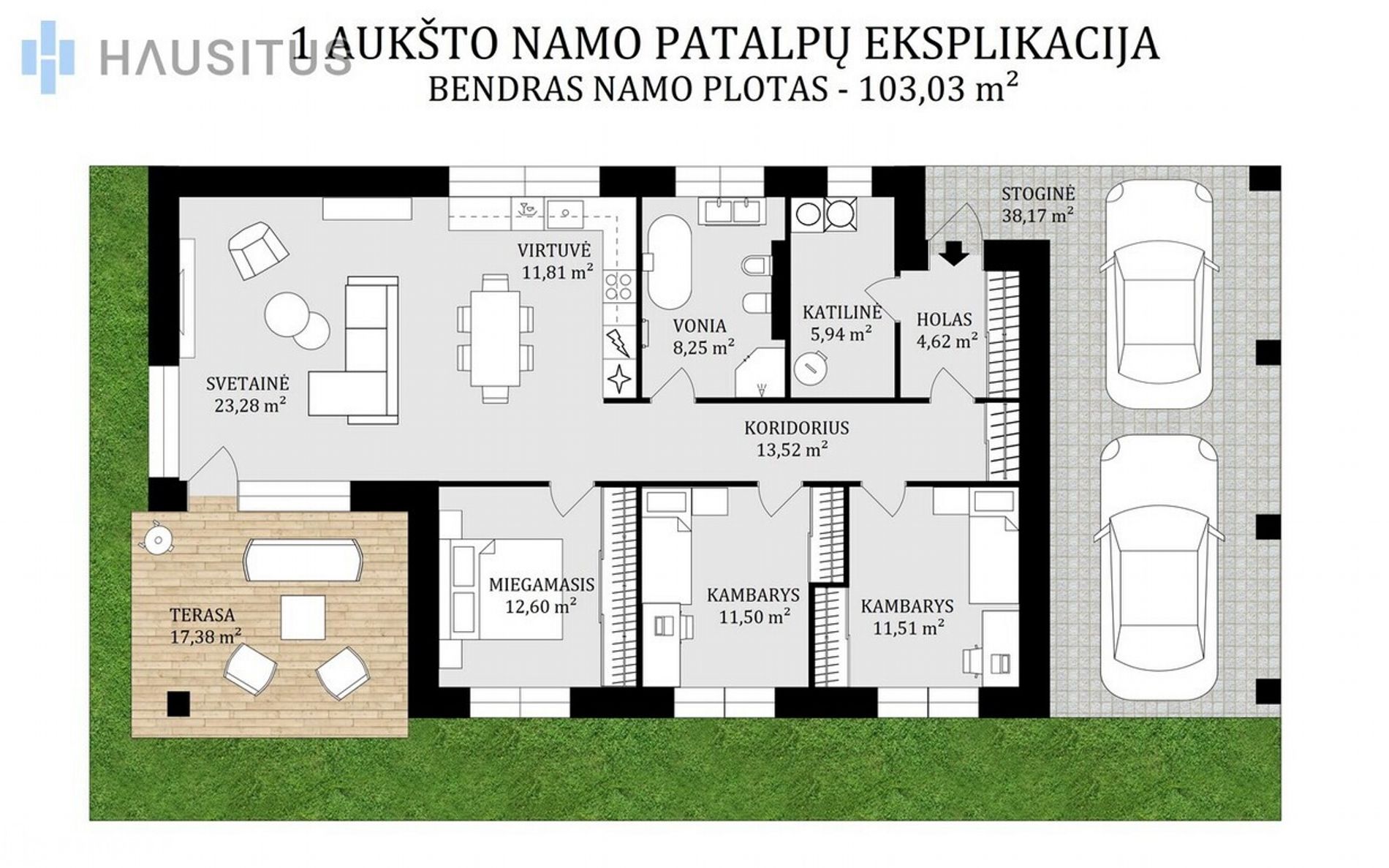 Grindys – šiltintos putų polistirolu 30 cm, išvedžiotas grindinis šildymas;