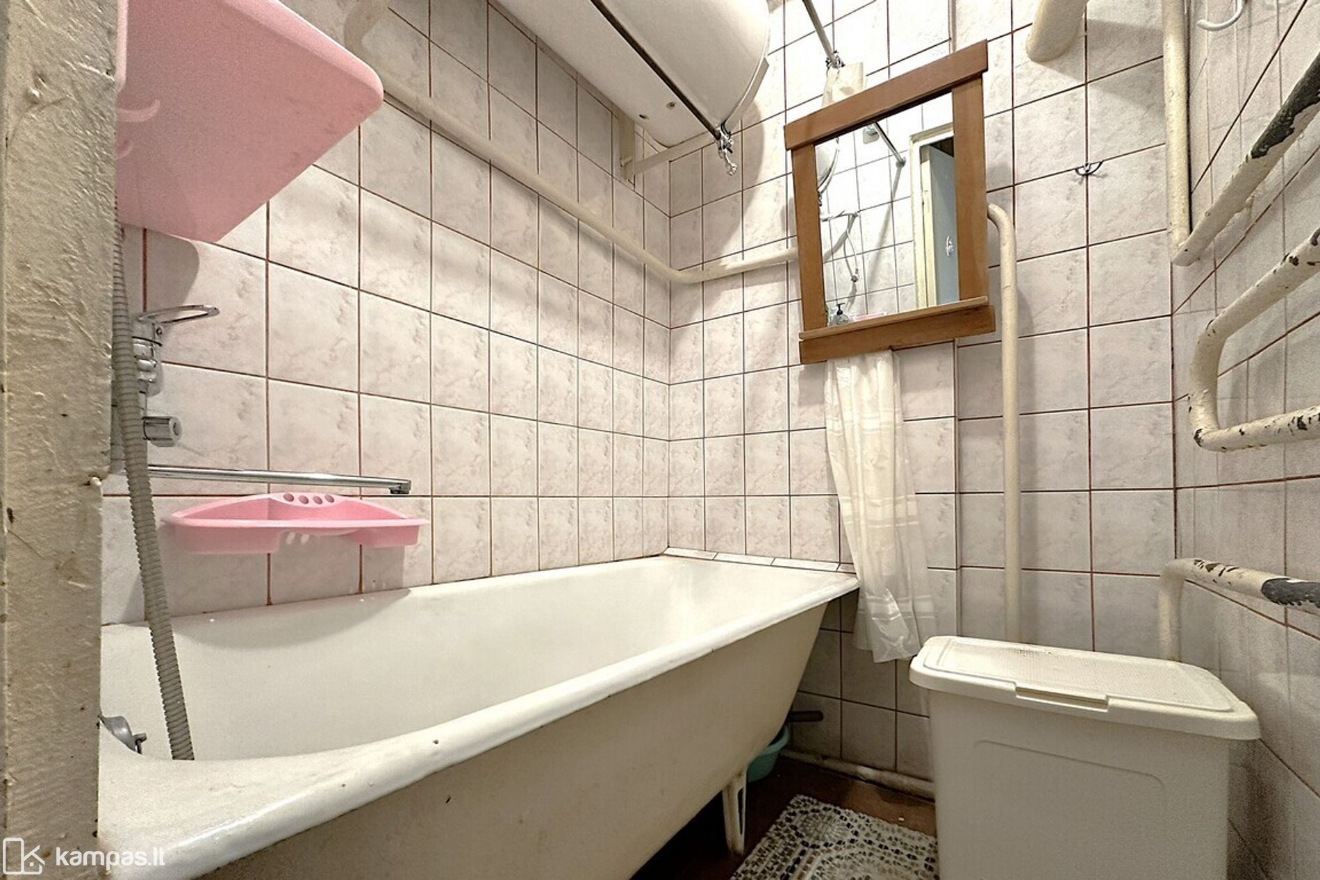 - Grindys: kambariuose - mediena, virtuvėje - linoleumas, vonioje ir tualete - plytelės;