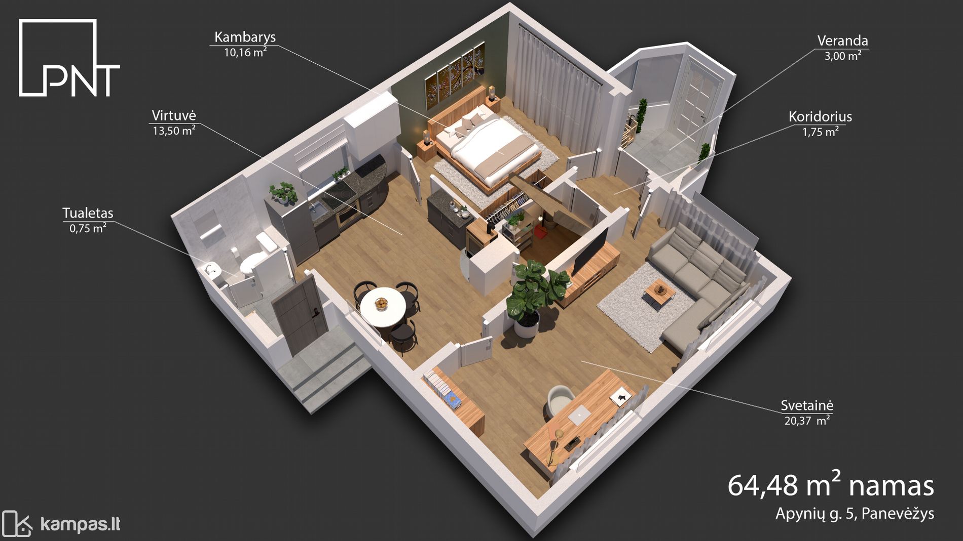 · Bendras namo plotas – 64,48 kv. m;