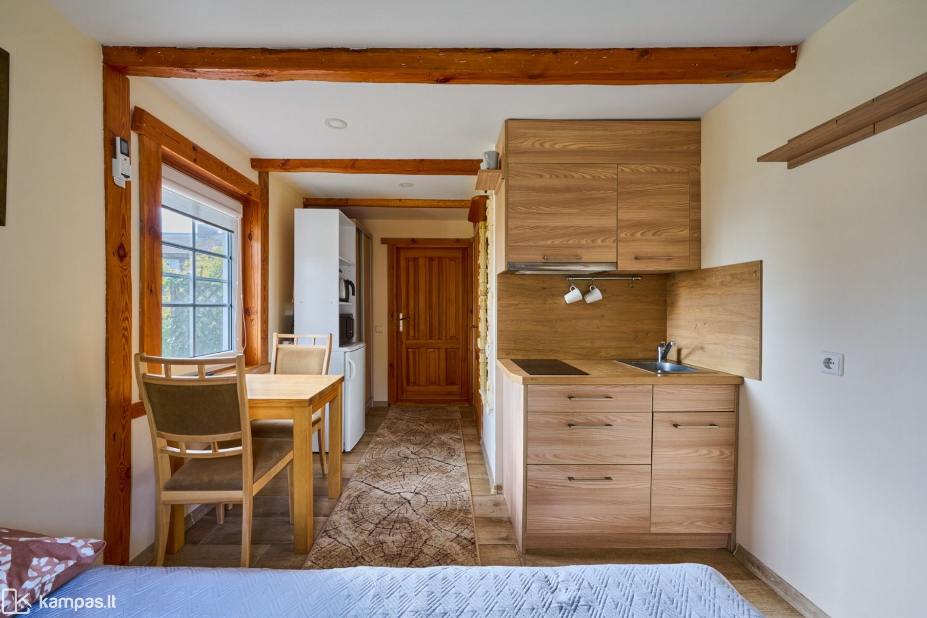 Parduodami treji pilnai gyvenimui pritaikyti apartamentai: dveji pagrindiniame gyvenamajame pastate (bendras plotas: 42,83 kv./m.) ir vieni apartamentai per du aukštus ūkiniame pastate (19 kv./m.). Visi būstai šviesūs ir jaukūs. Pro langus atsiveria nuostabūs vaizdai į Kuršių marias – pagrindinio pastato langai orientuoti į šiaurę, vakarus ir rytus, ūkinio pastato – į rytus. Šiuolaikiškai įrengti apartamentai parduodami su buitine technika ir baldais, tad iškart galima įsikelti gyventi ar pradėti nuomą.